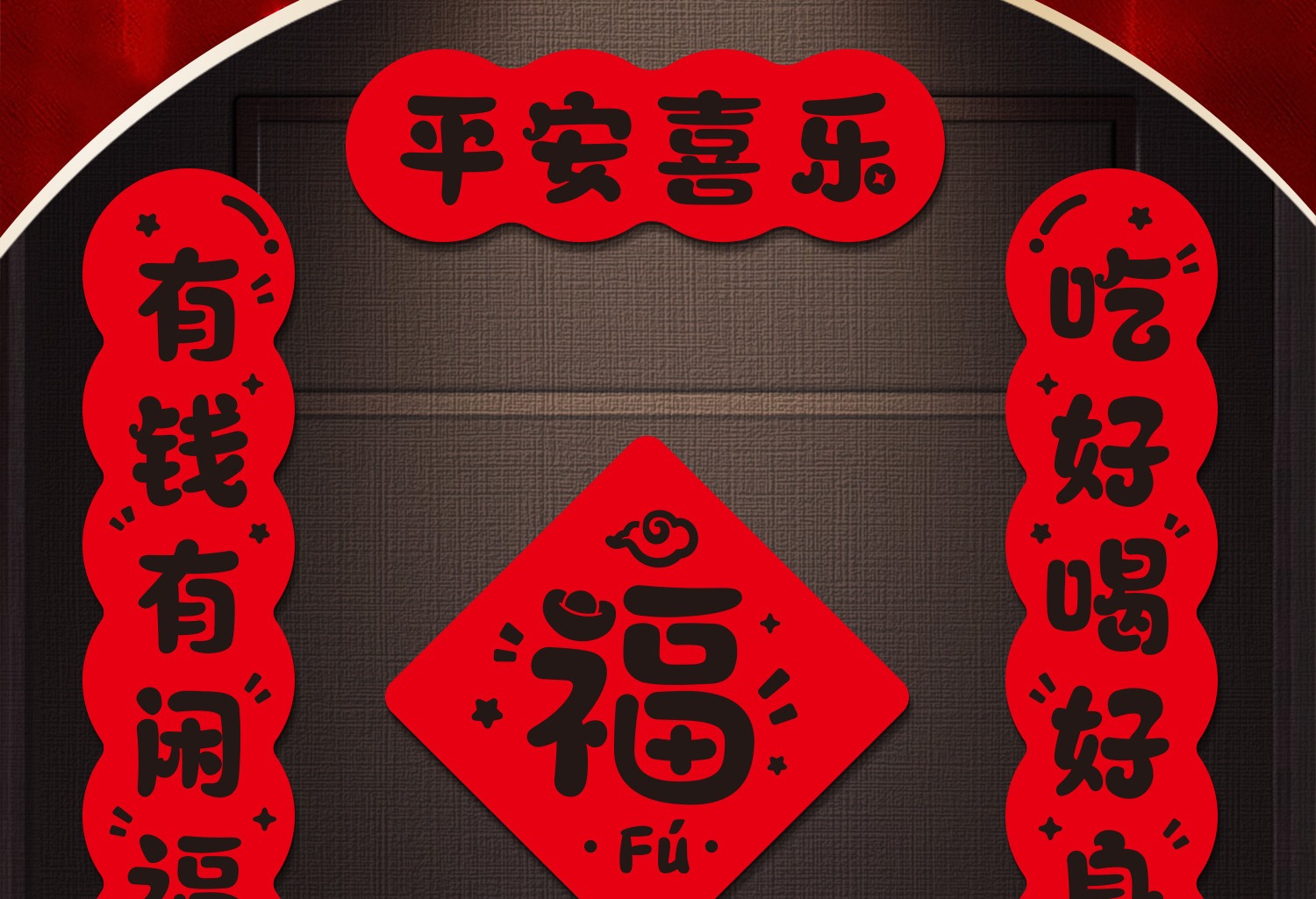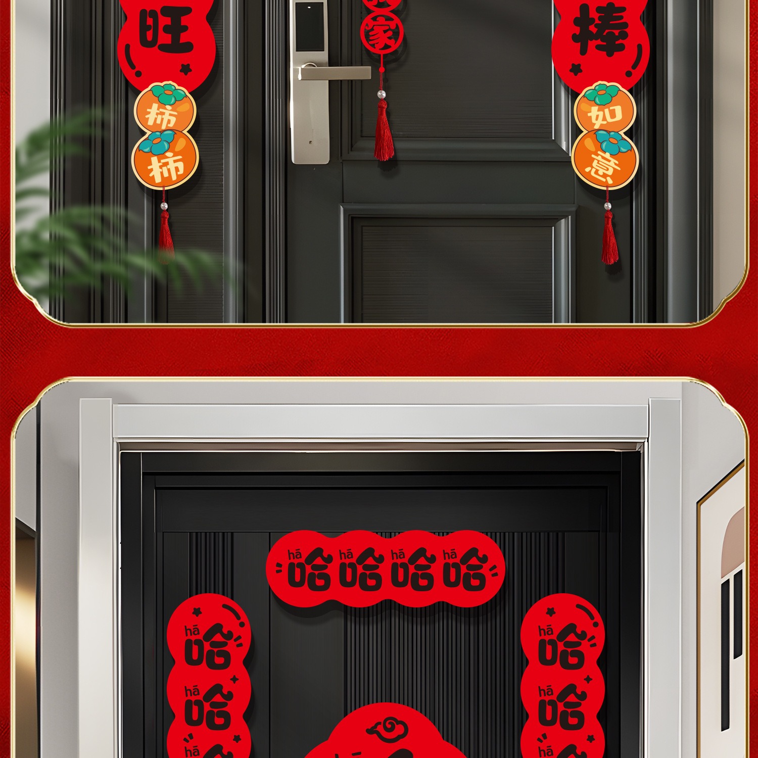【马年毛毡创意对联福字】2026春节过年福字春联 胶贴磁吸两用 哈哈哈哈搞笑创意门联