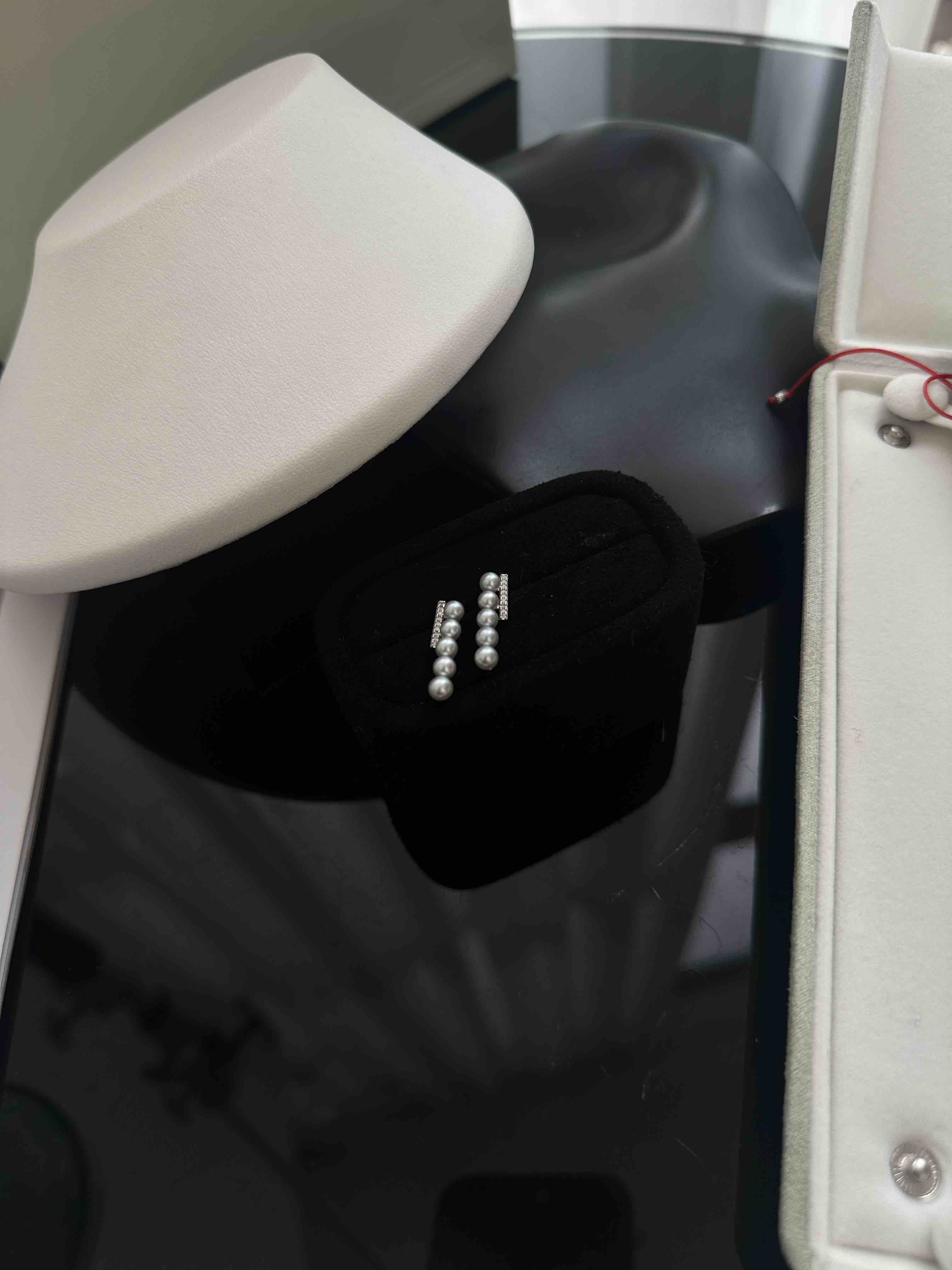 • 4-5mm的Akoya真多麻色海水珠,银灰调自带高级滤镜,像把月光揉碎在耳间