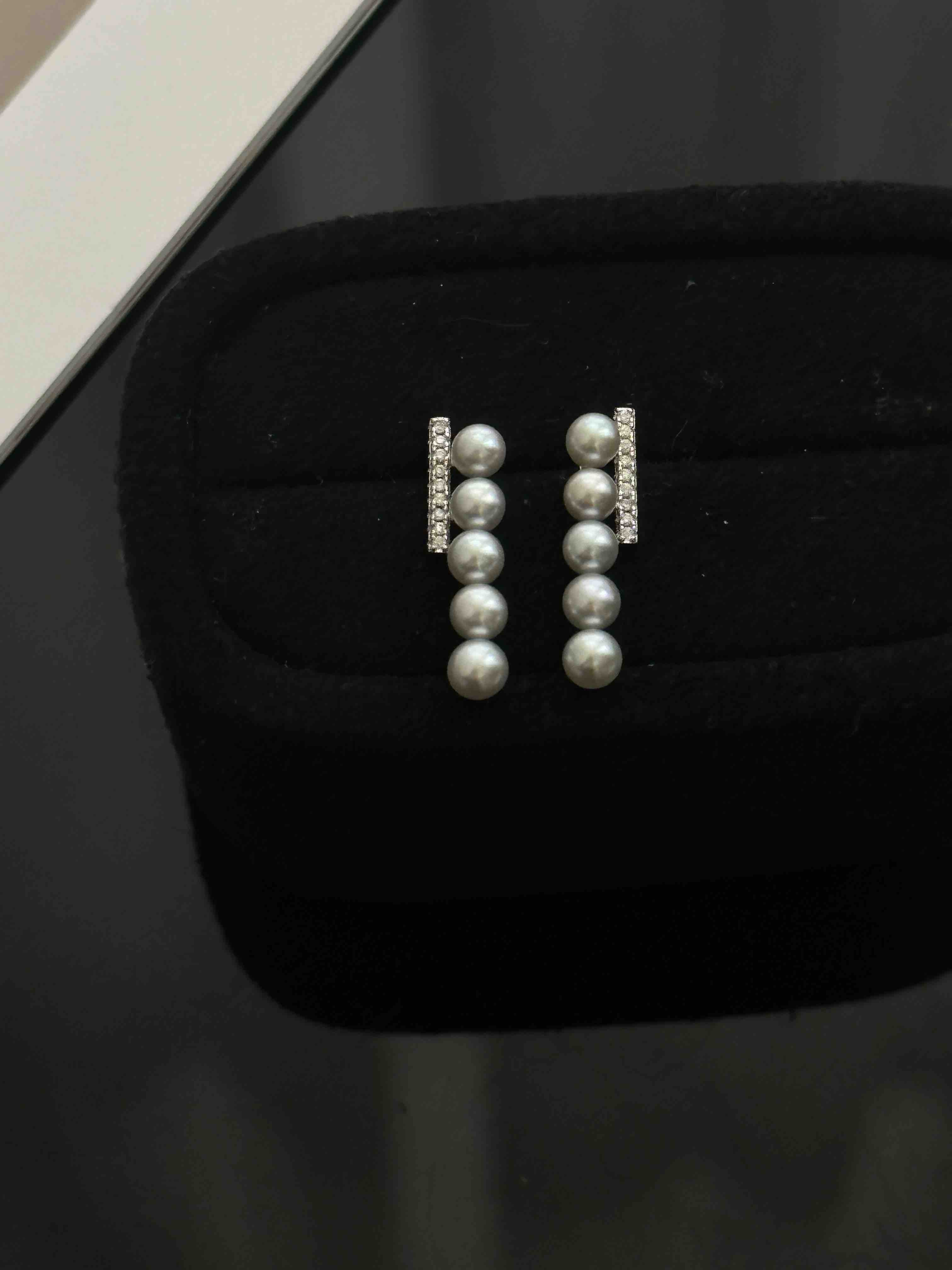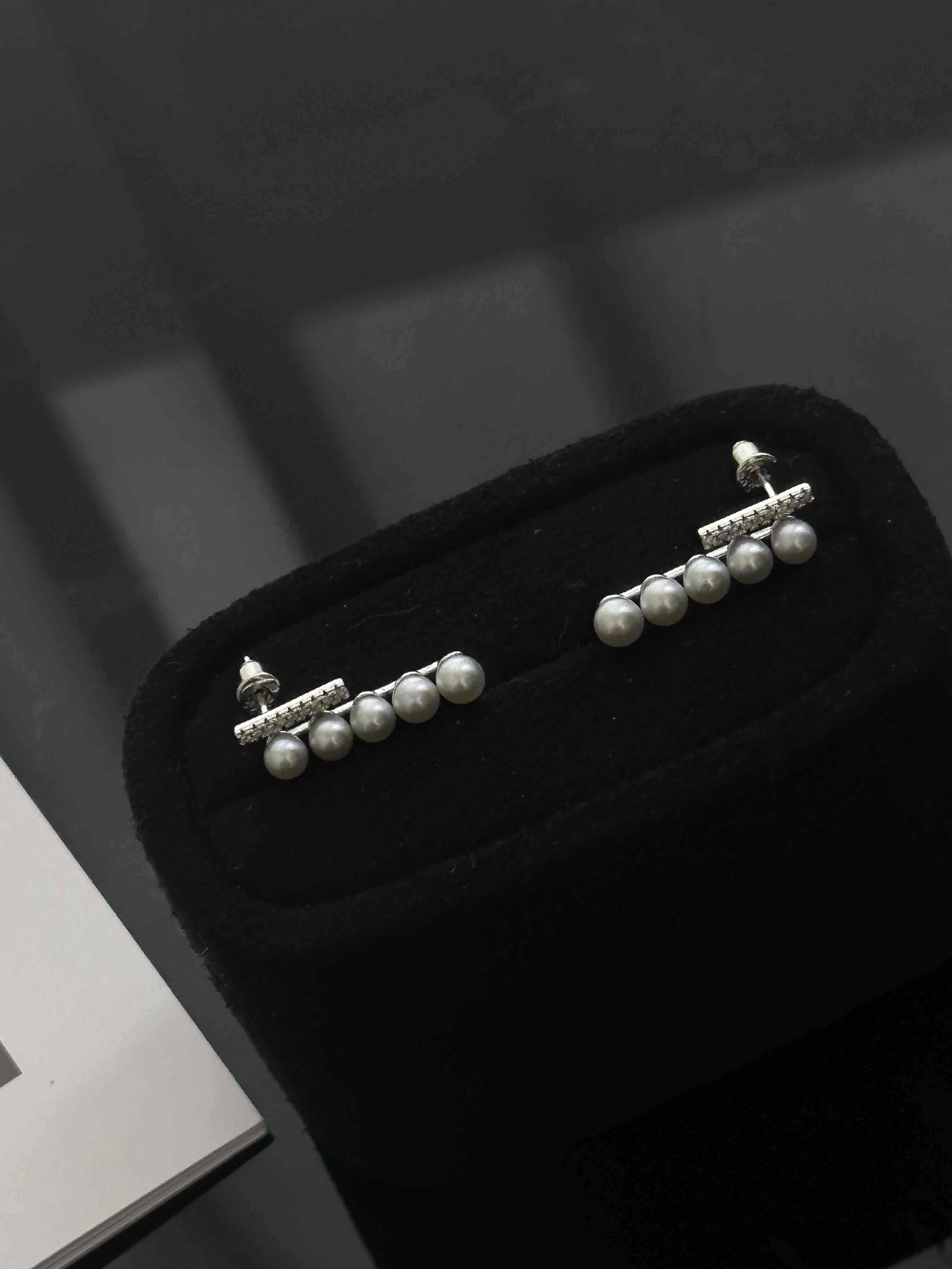 • 平衡木设计利落又温柔,五颗正圆无暇的小珍珠,每一颗都亮得像小灯泡