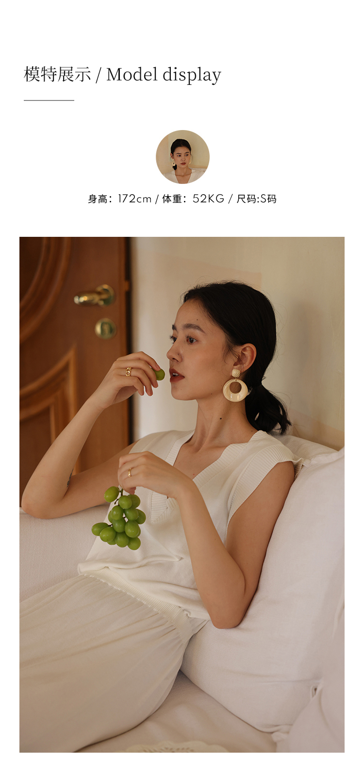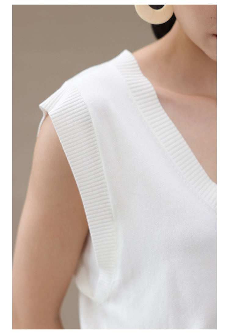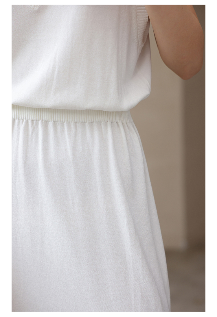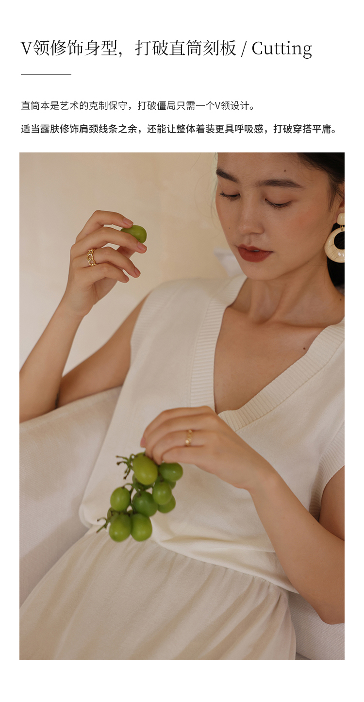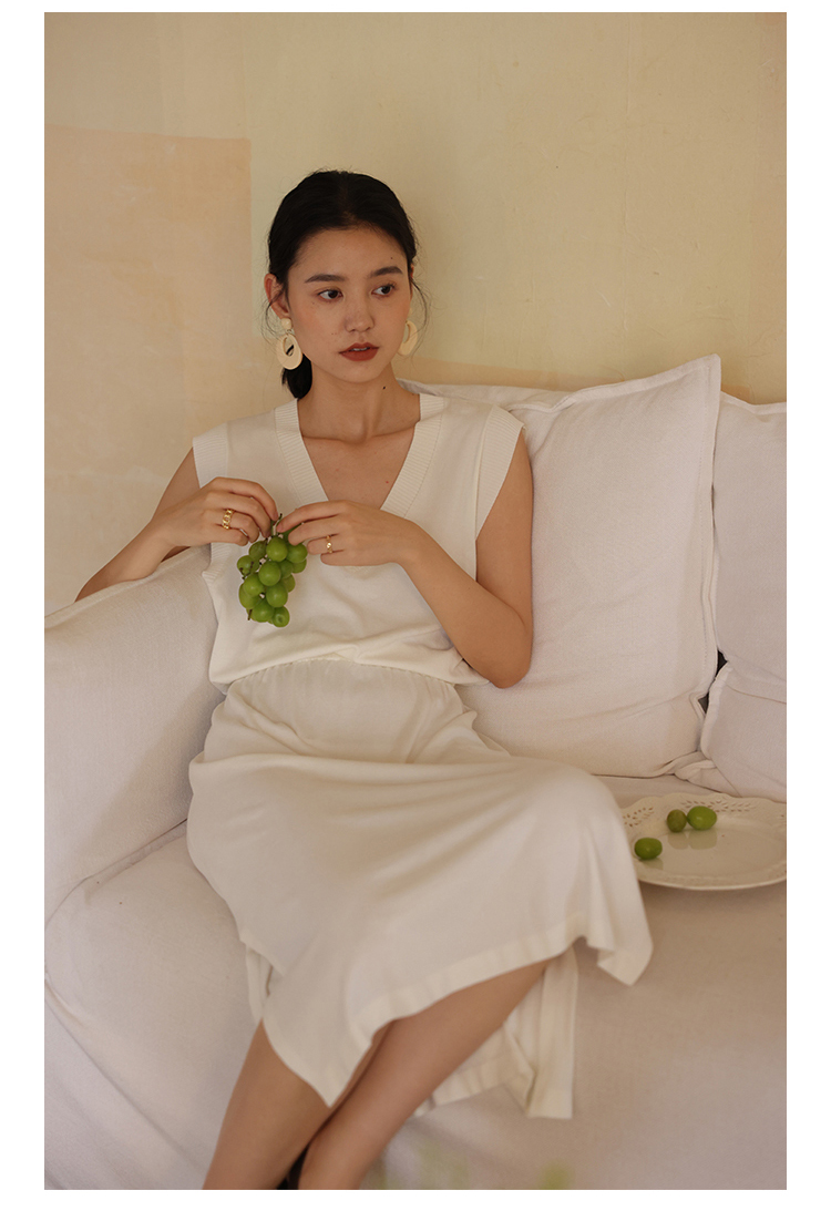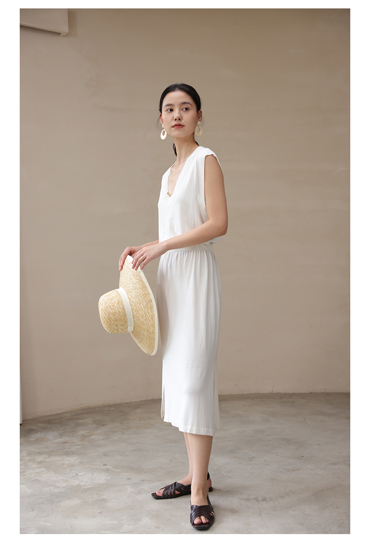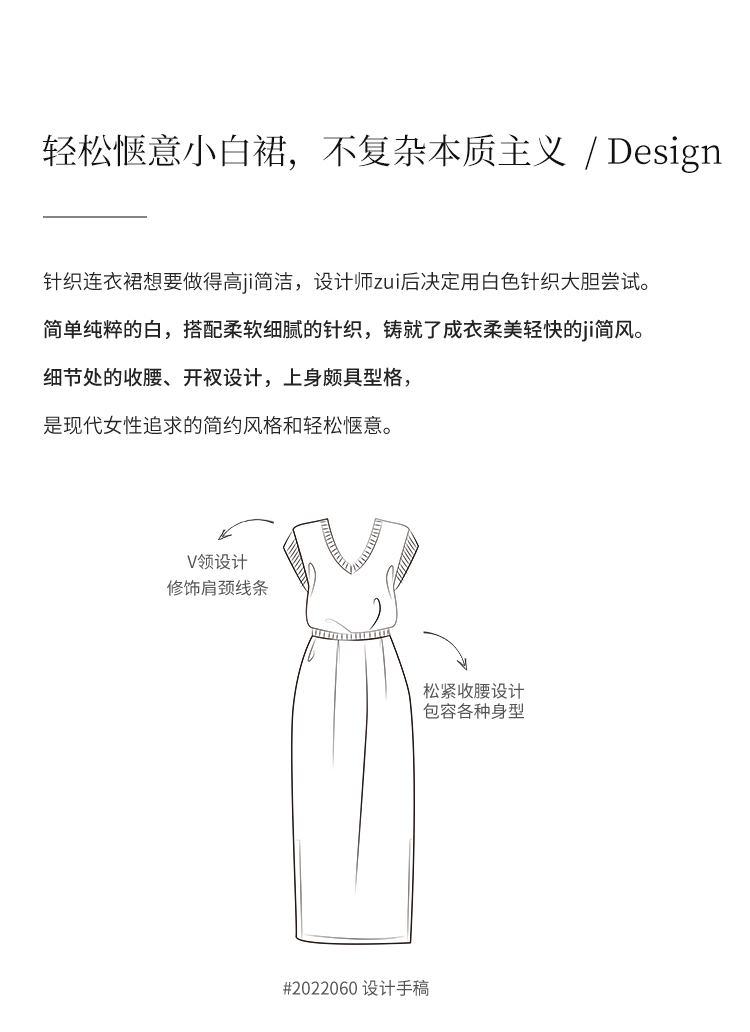 HeyDress法式针织连衣裙女夏季白色V领收腰显瘦设计气质无袖裙子