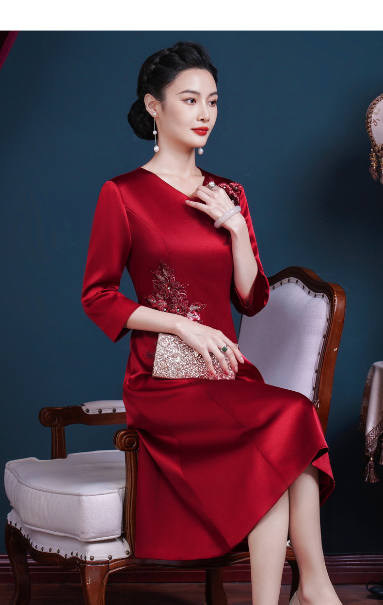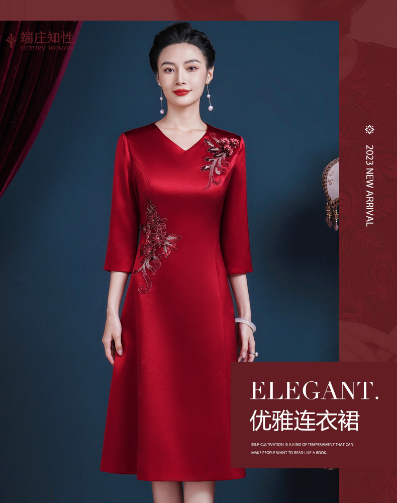 JC-5373婚宴礼服女喜婆婆婚宴装高贵年轻丈母娘敬酒服结婚连衣裙