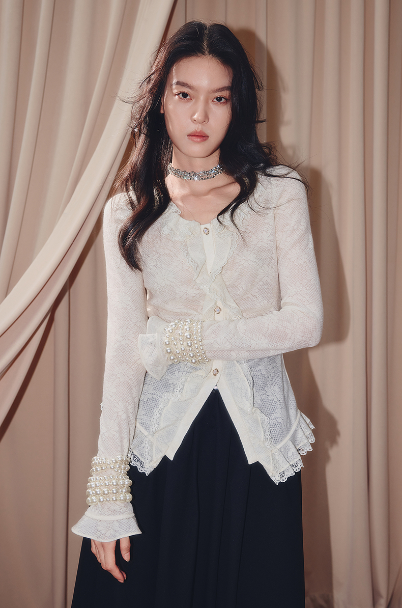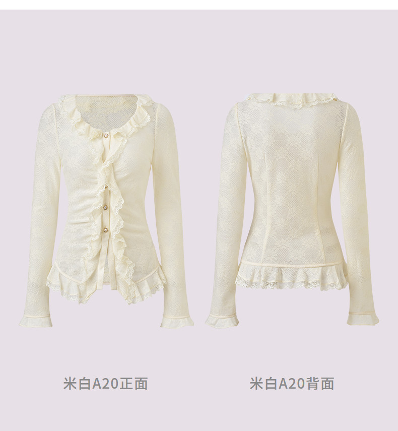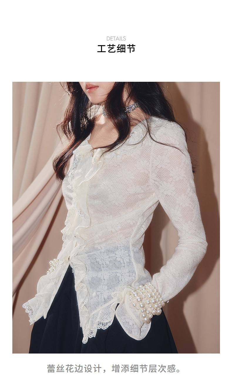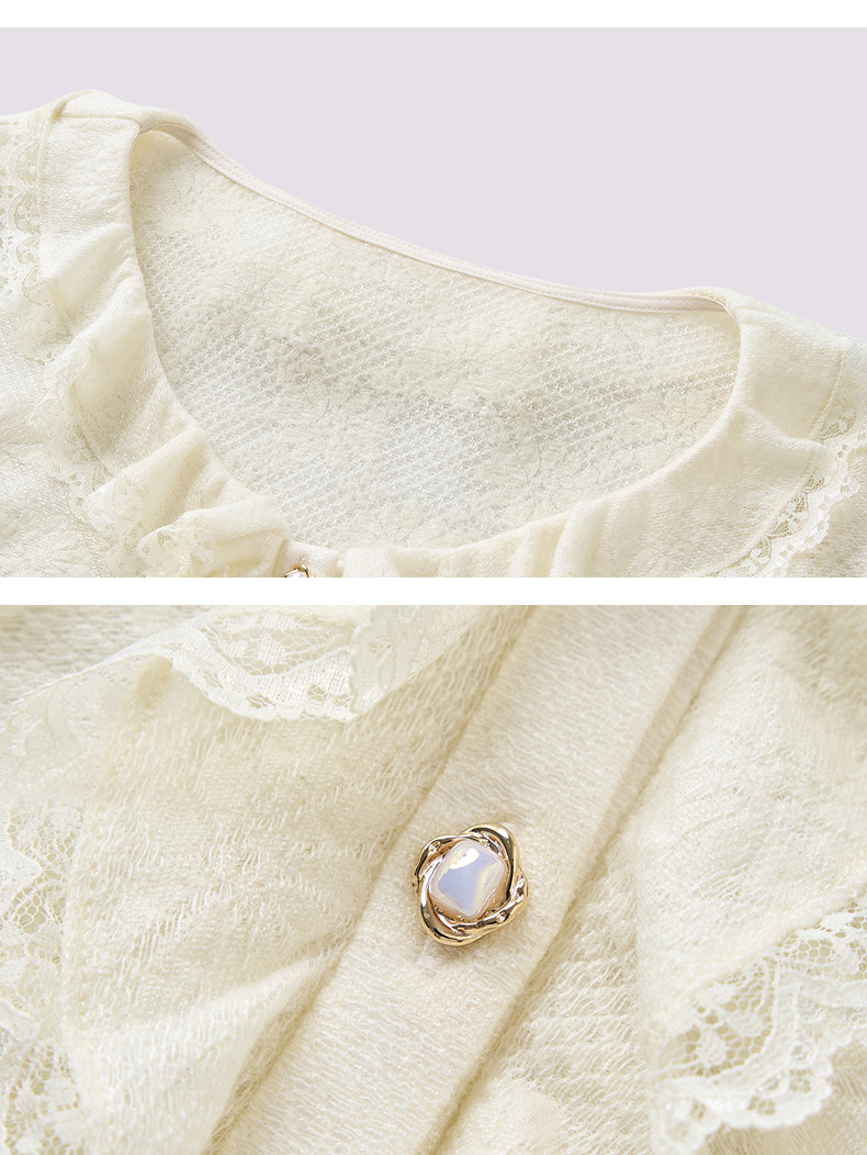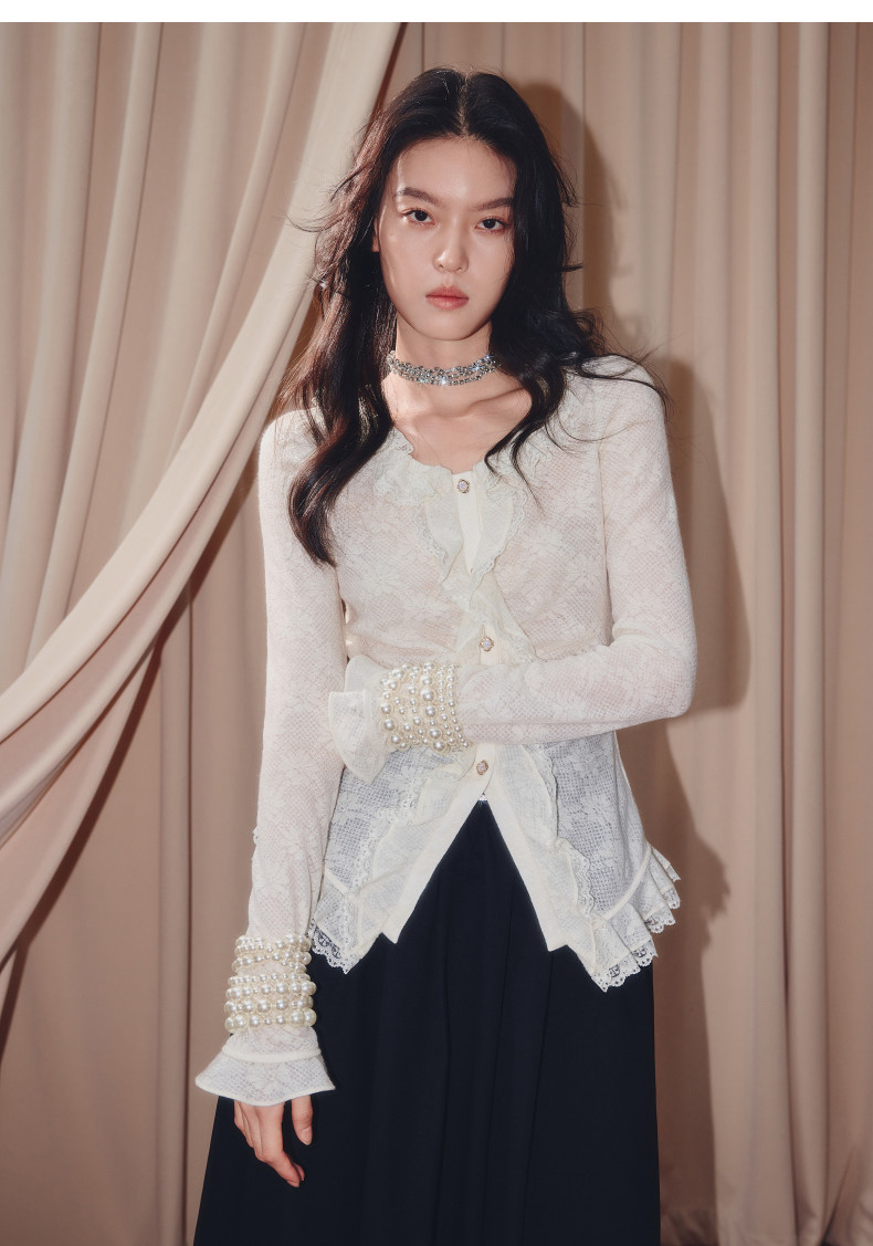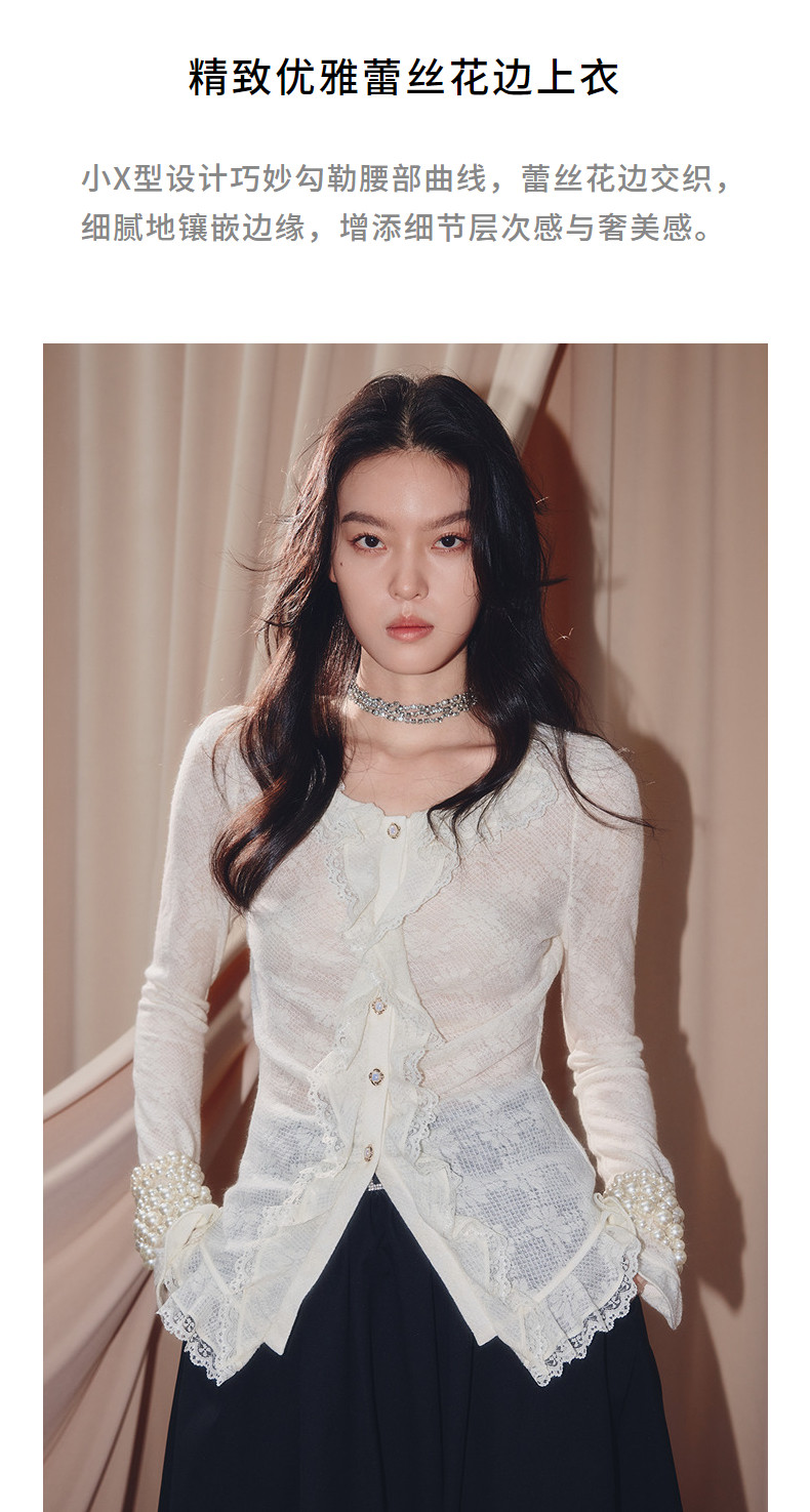 MAXRIENY法式复古羊毛针织衬衫25秋款蕾丝花边x型收腰上衣女(货号:MF86TP502)