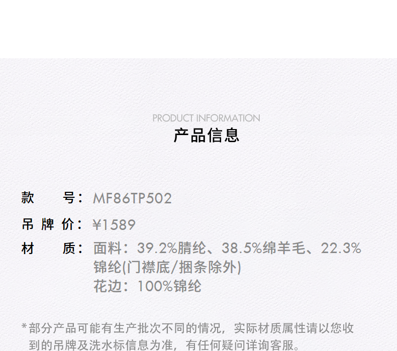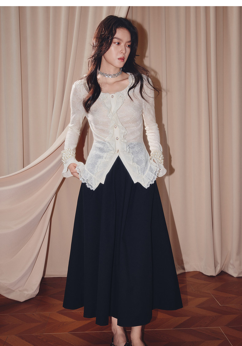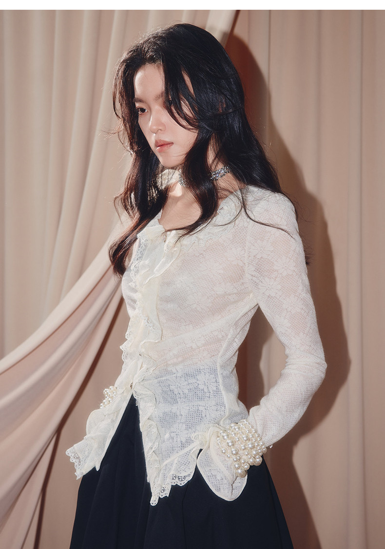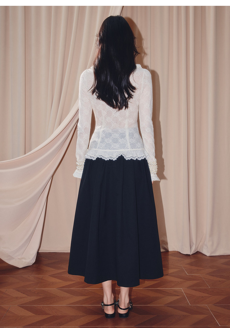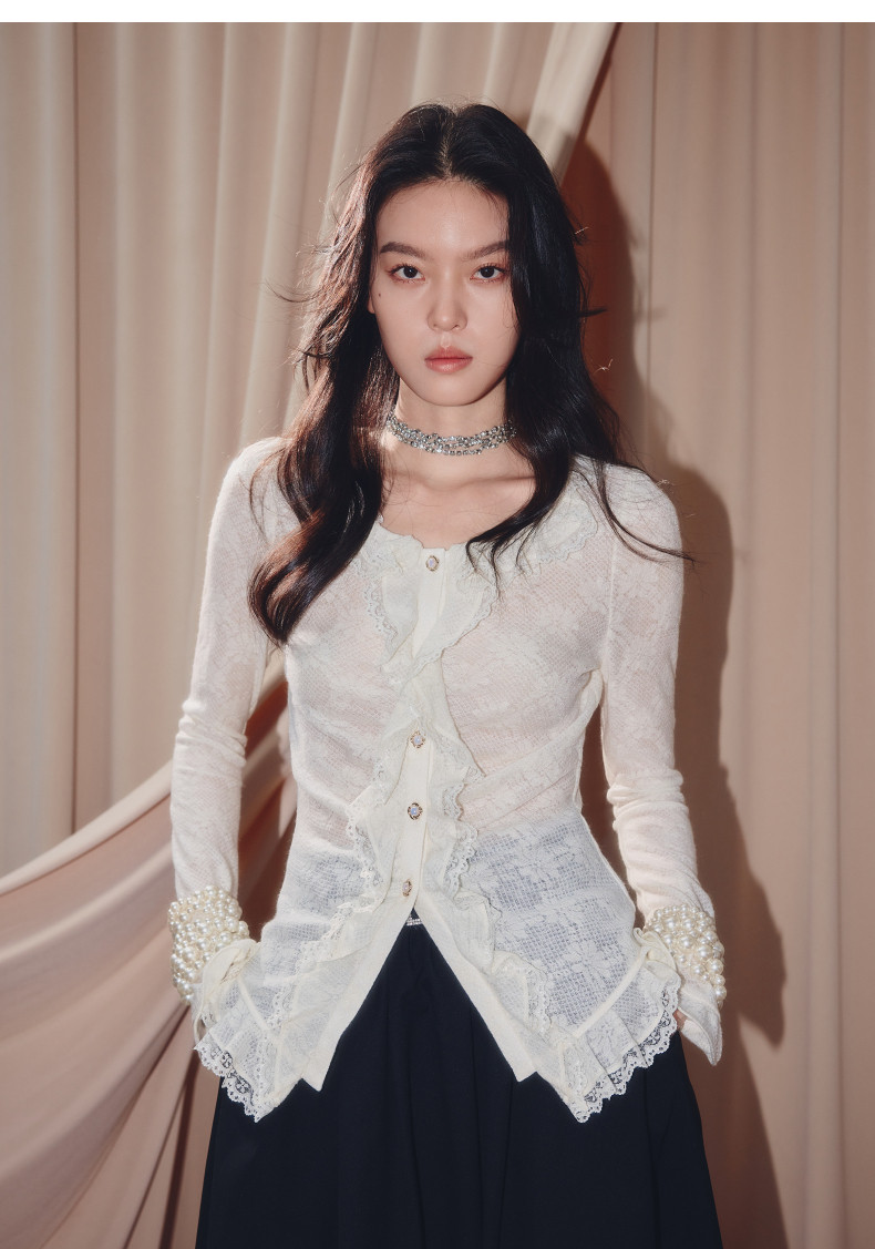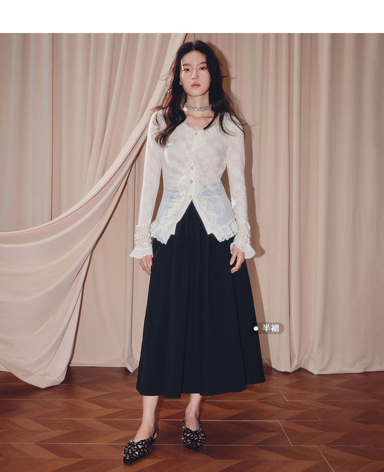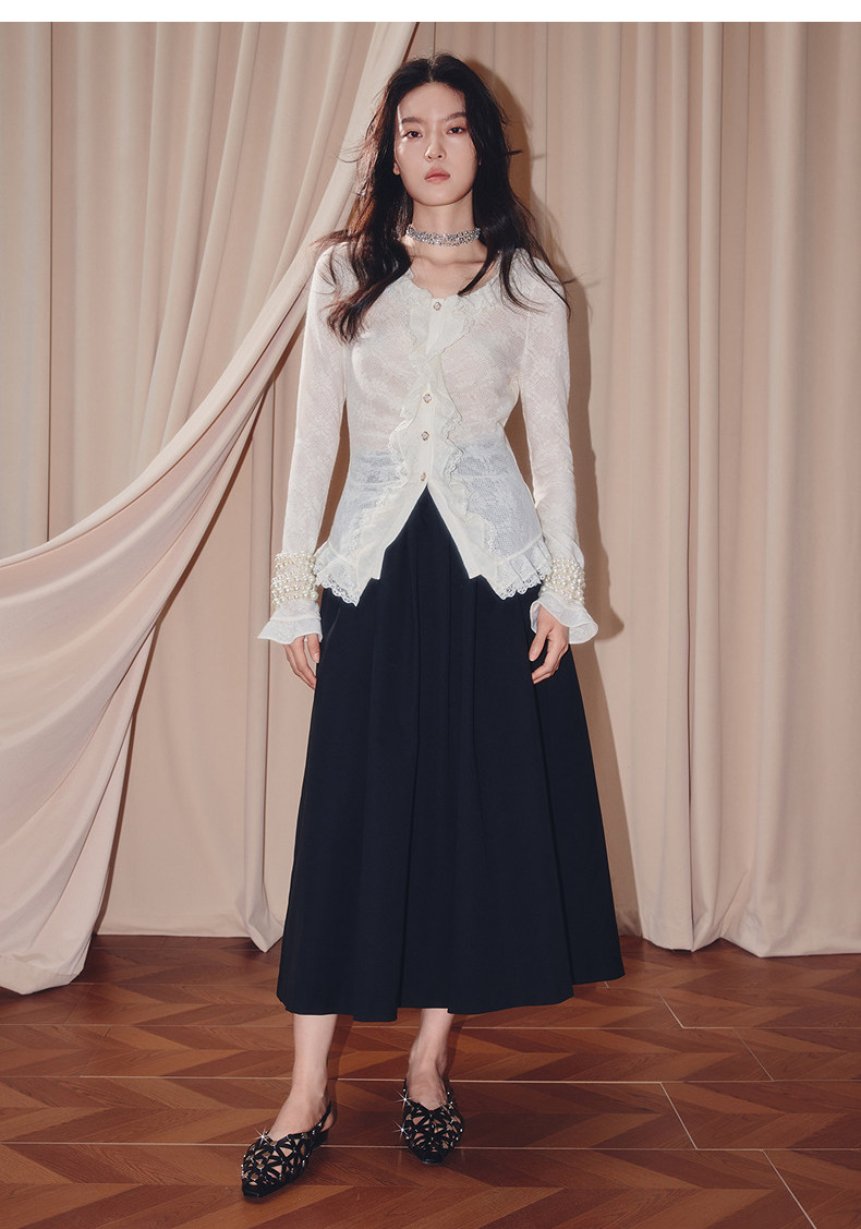 MAXRIENY法式复古羊毛针织衬衫25秋款蕾丝花边x型收腰上衣女(货号:MF86TP502)