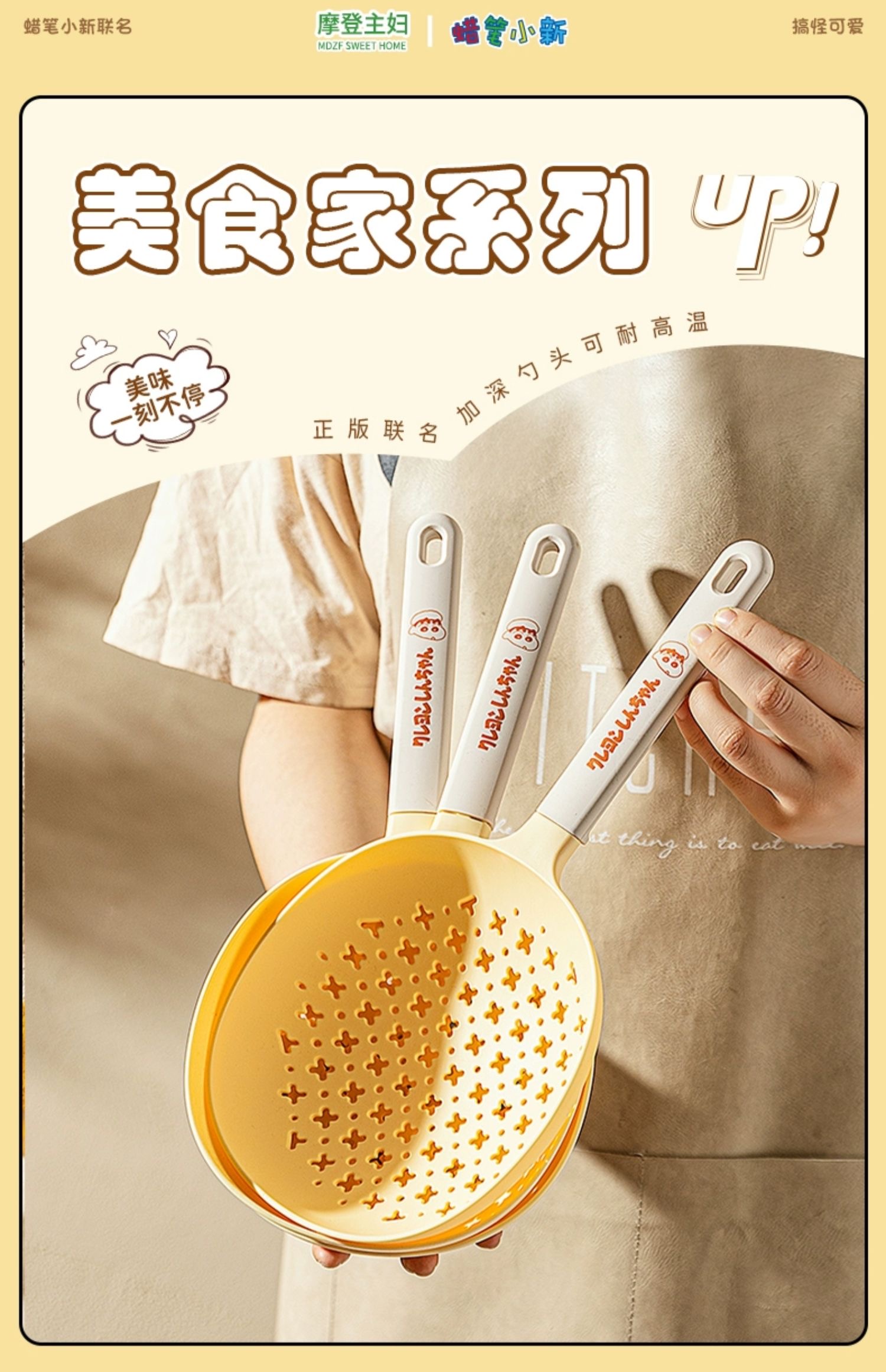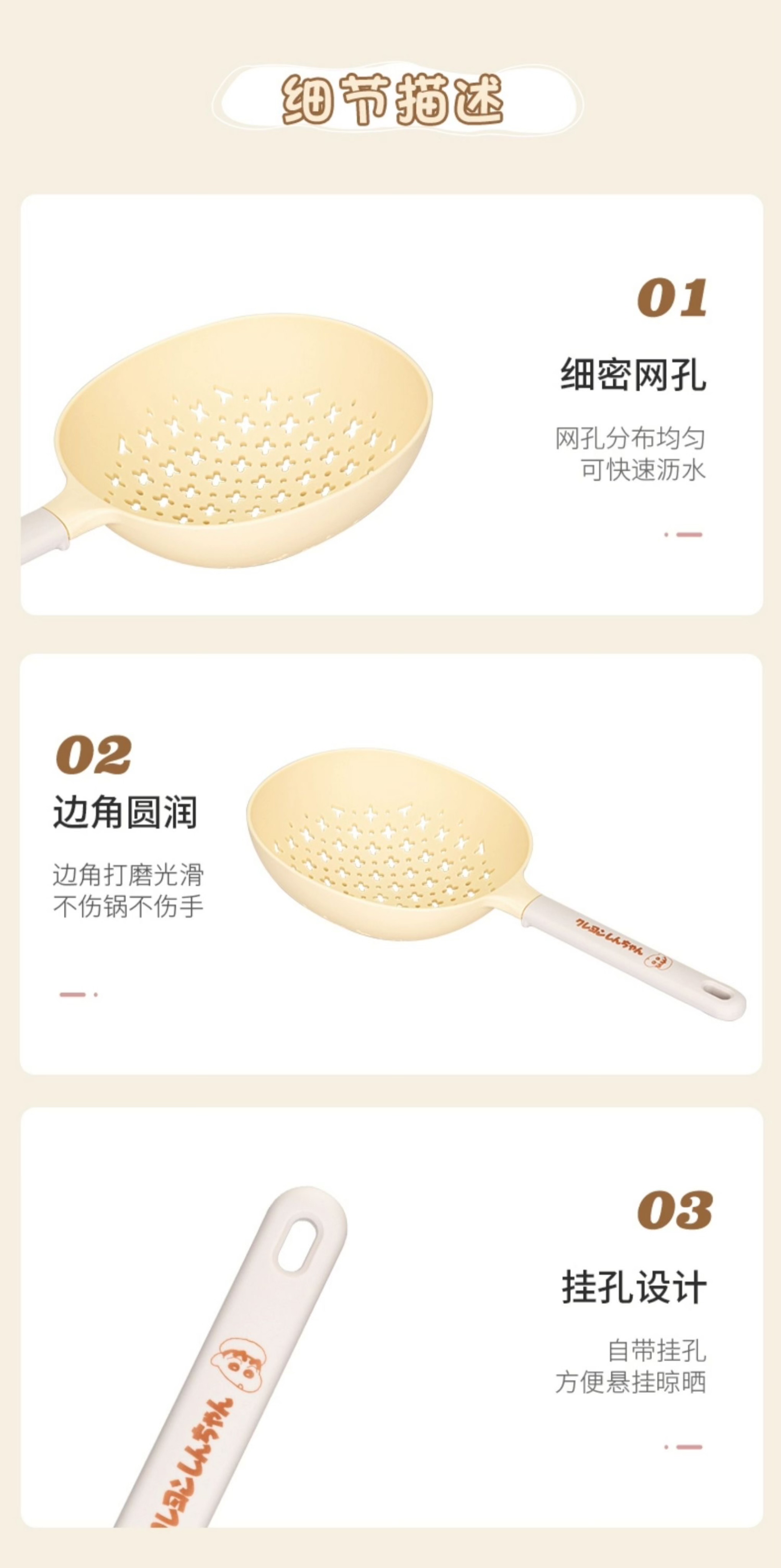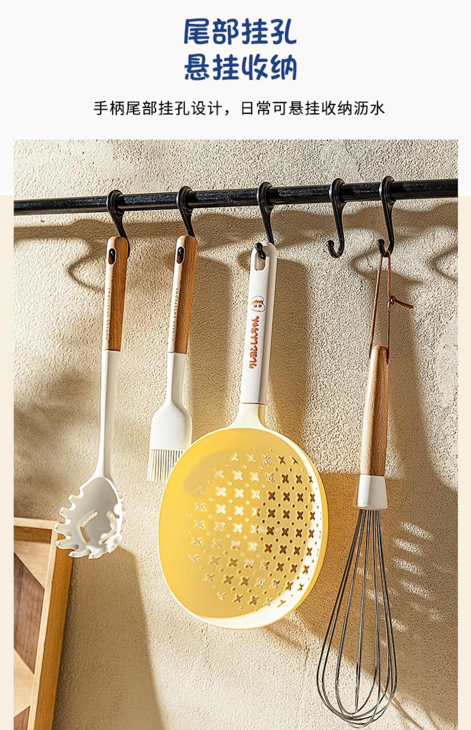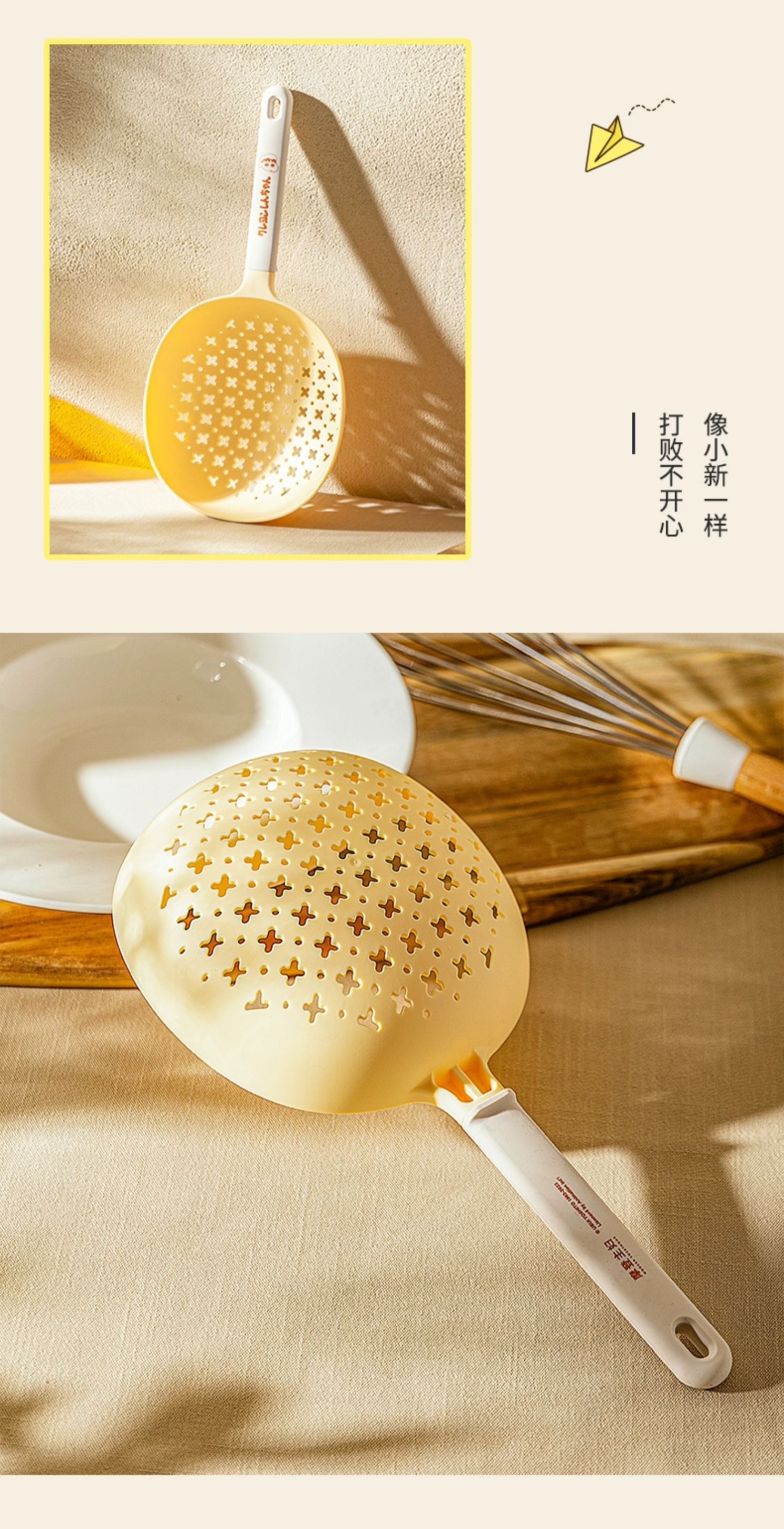 捞勺采用食用级可接触的尼龙和硅胶材质,可以耐高温,与食物接触也更安心。