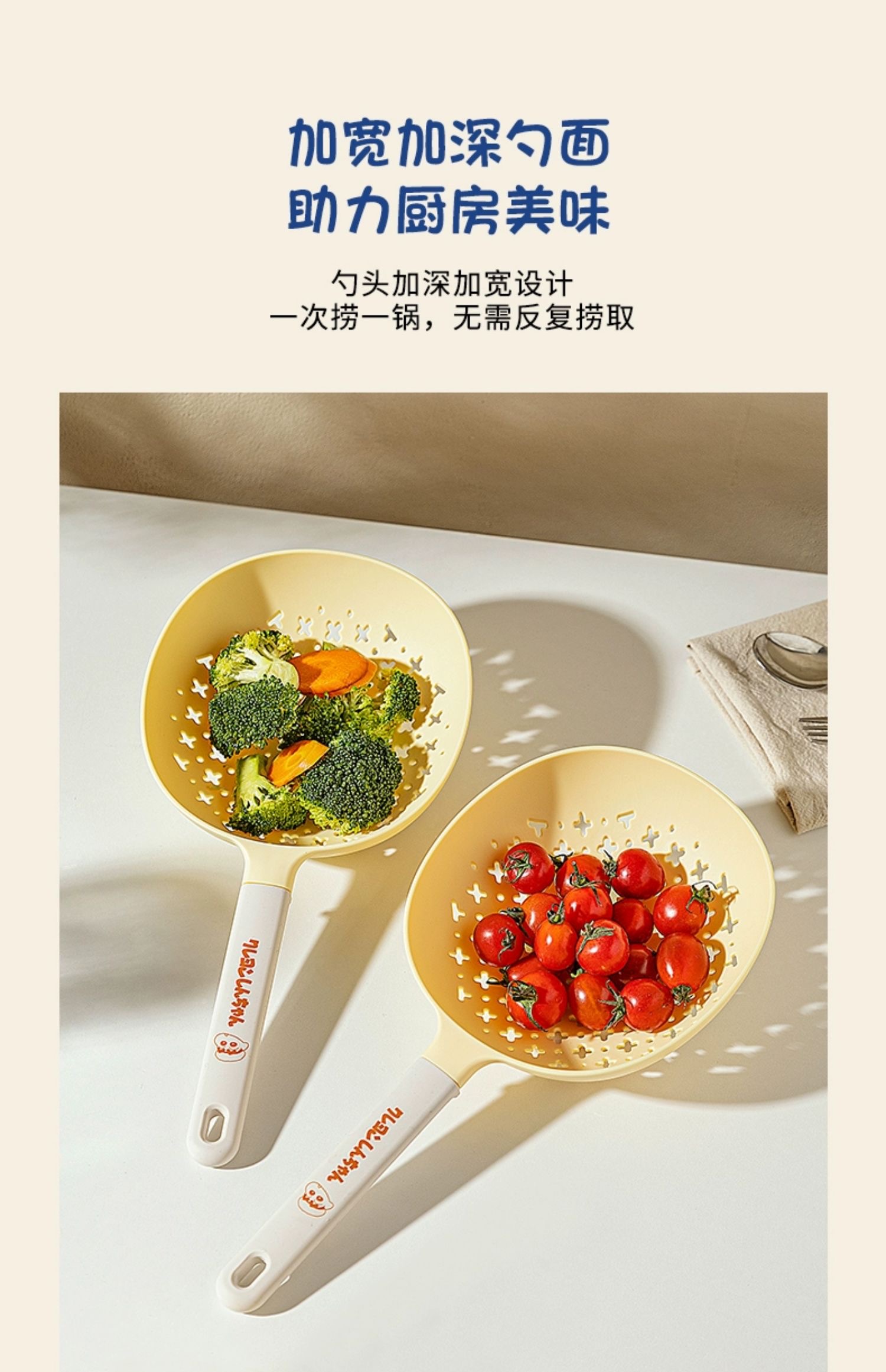 加宽加深的勺头设计,捞取美味也更容易。