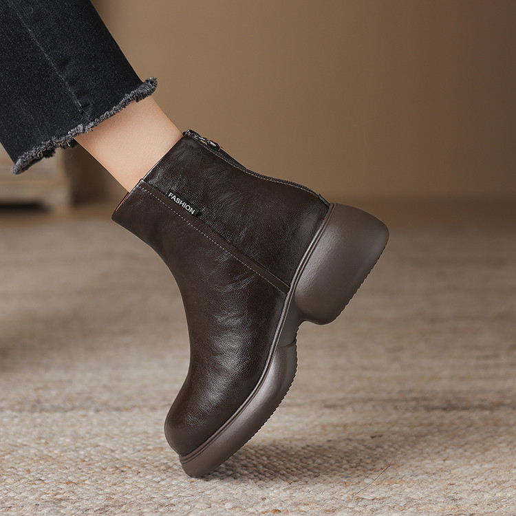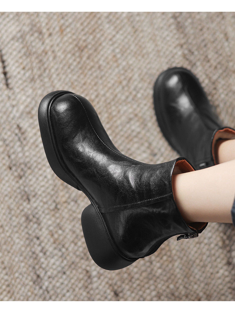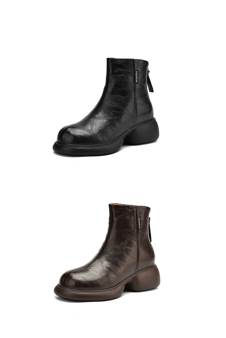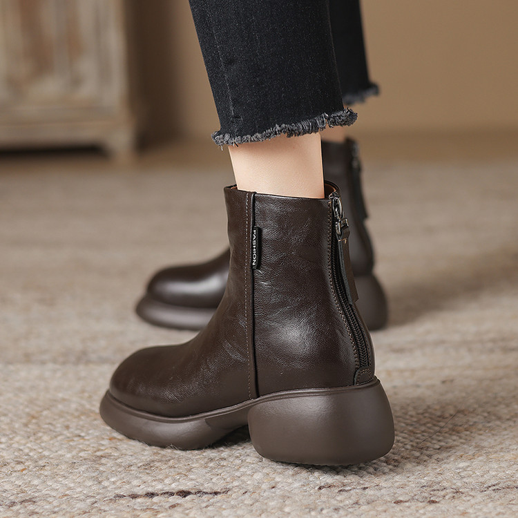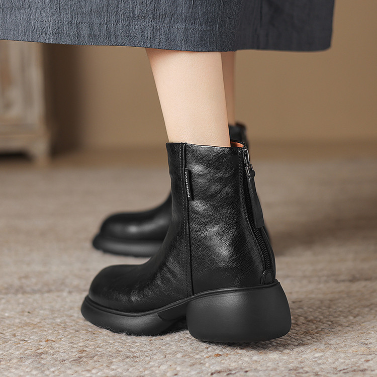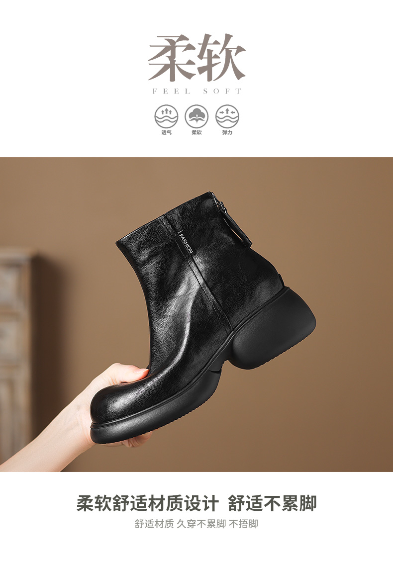 【预售5天】冬新款厚底圆头英伦风马丁靴女粗跟松糕底复古时尚短靴女MDY&AM2255-5