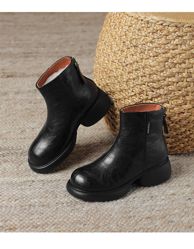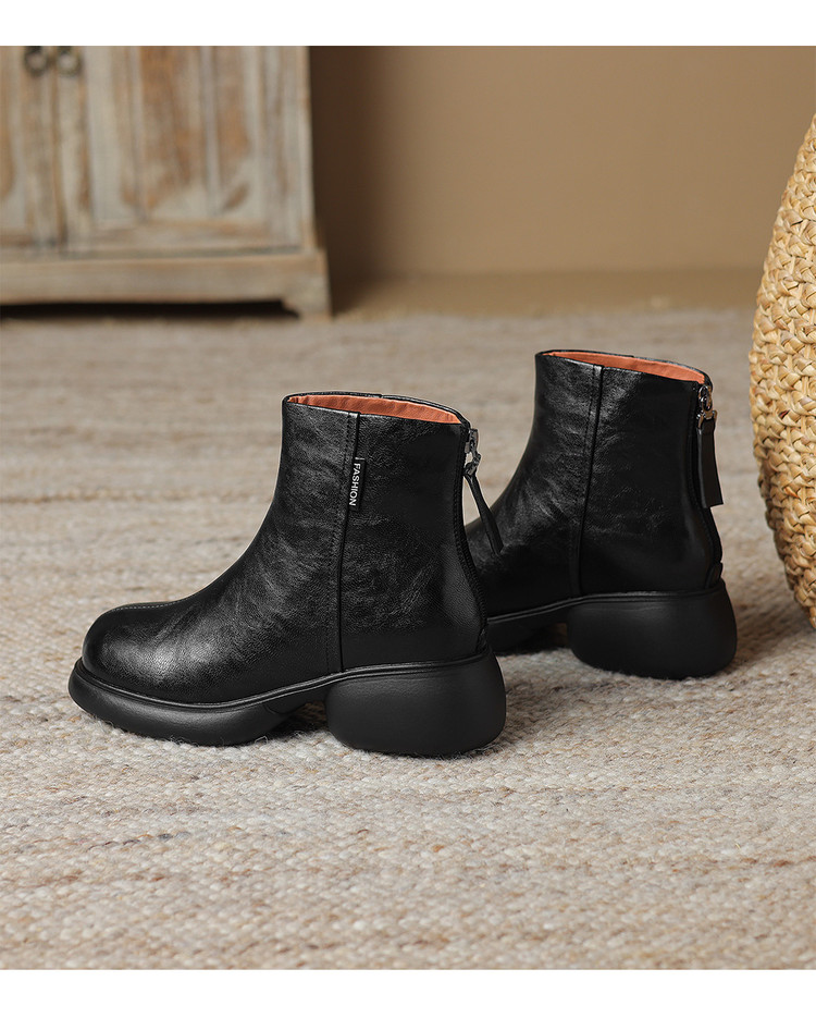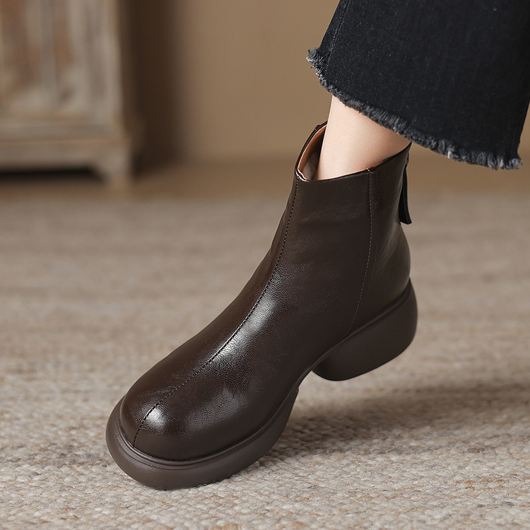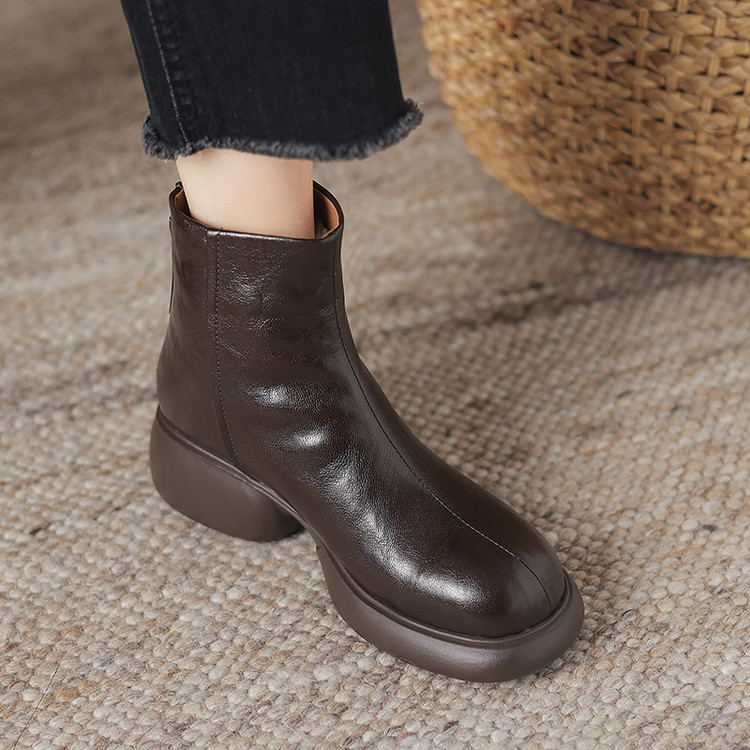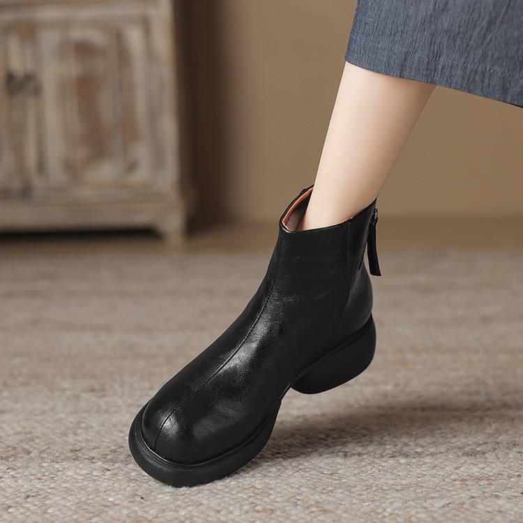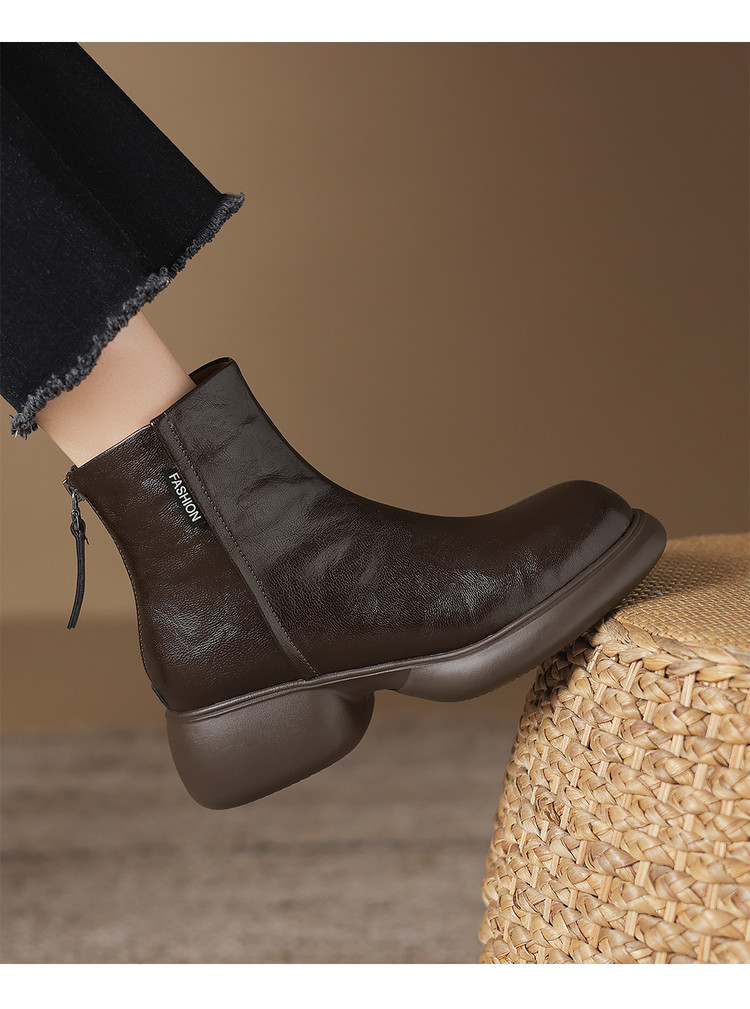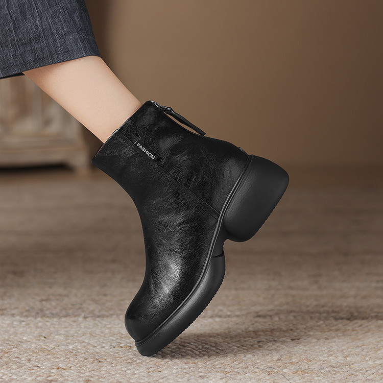 【预售5天】冬新款厚底圆头英伦风马丁靴女粗跟松糕底复古时尚短靴女MDY&AM2255-5