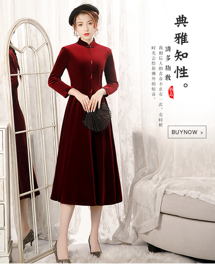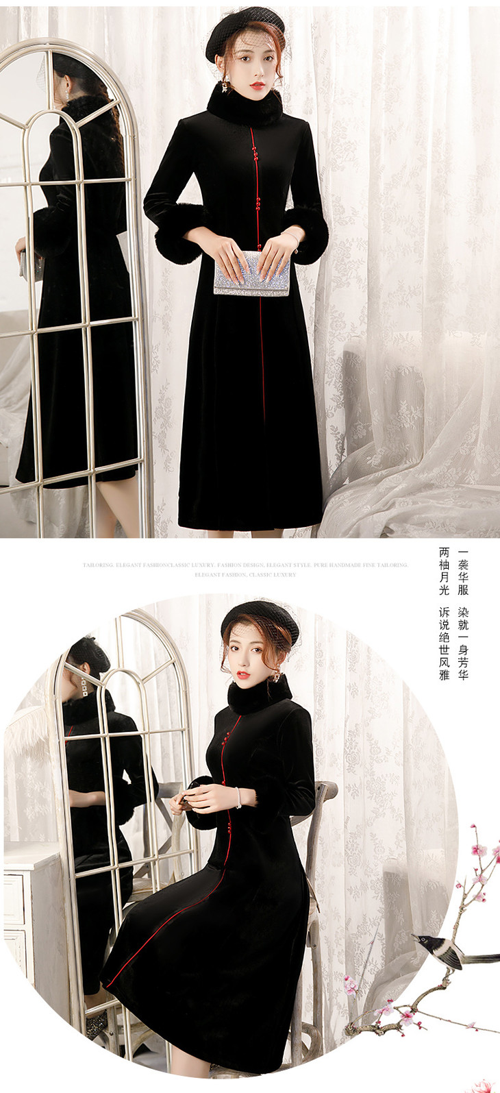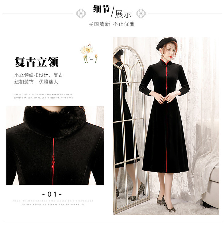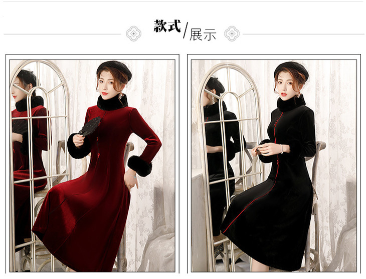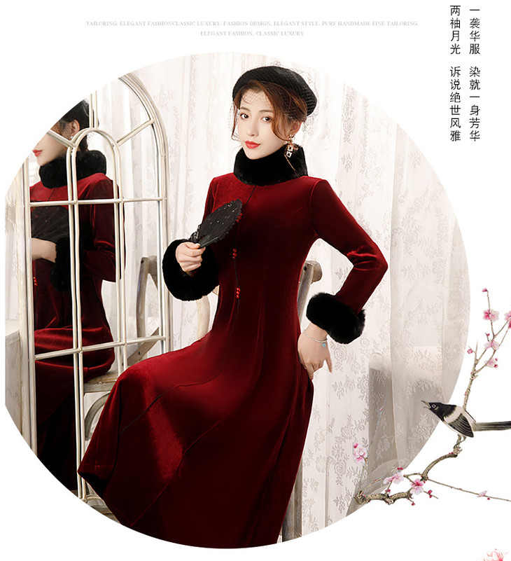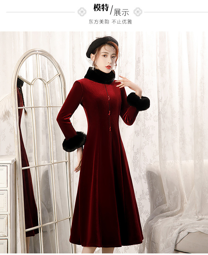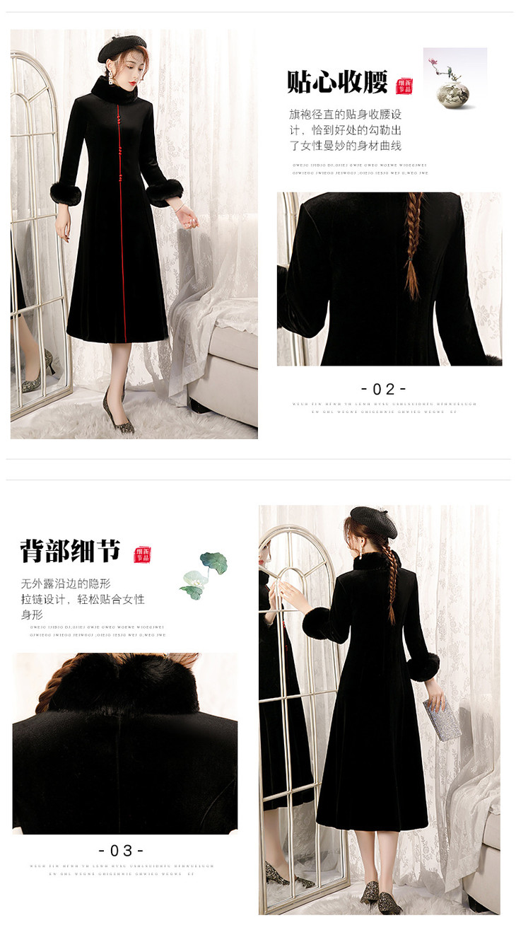 BJ-20108复古日常改良毛领加厚丝绒长款宴会旗袍