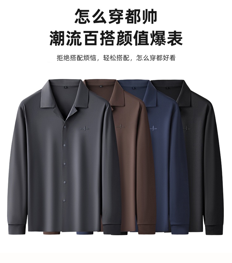 【DK】大依优型大码男装时尚休闲商务翻领POLO长袖打底衫上衣衬衫外套