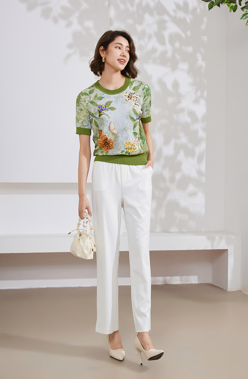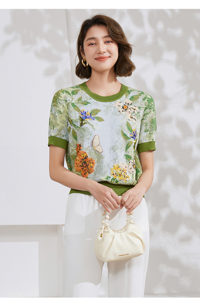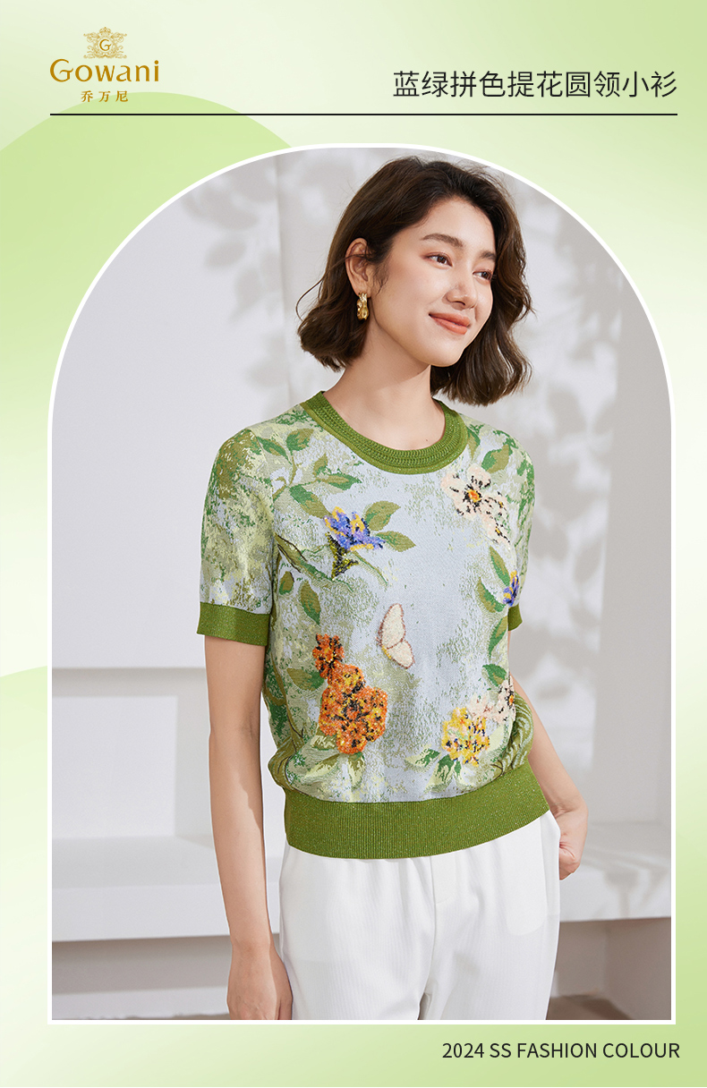 乔万尼针织衫女夏短袖新款立体提花EM2M909