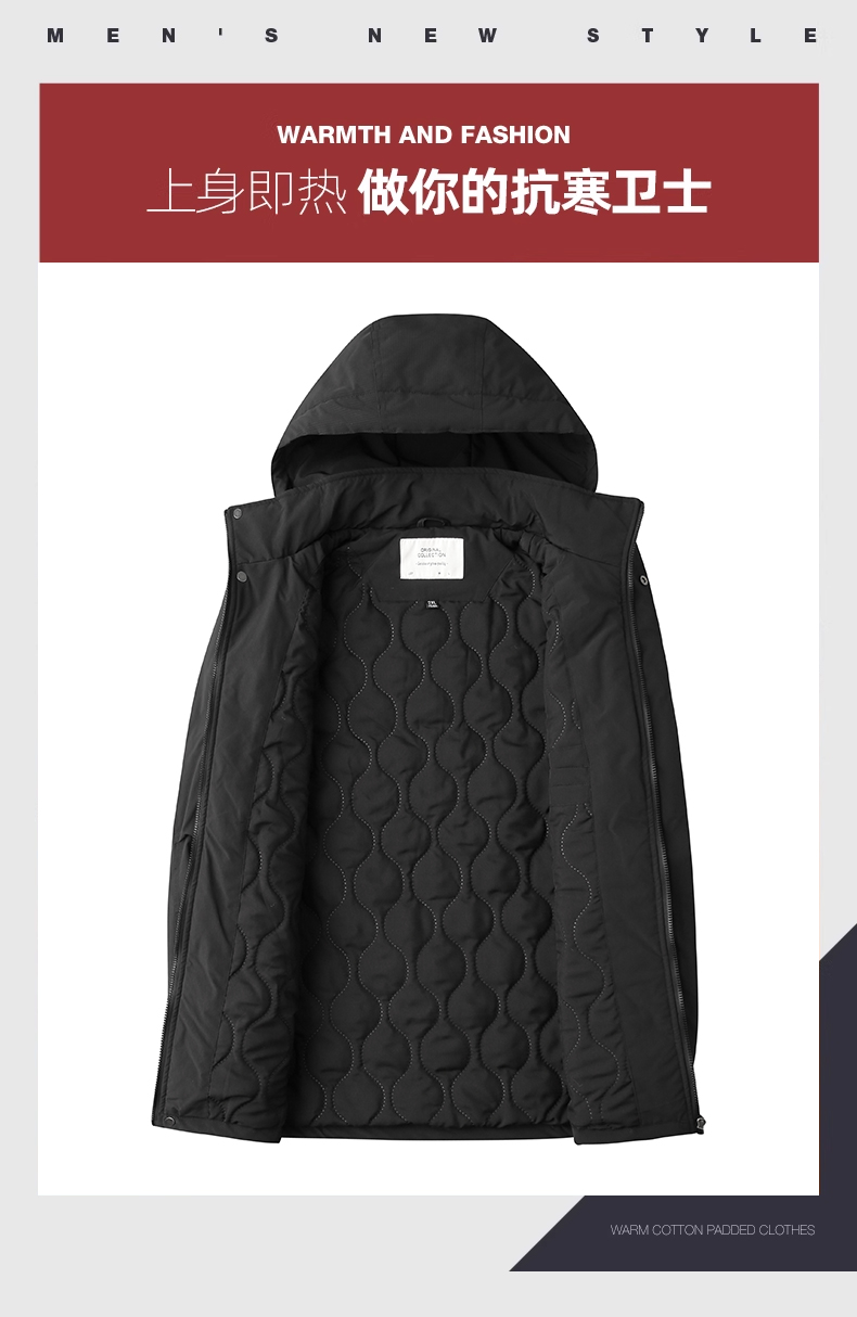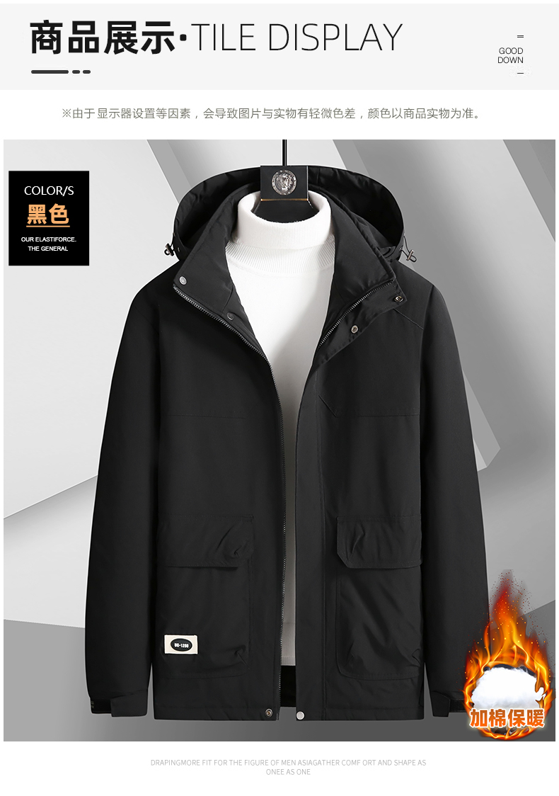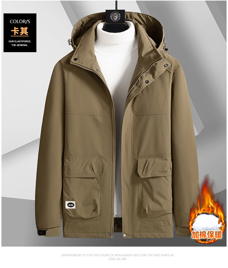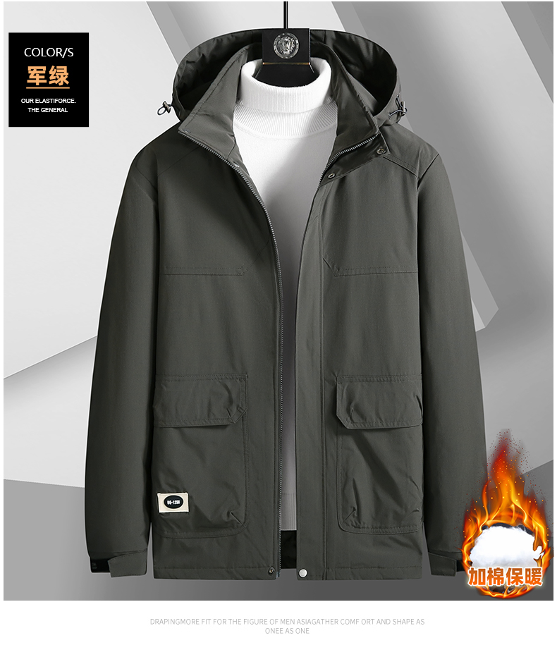 【圈】可拆卸帽【新款DK】大依优型大码多色加棉工装棉服加肥加大外套胖子大号外套上衣男士保暖