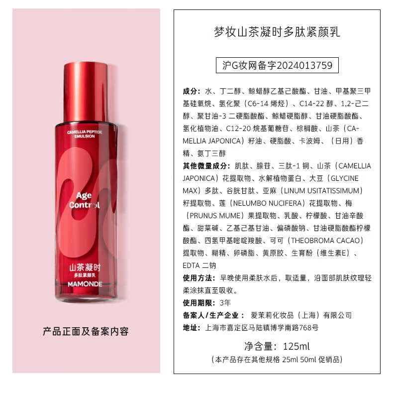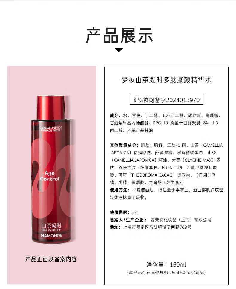 【新年拍1得3】梦妆山茶凝时多肽精华水礼盒紧致抗皱化妆护肤品水乳套装(山茶凝时多肽精华水150ml+乳液50ml+洁面80ml) 280ml 新版拍1得3
