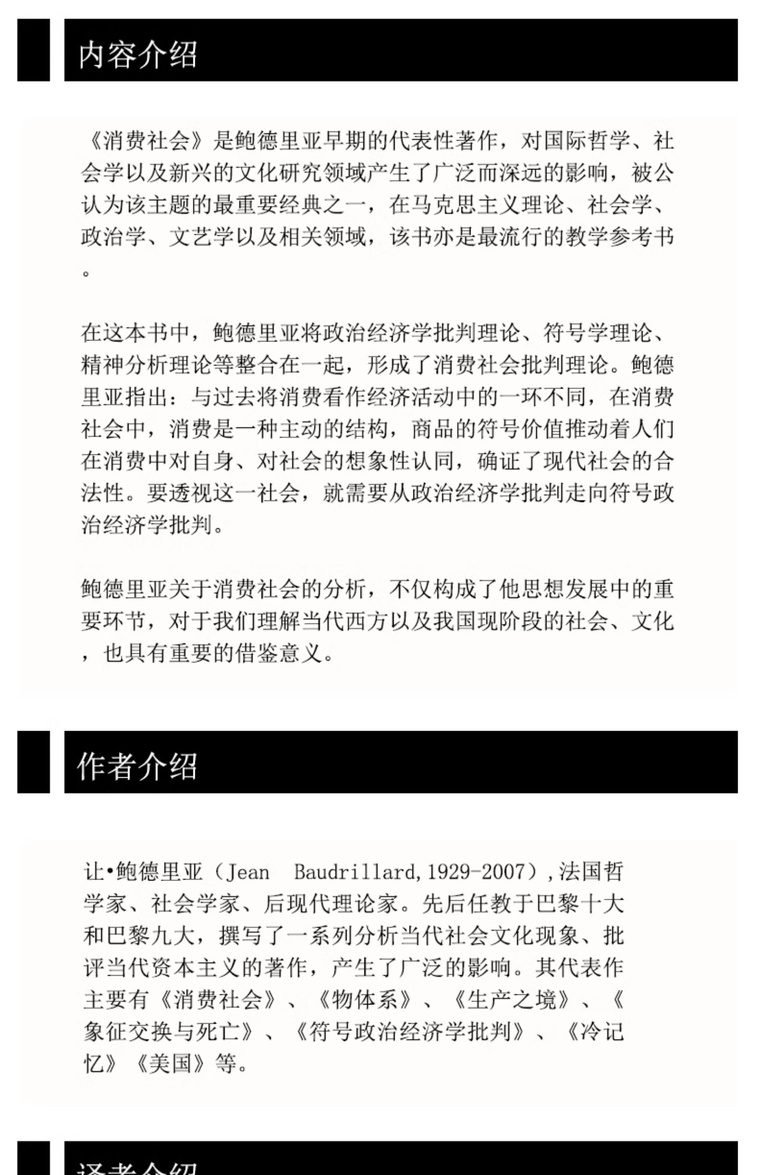 正版图书 消费社会 当代学术棱镜译丛 让·鲍德里亚著 南京大学出版社旗舰店 社会学著作 ND