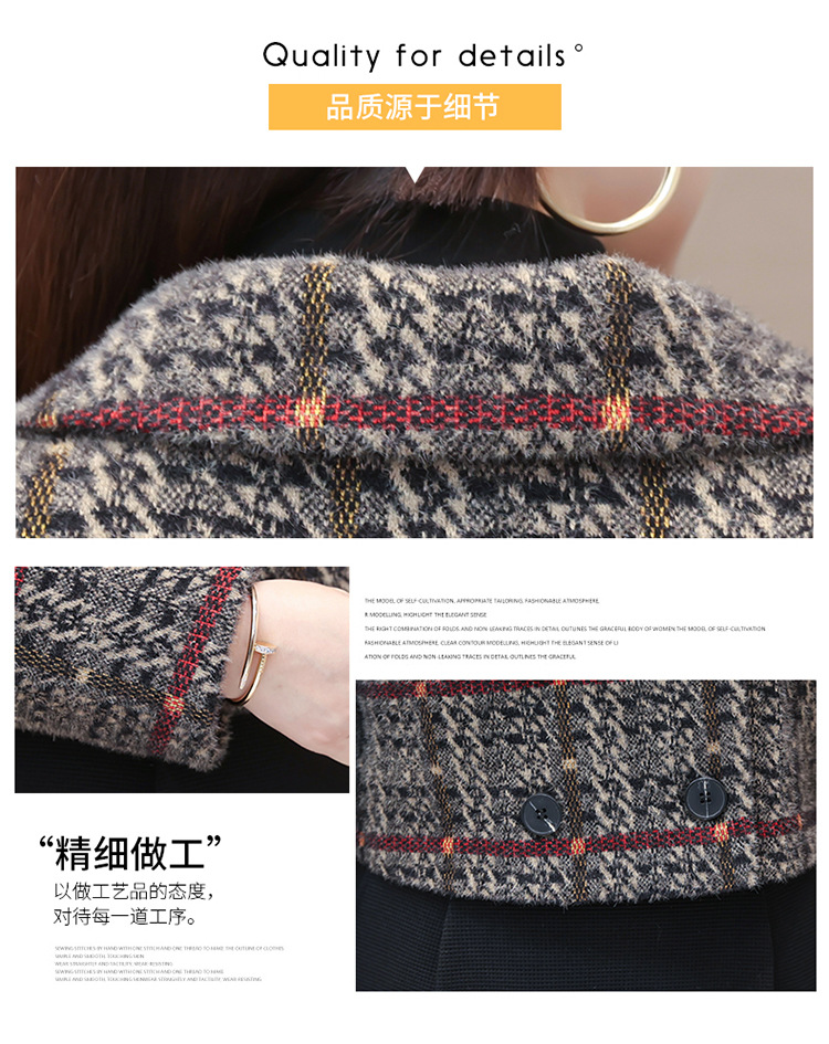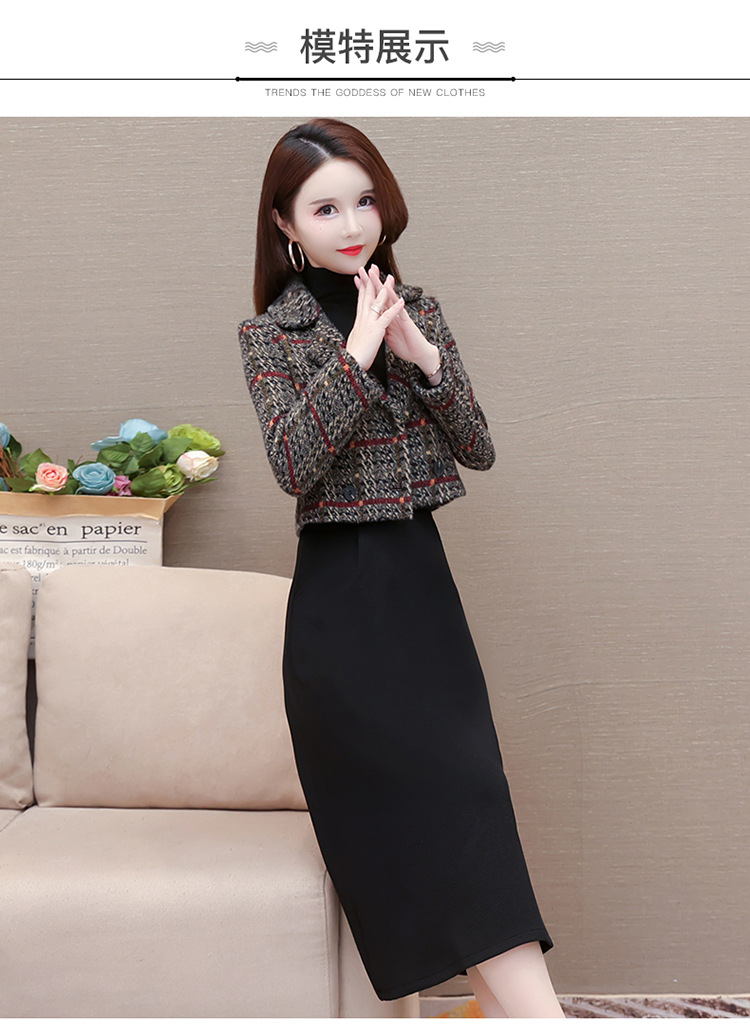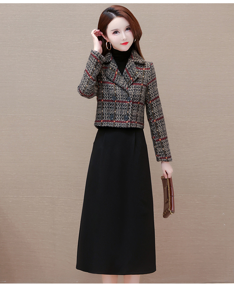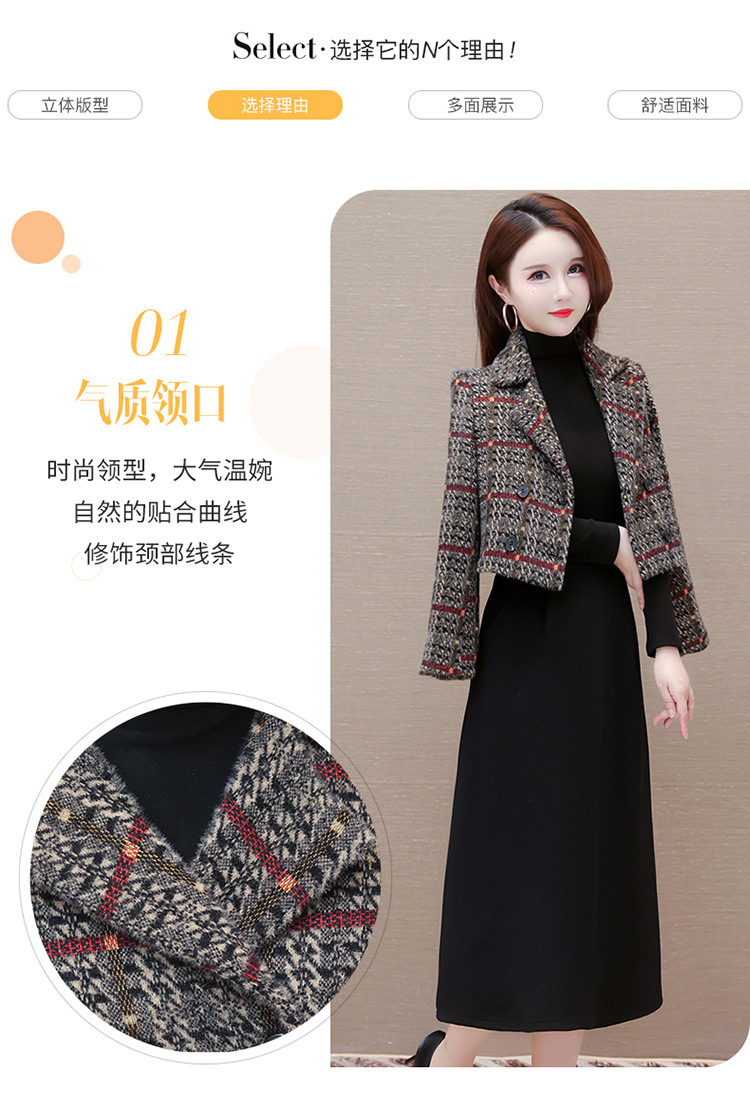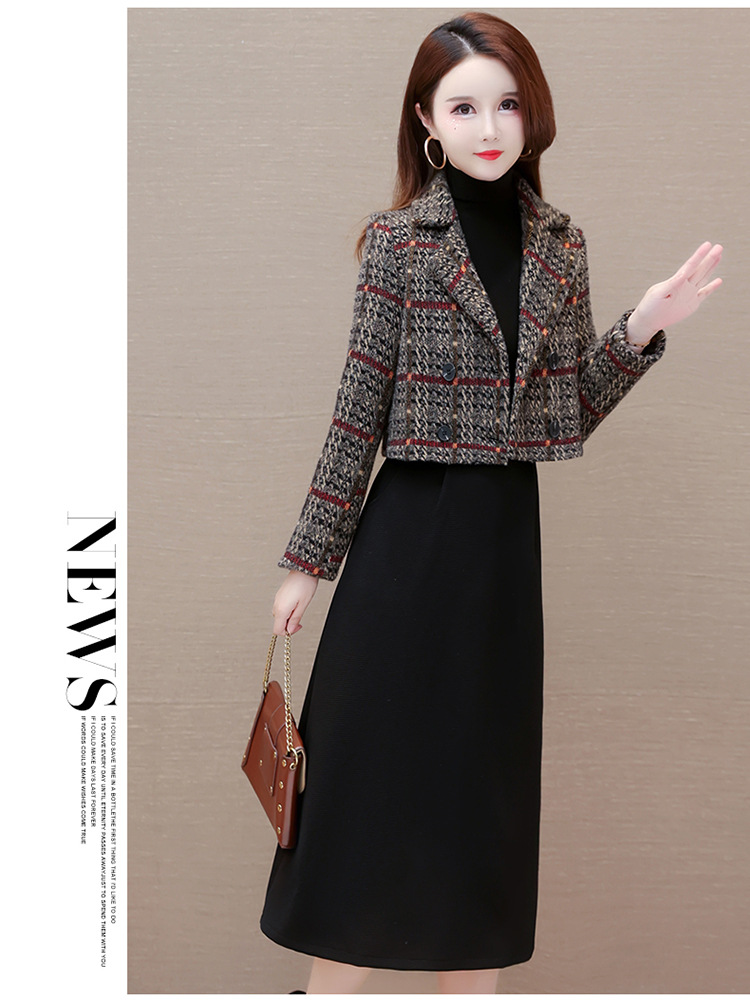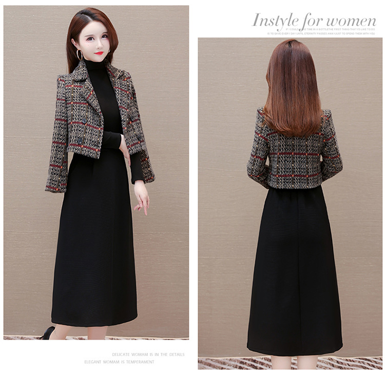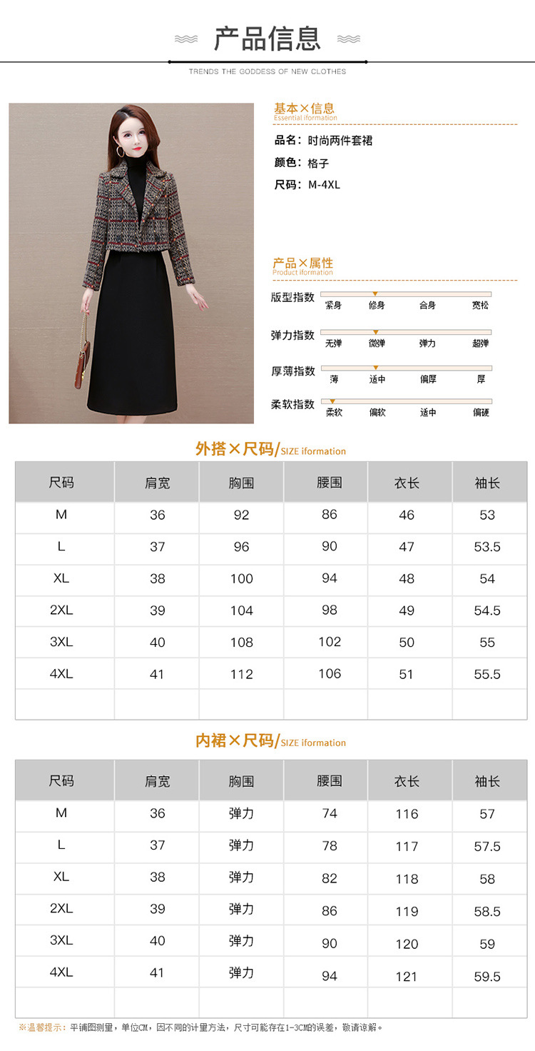 新款时尚套装裙中长裙时尚两件套连衣裙打底裙短款格纹外套QYM-TYH-239903-Y