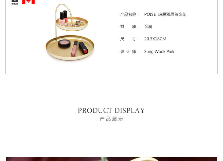 简约收纳 Umbra POISE 珀丝双层珠宝架 大号金色
