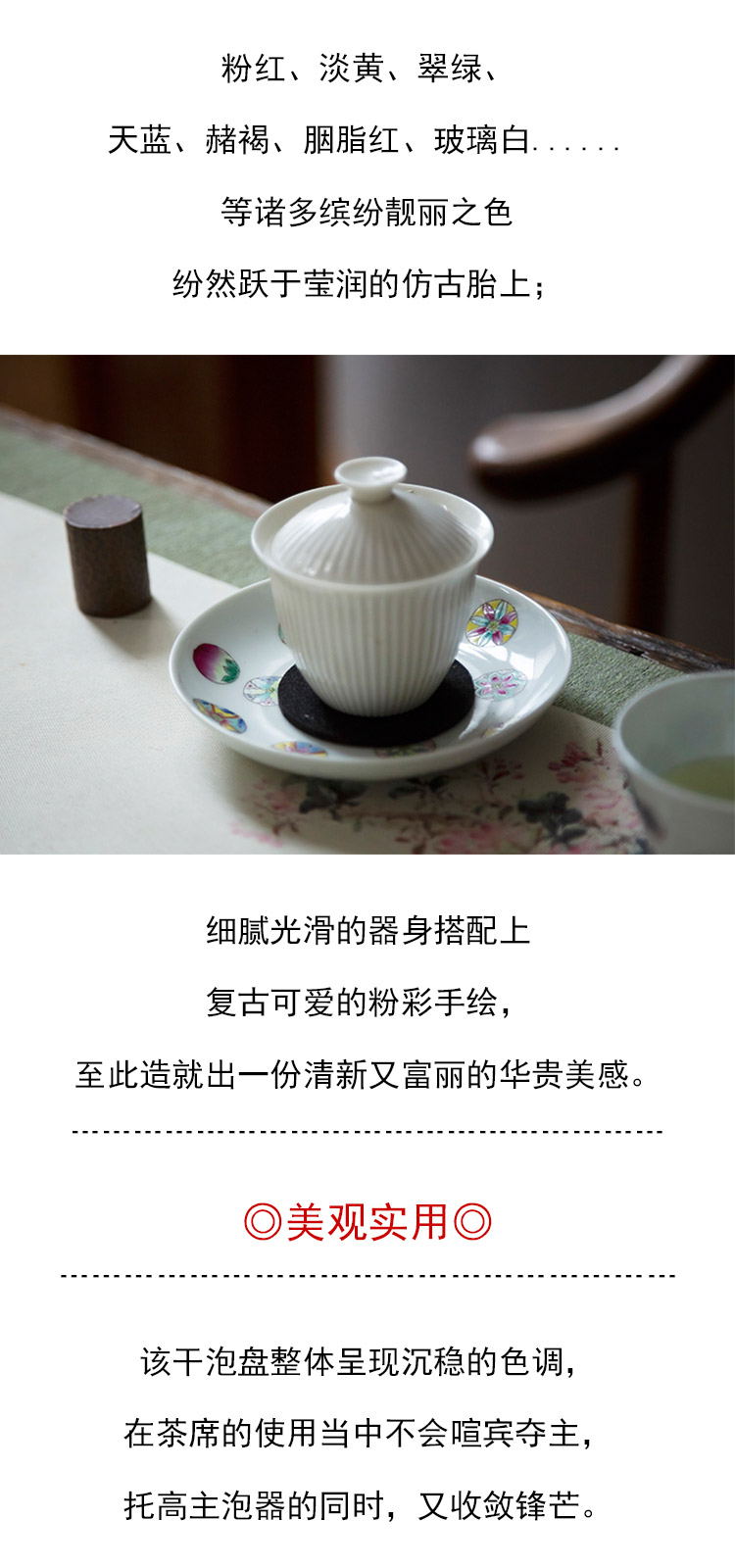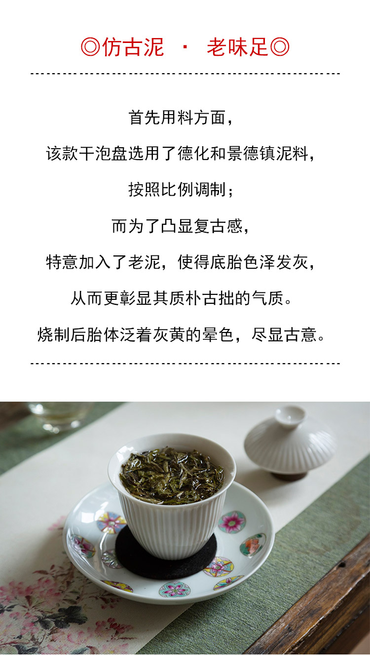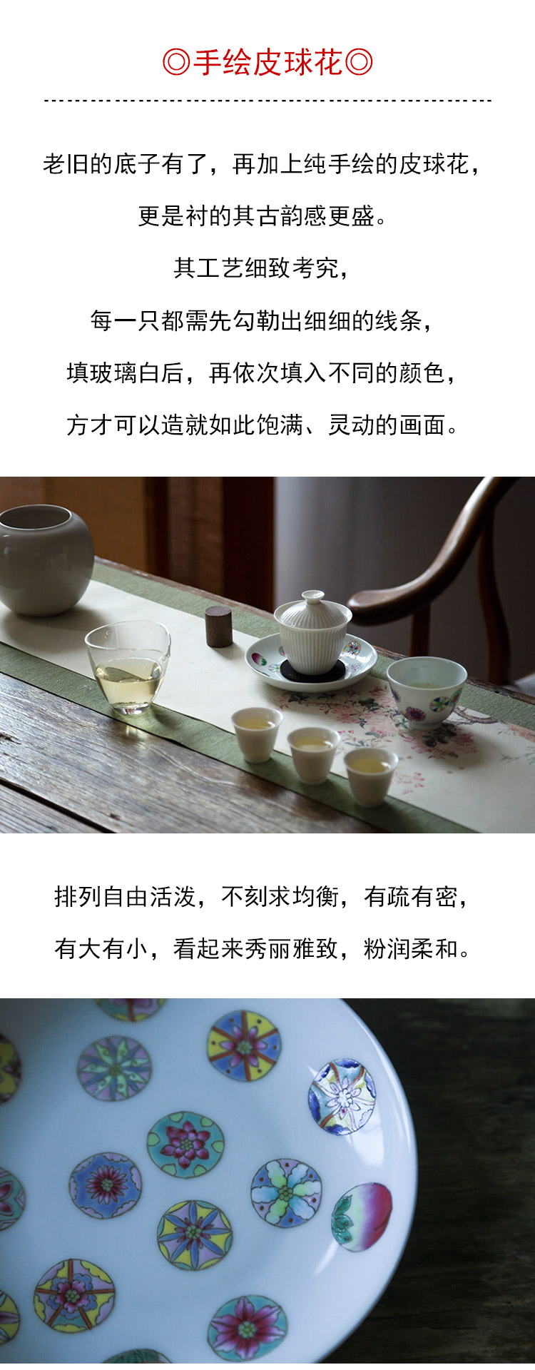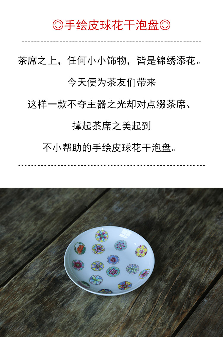 茶香记 景德镇 仿古泥手绘皮球花 干泡盘 复古可爱 老味十足