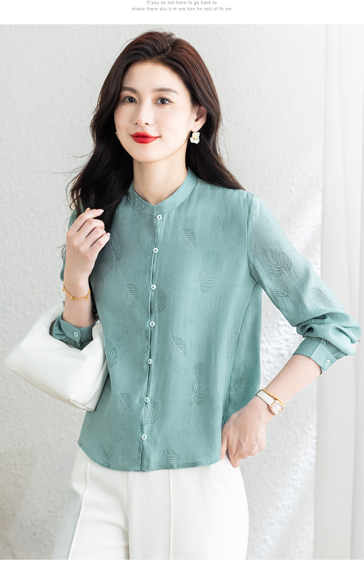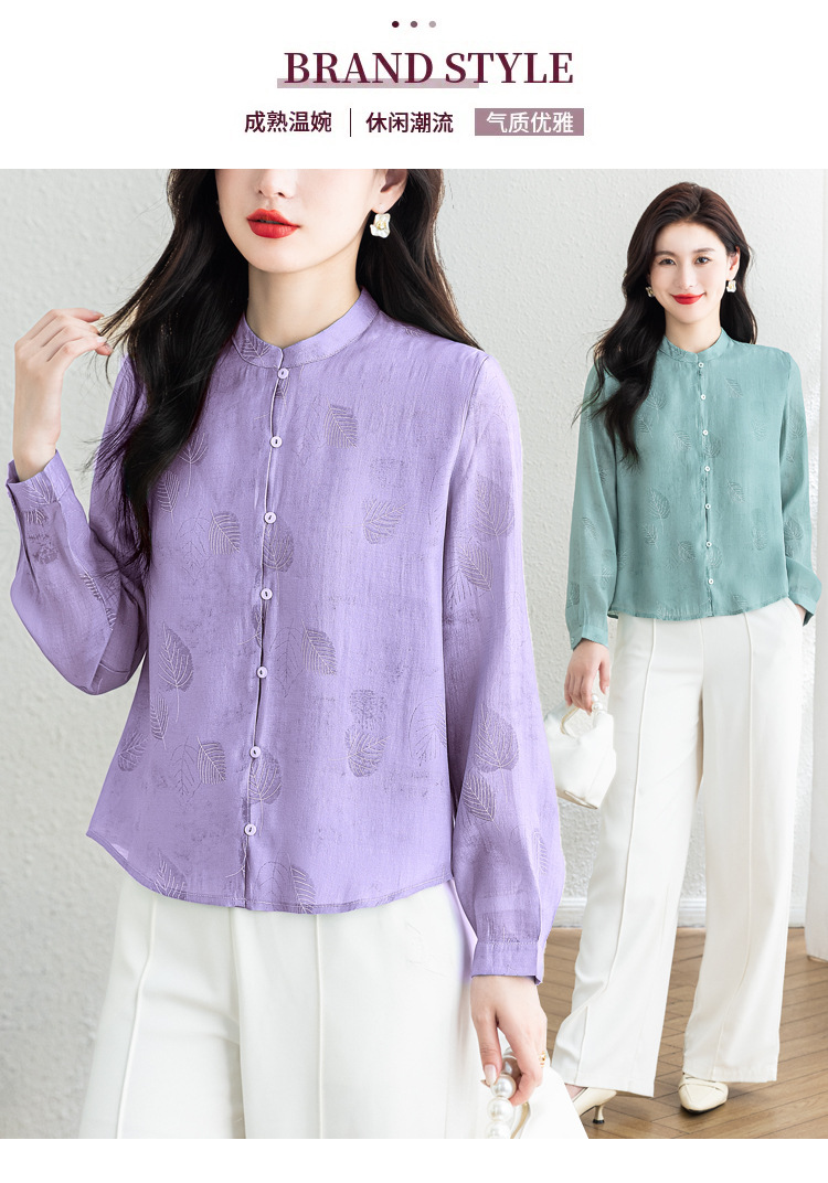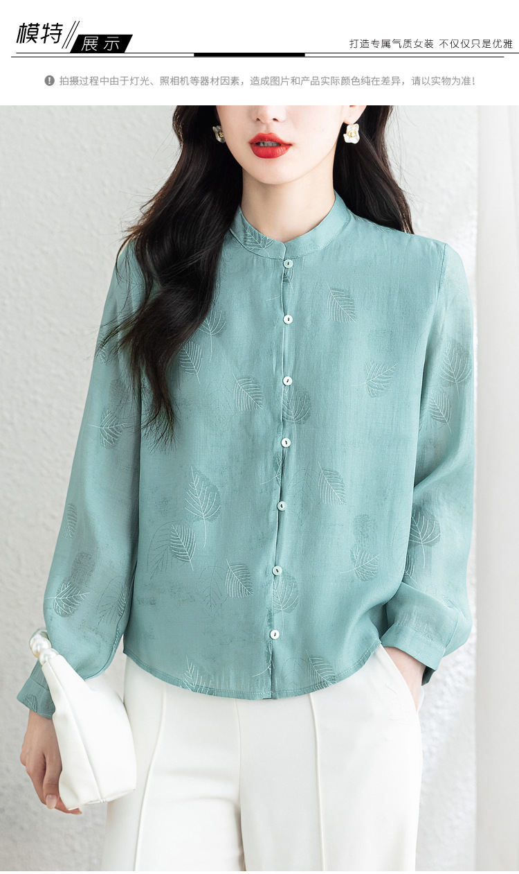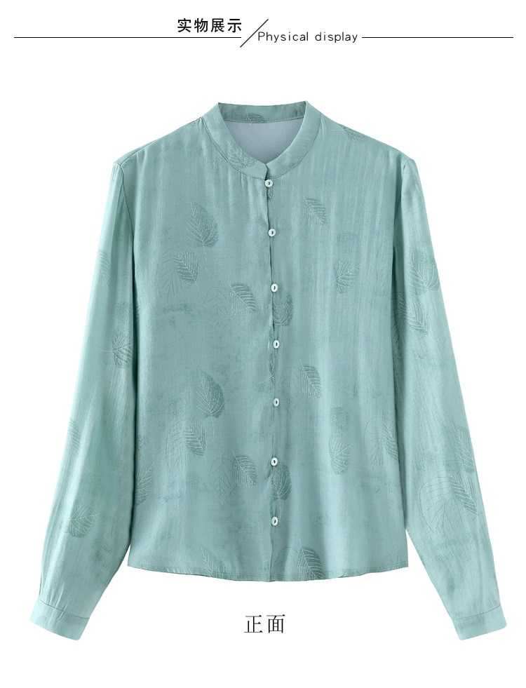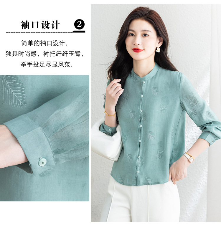 KQL 369H9972天丝长袖衬衫复古立领修身显瘦时尚上衣