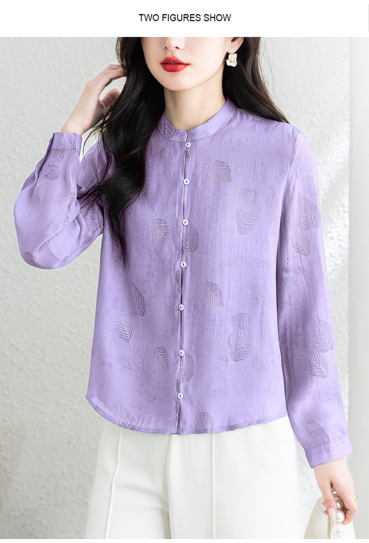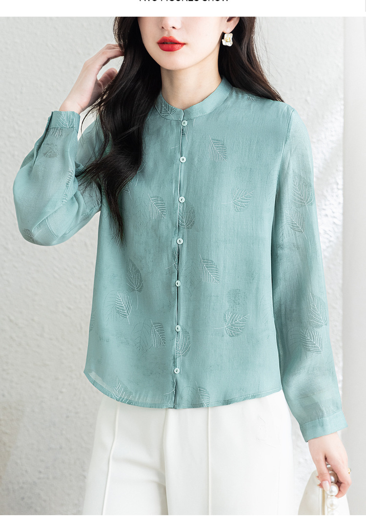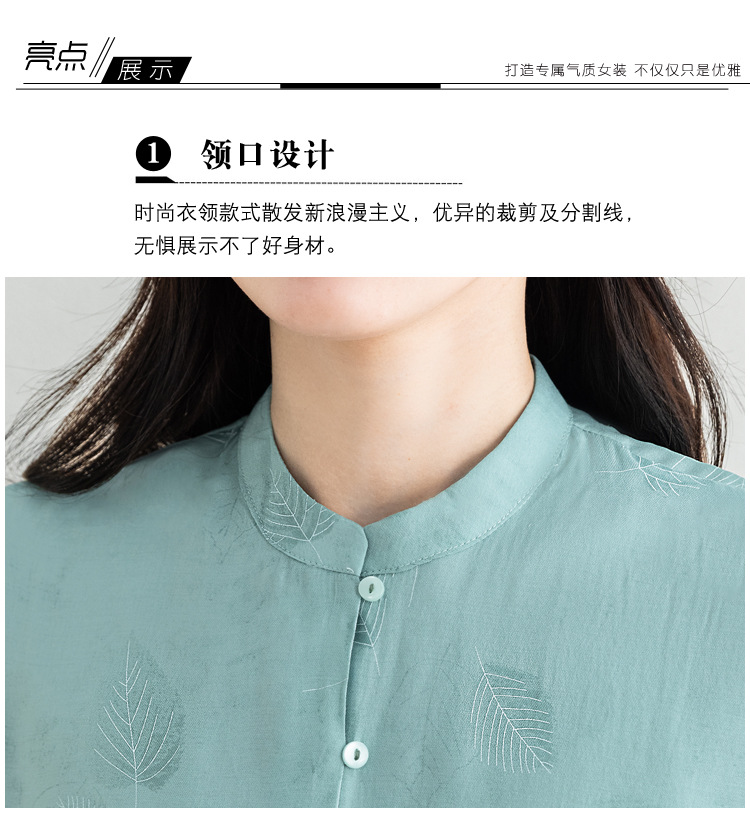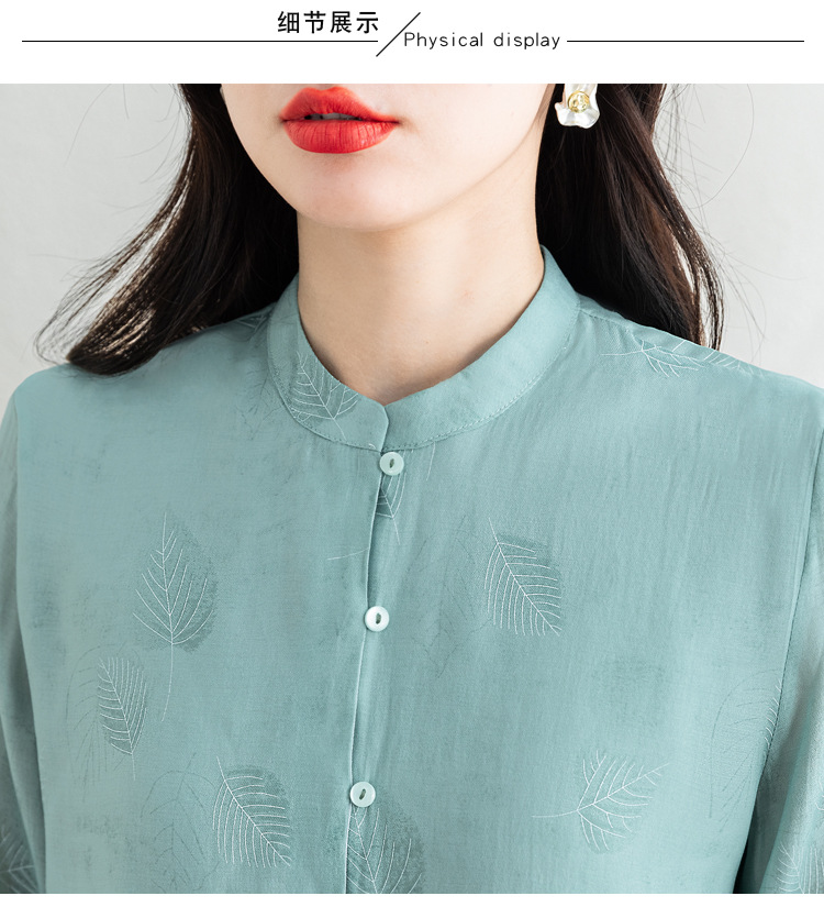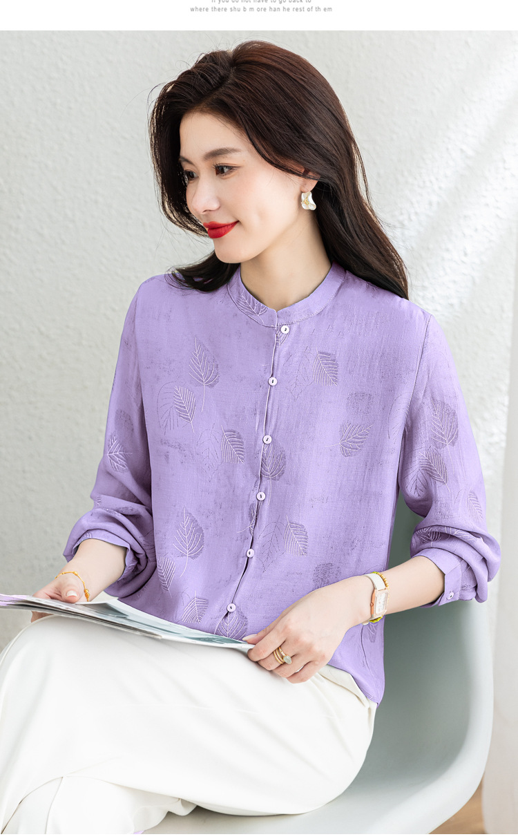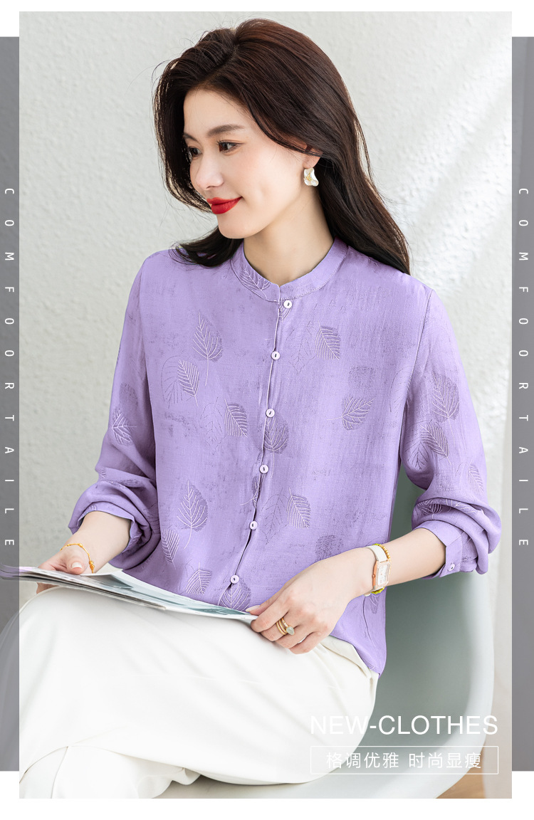 KQL 369H9972天丝长袖衬衫复古立领修身显瘦时尚上衣