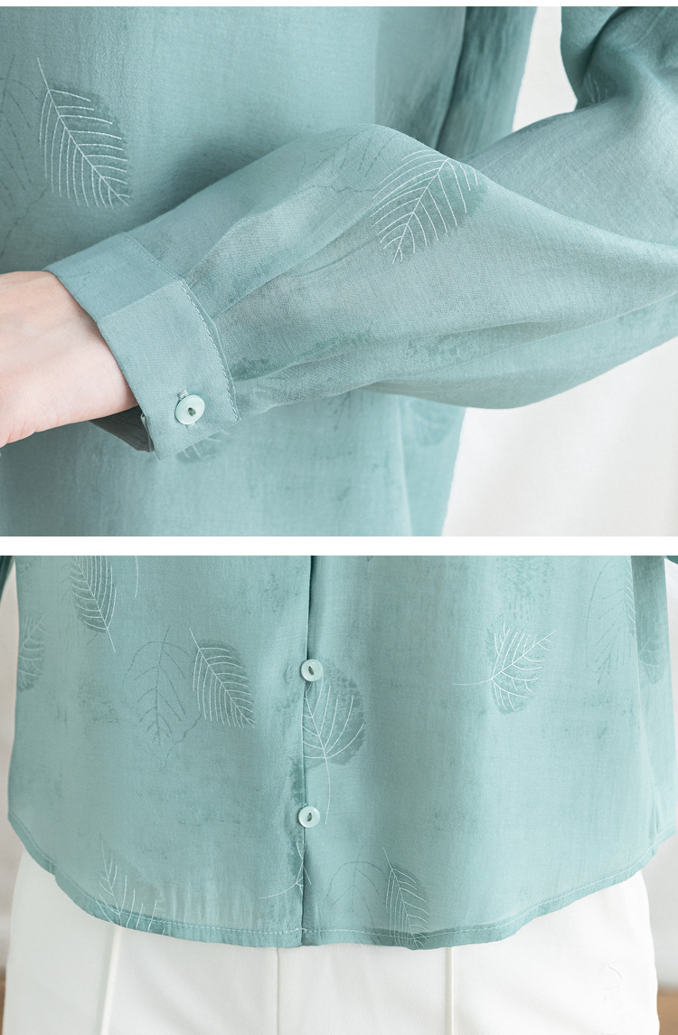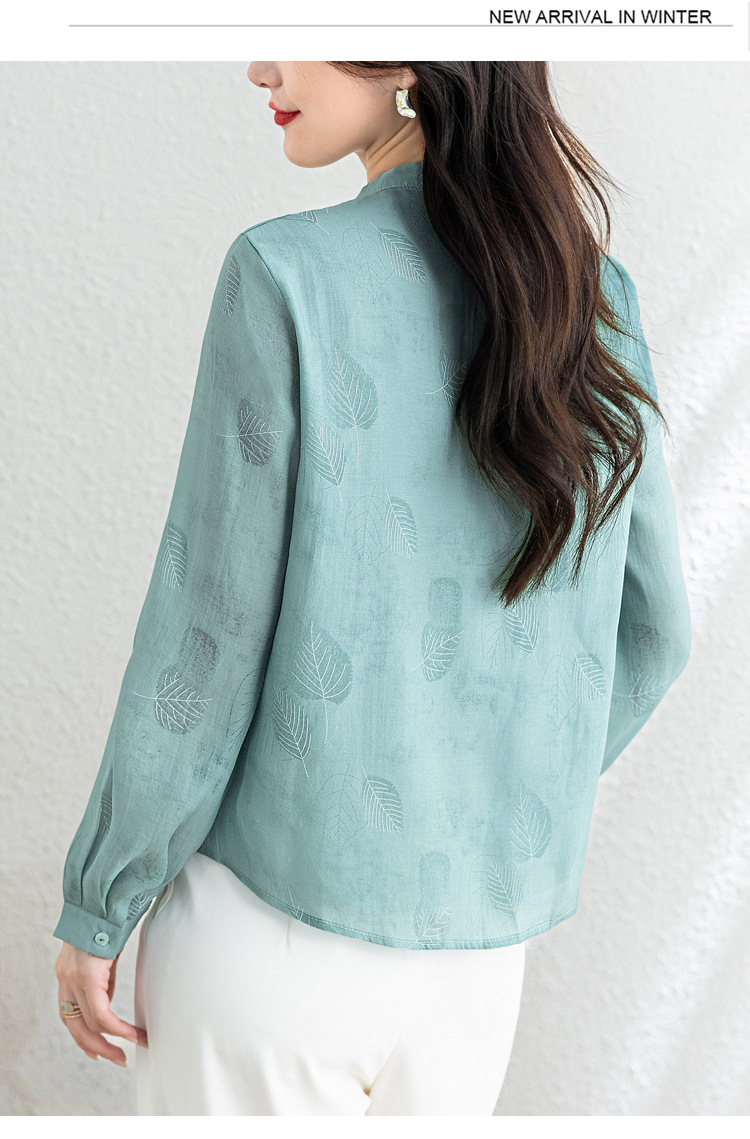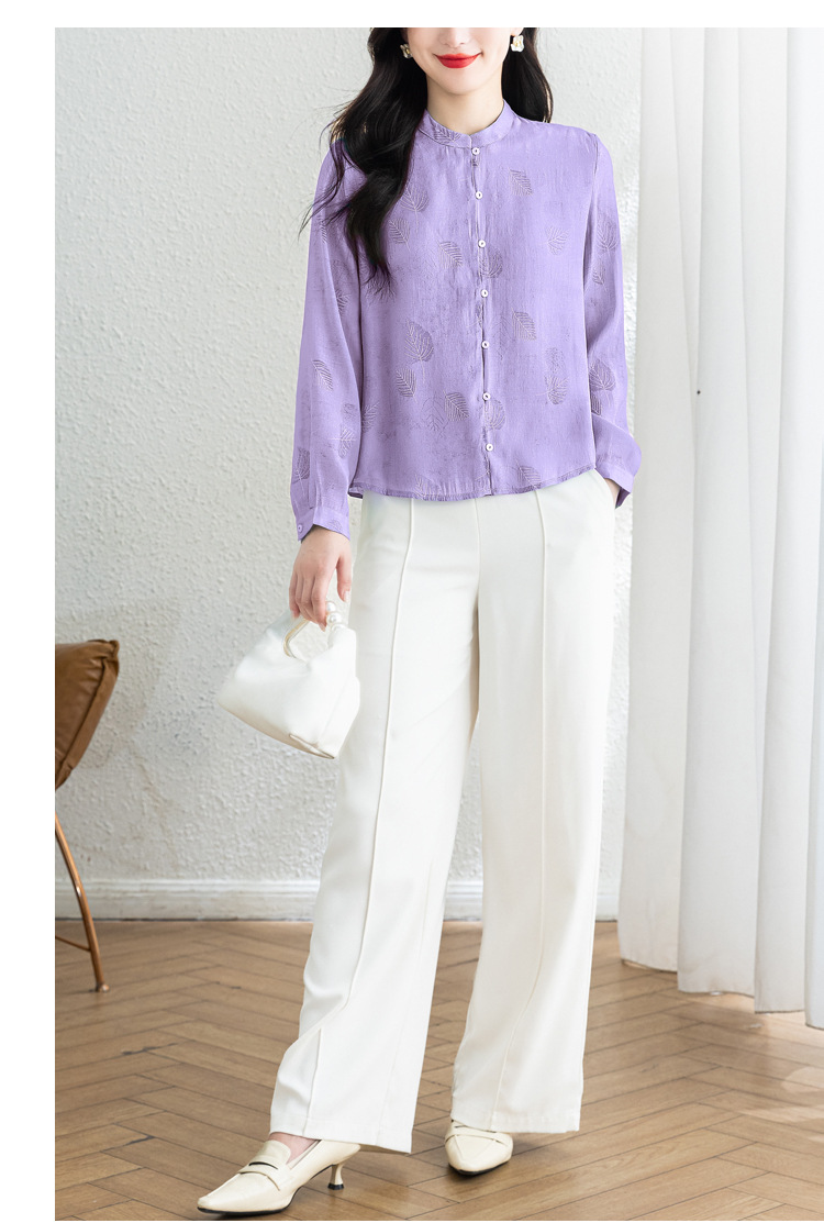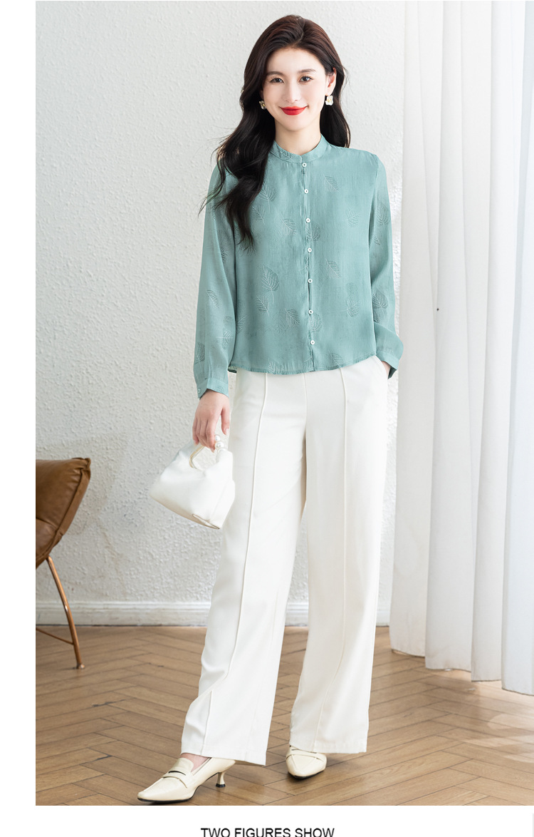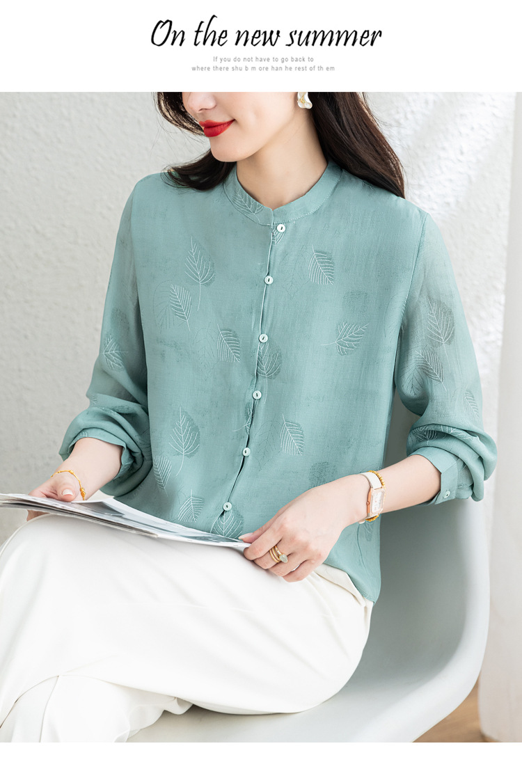 KQL 369H9972天丝长袖衬衫复古立领修身显瘦时尚上衣