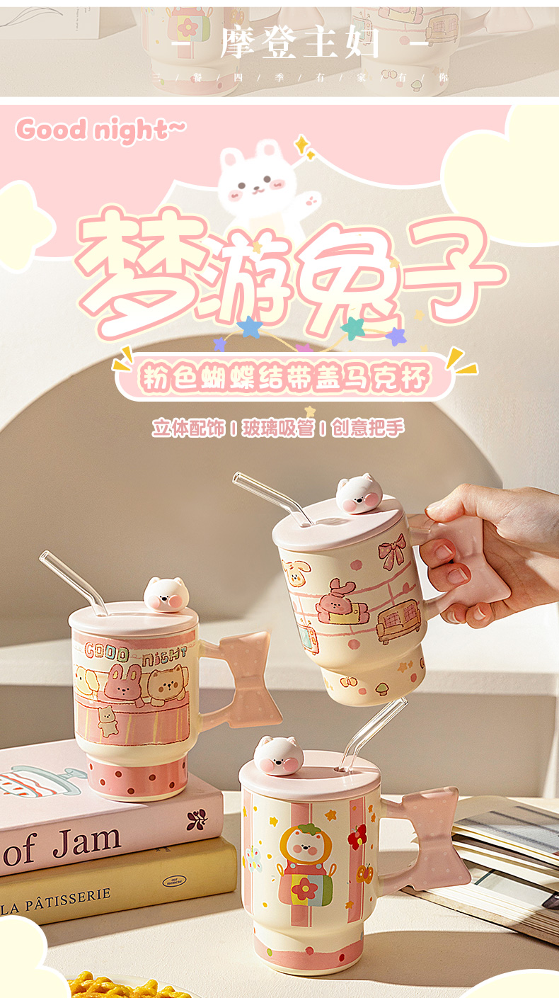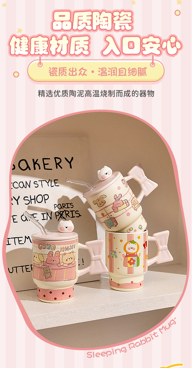摩登主妇梦游兔子复古马克杯家用喝水杯早餐杯咖啡杯女生办公室杯子陶瓷杯