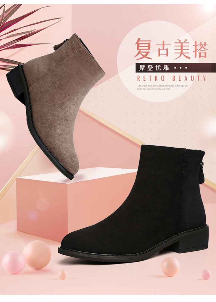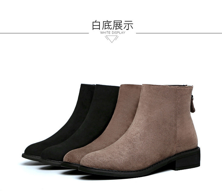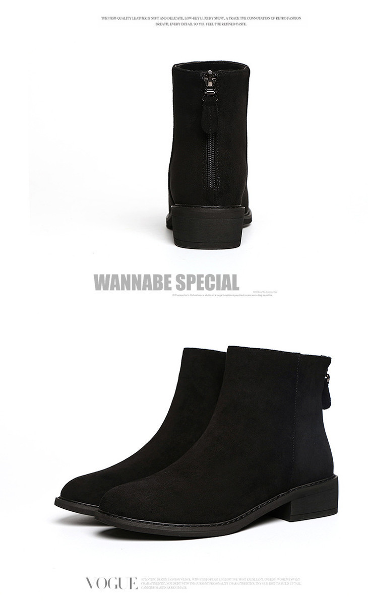 磨砂真皮平底短靴,加绒粗跟磨砂马丁靴LXHX4354