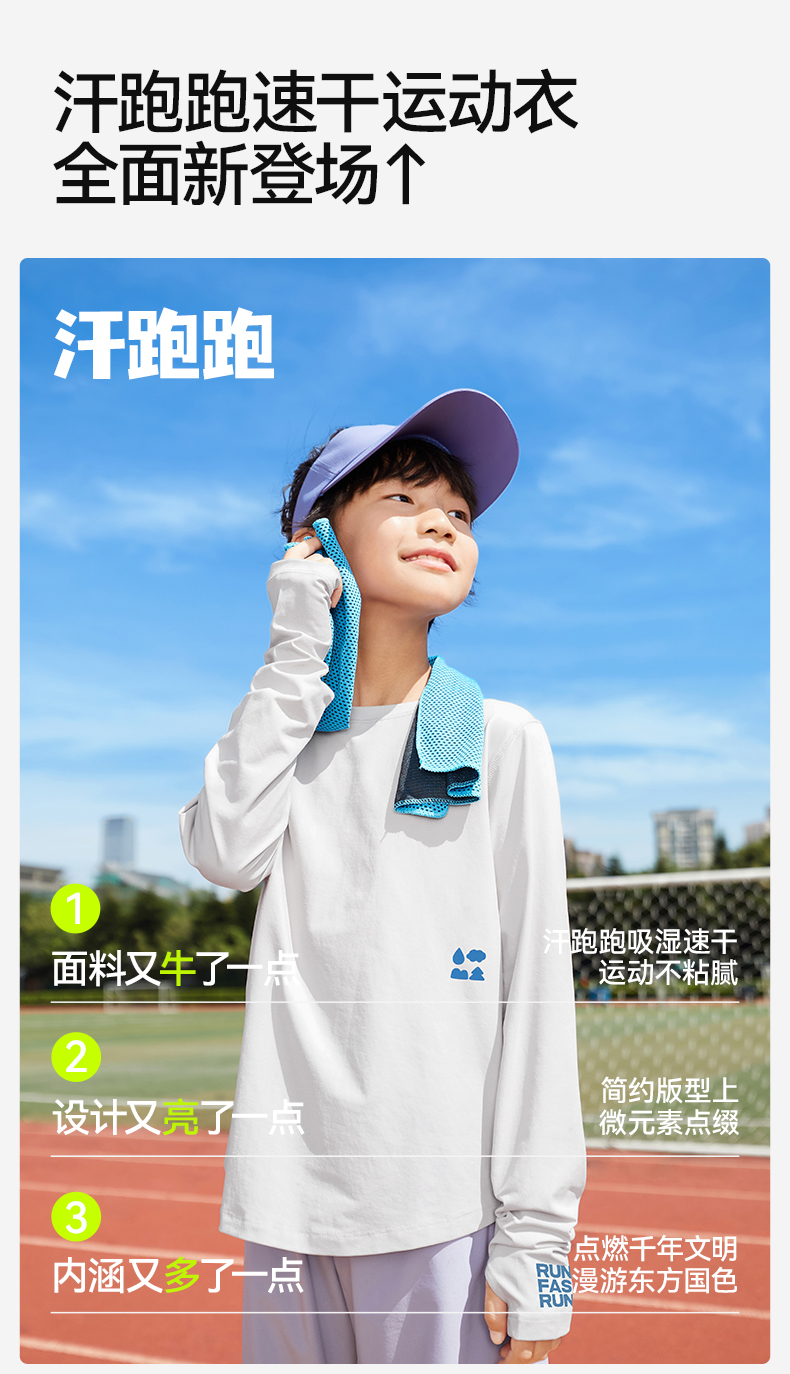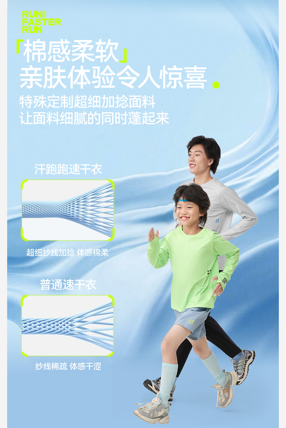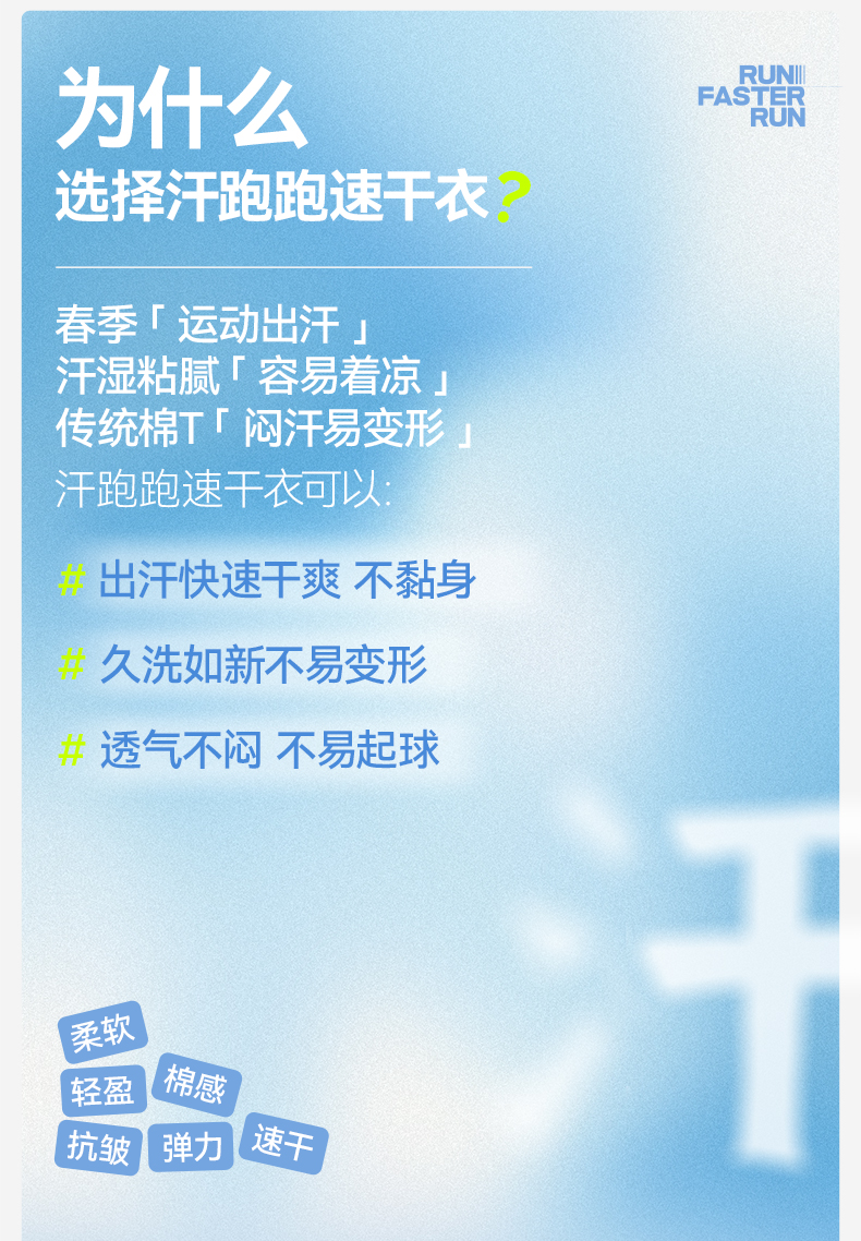 比普通速干衣更棉软!不同于常规速干衣的干涩体感,汗跑跑面料蓬松棉柔得像纯棉一样棉感处理的相当到位,我们做到了又舒适又强大,面料对标一线大牌。