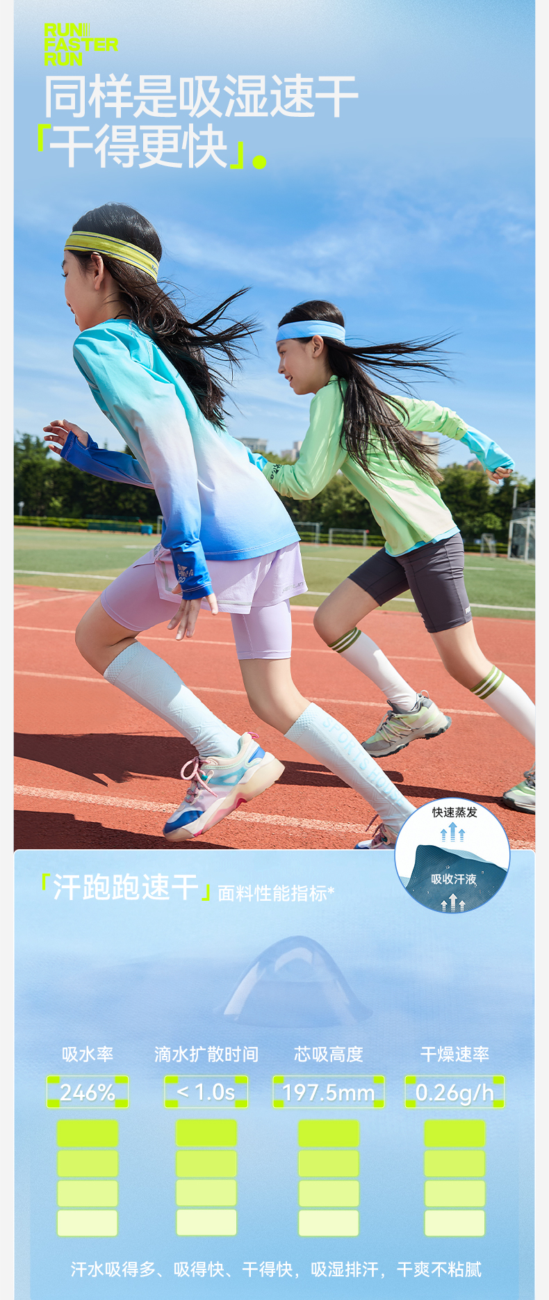 推荐理由:专业级速干衣,1秒瞬吸,快速干燥,速干性能远超国标,围绕操场跑完800米依然很干爽