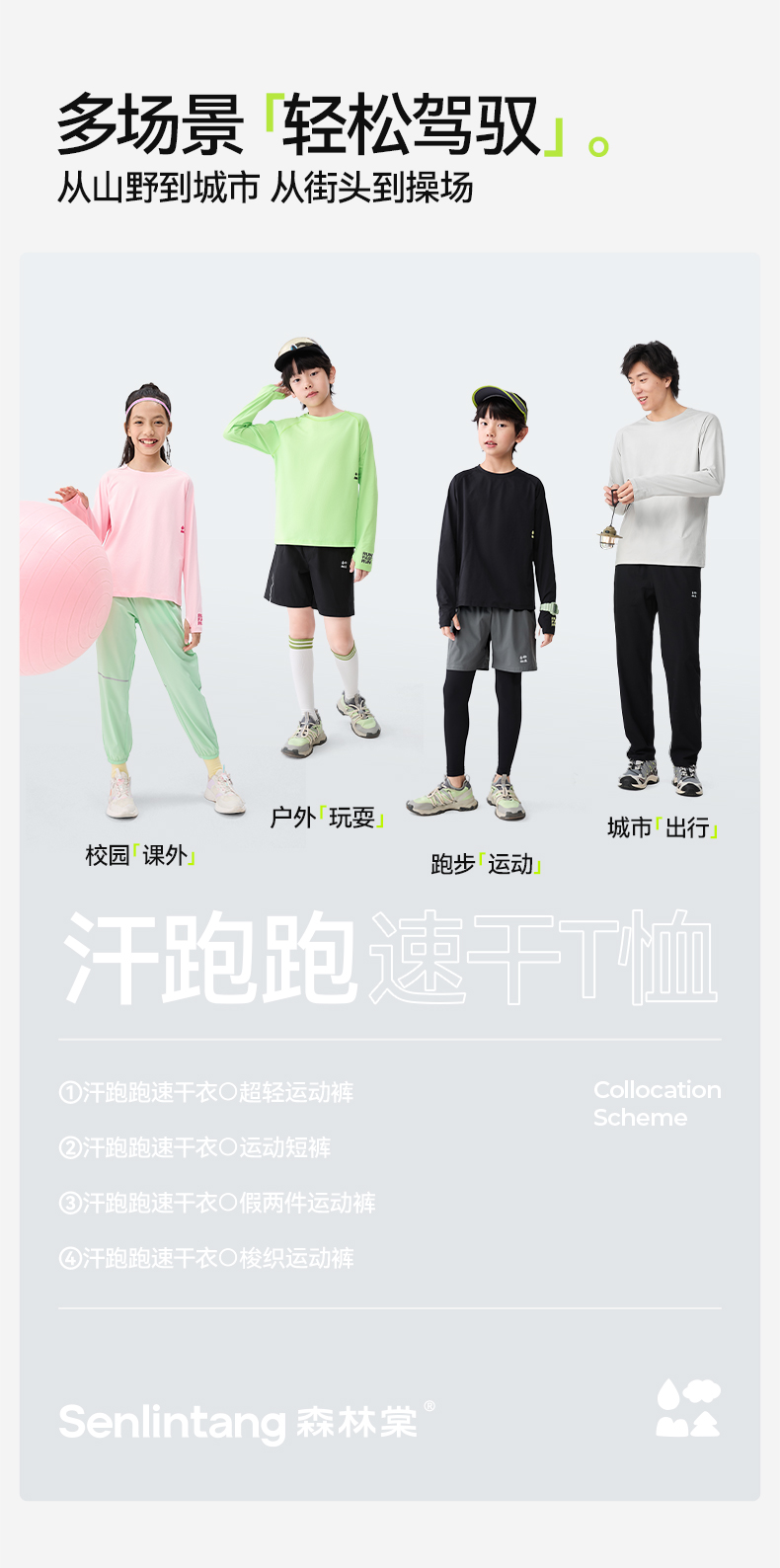 【汗跑跑速干运动T恤】森林棠25春款亲子户外运动速干衣长袖T恤20342514