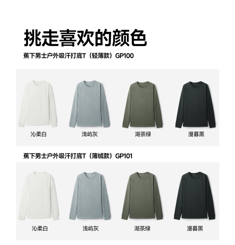 【25秋冬新品】蕉下男士排汗功能打底衫(圆领)GP100+GP101