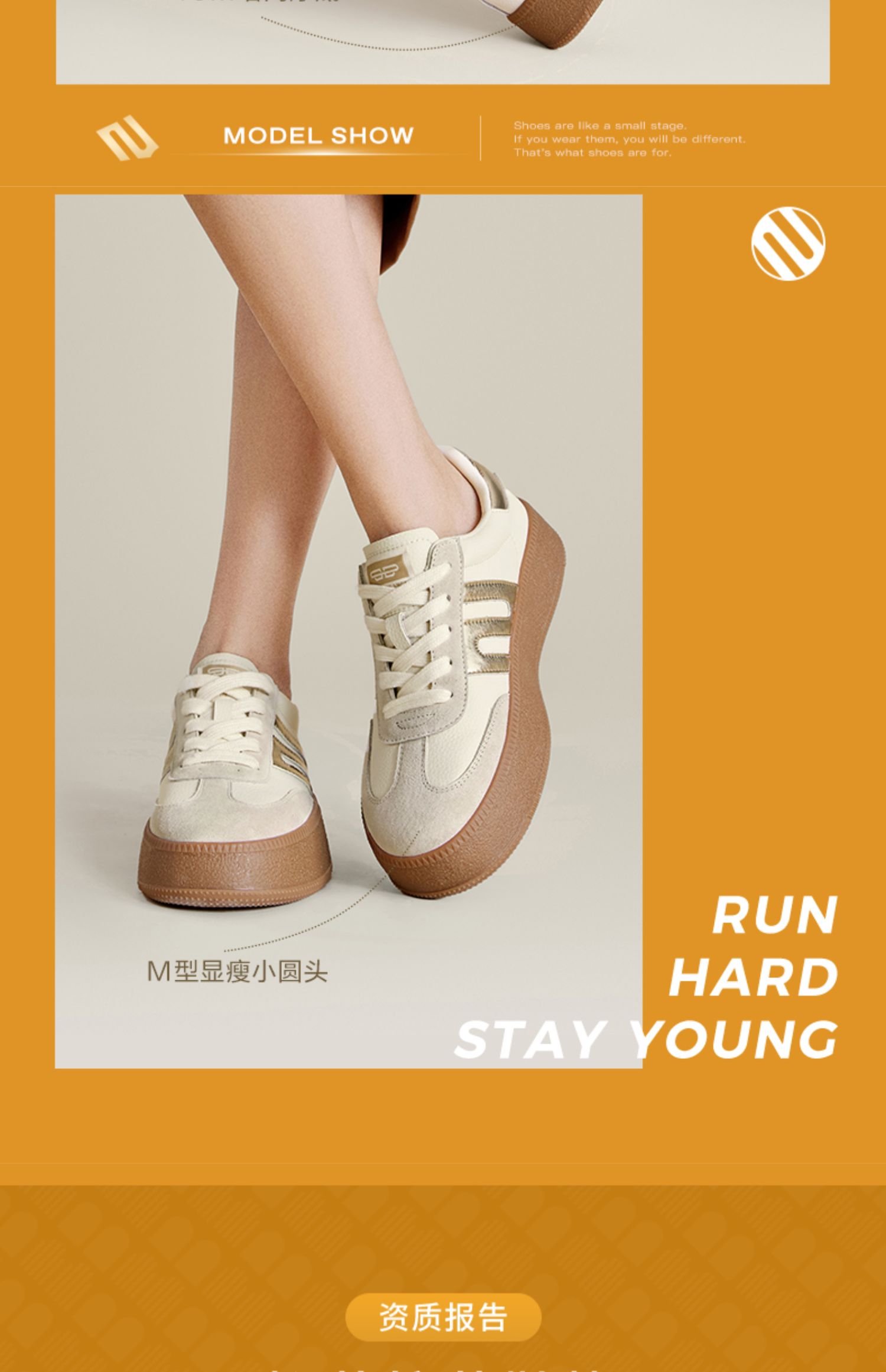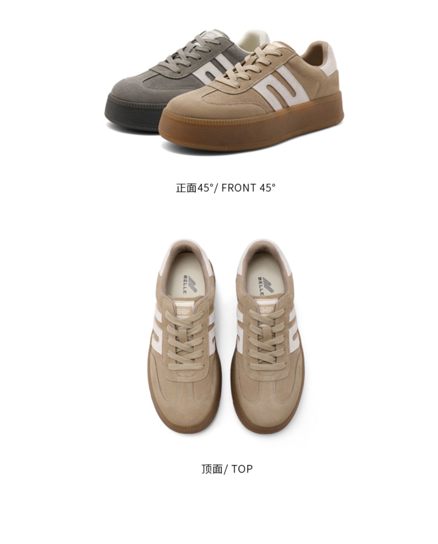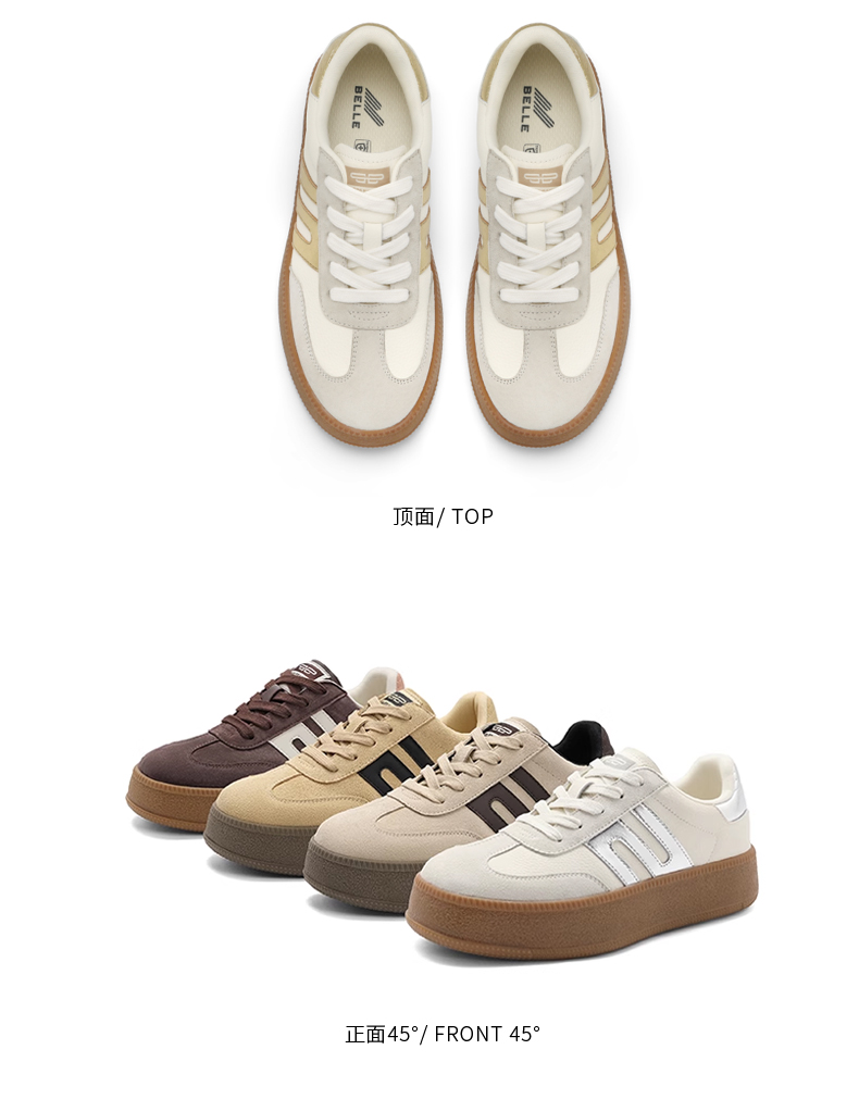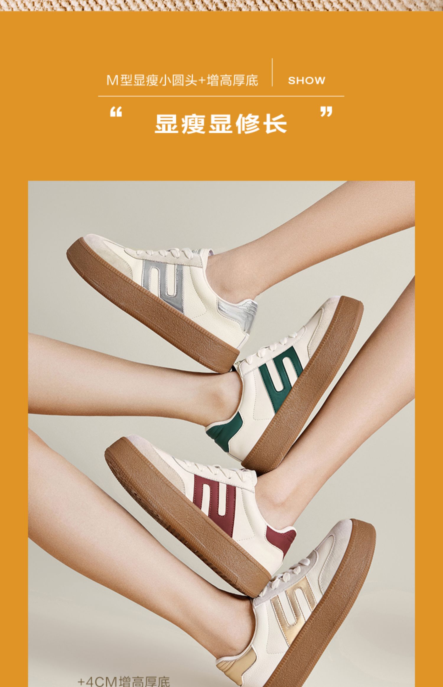 周雨彤君妍同款百丽板栗复古德训鞋女运动休闲小白板鞋