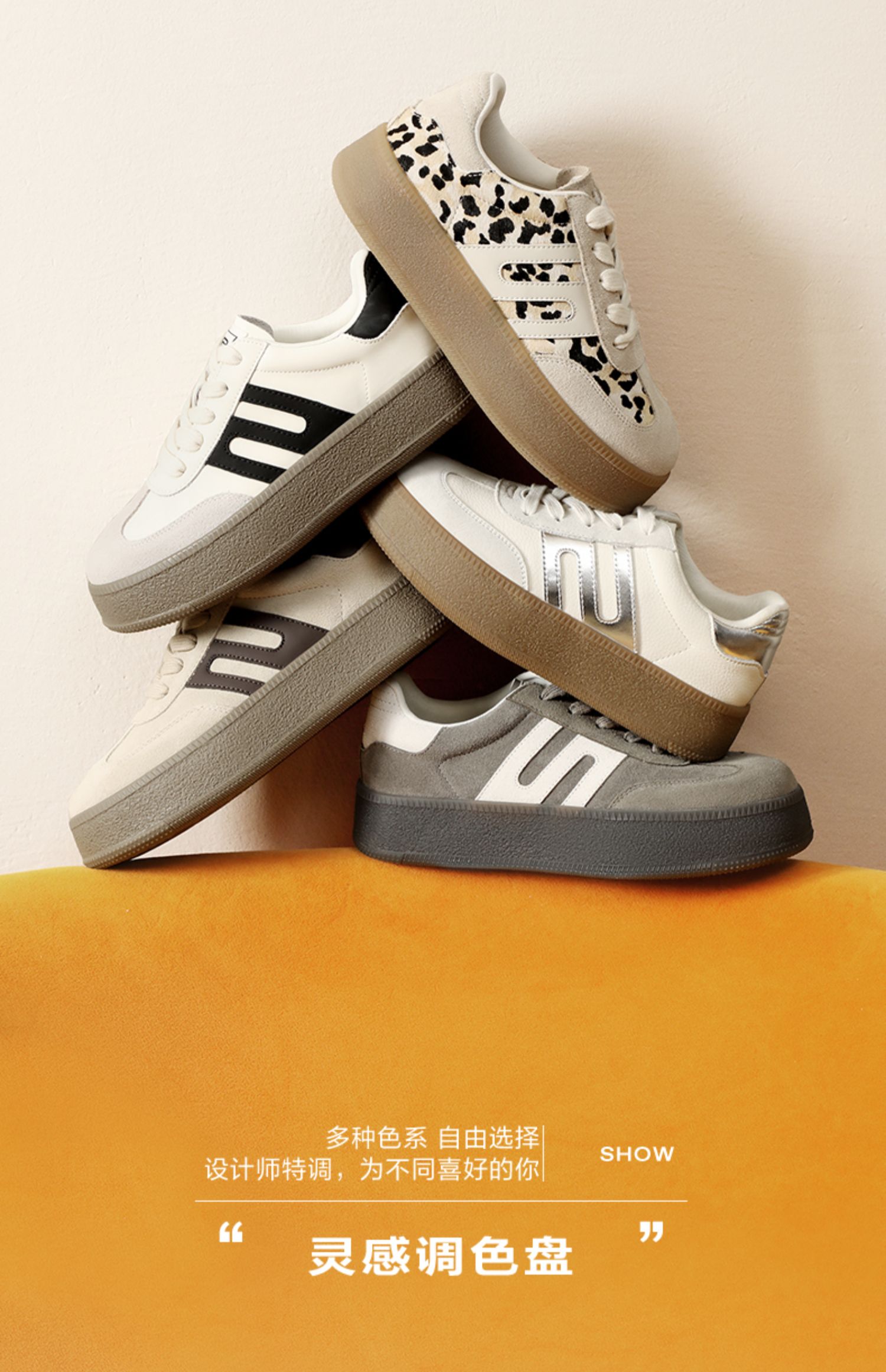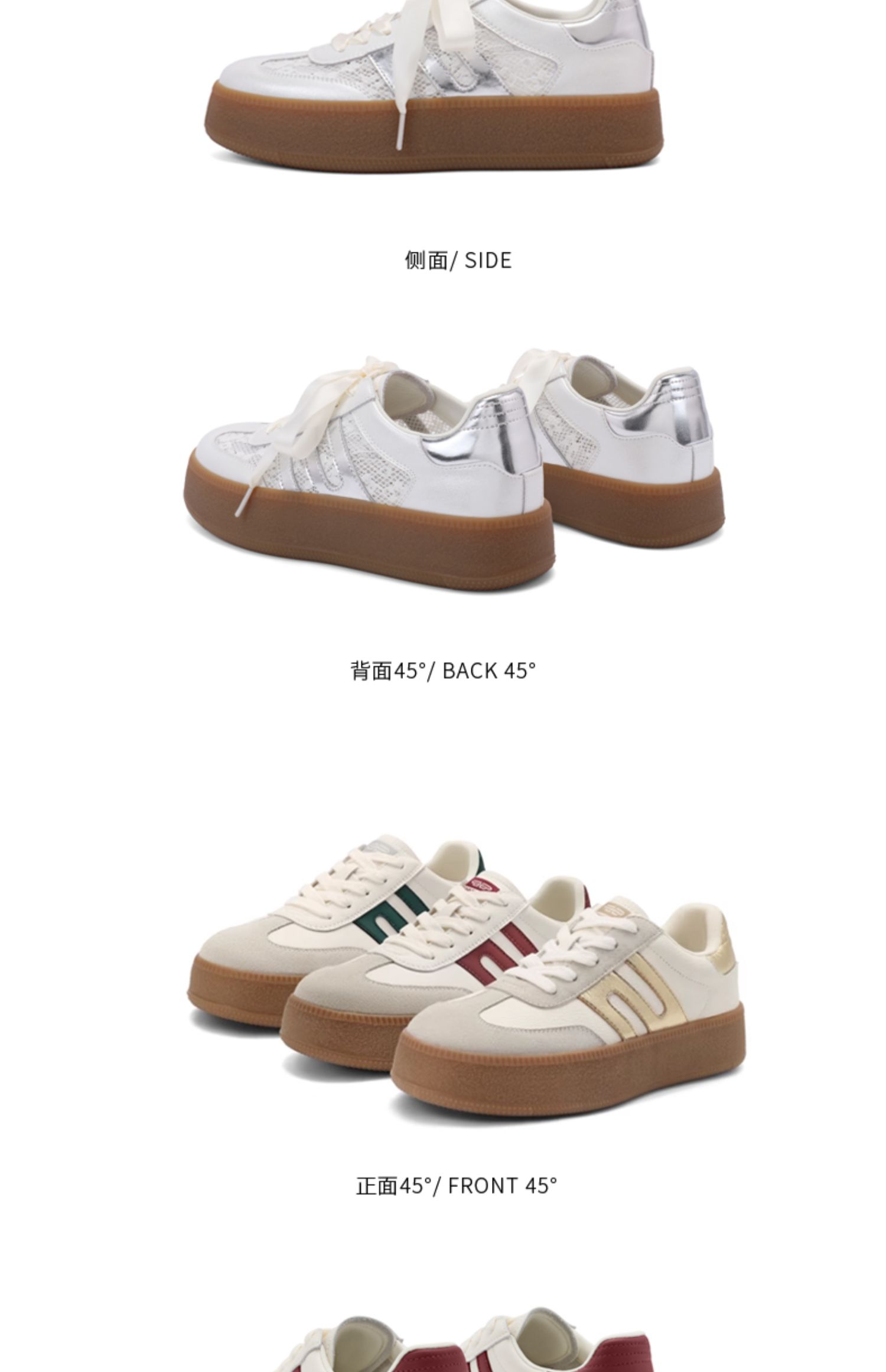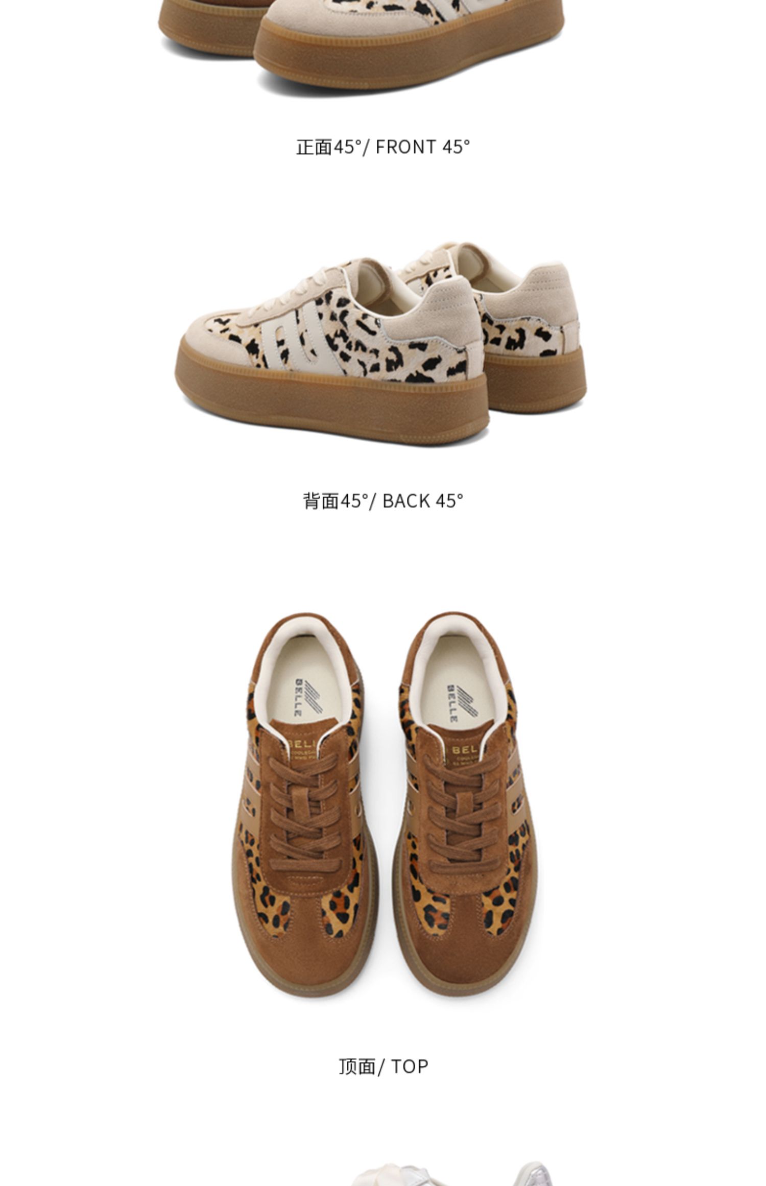 周雨彤君妍同款百丽板栗复古德训鞋女运动休闲小白板鞋