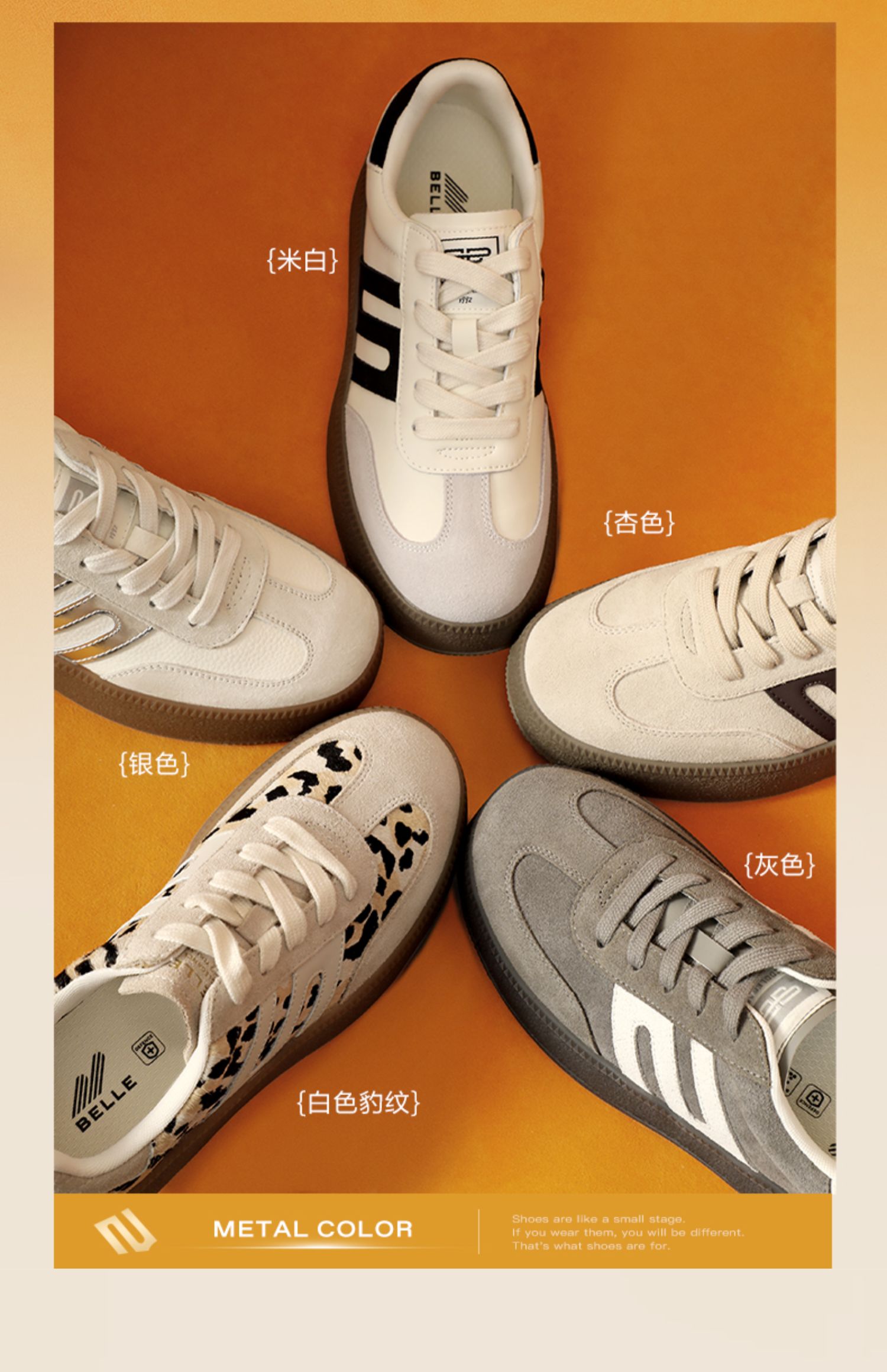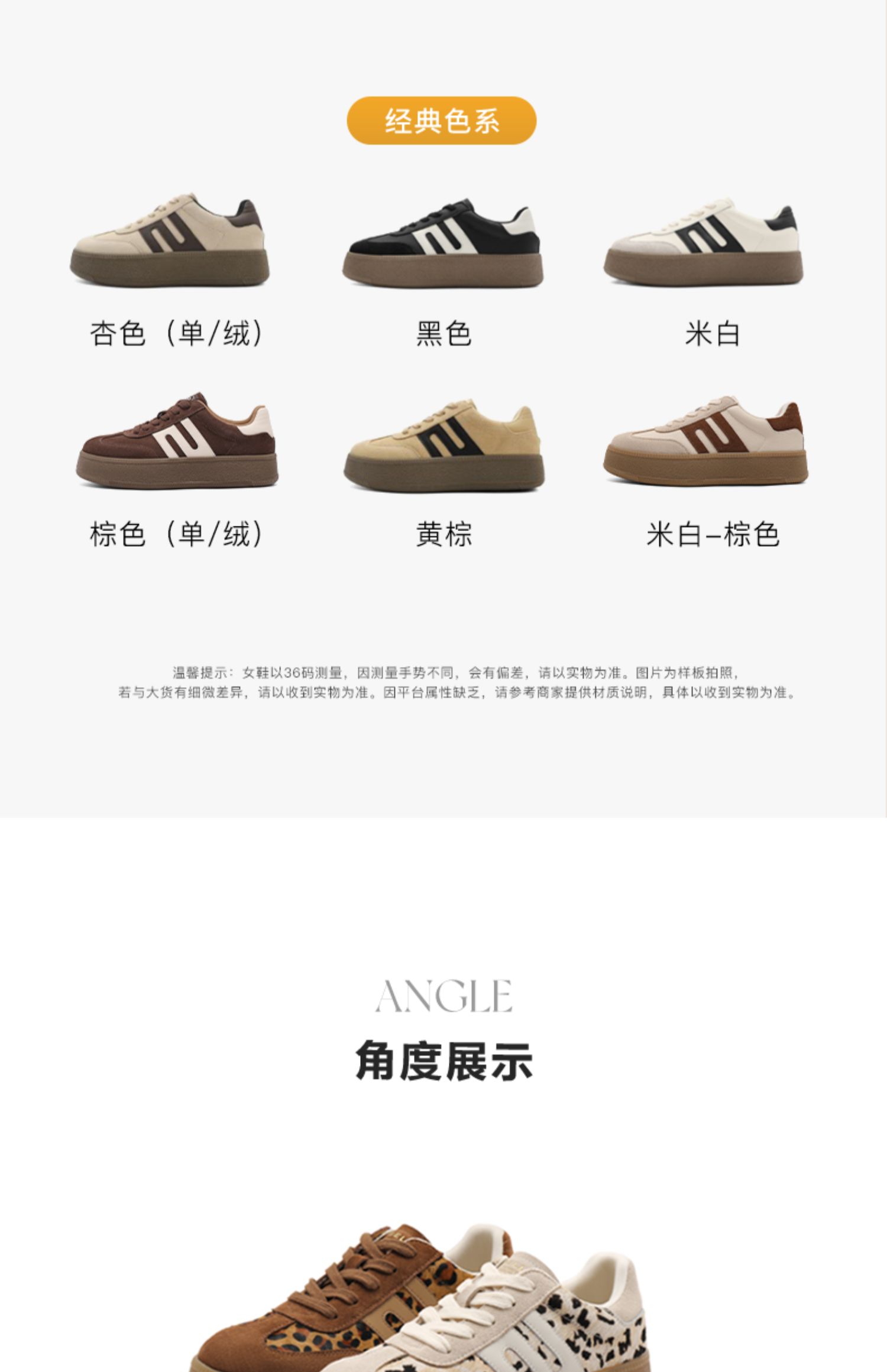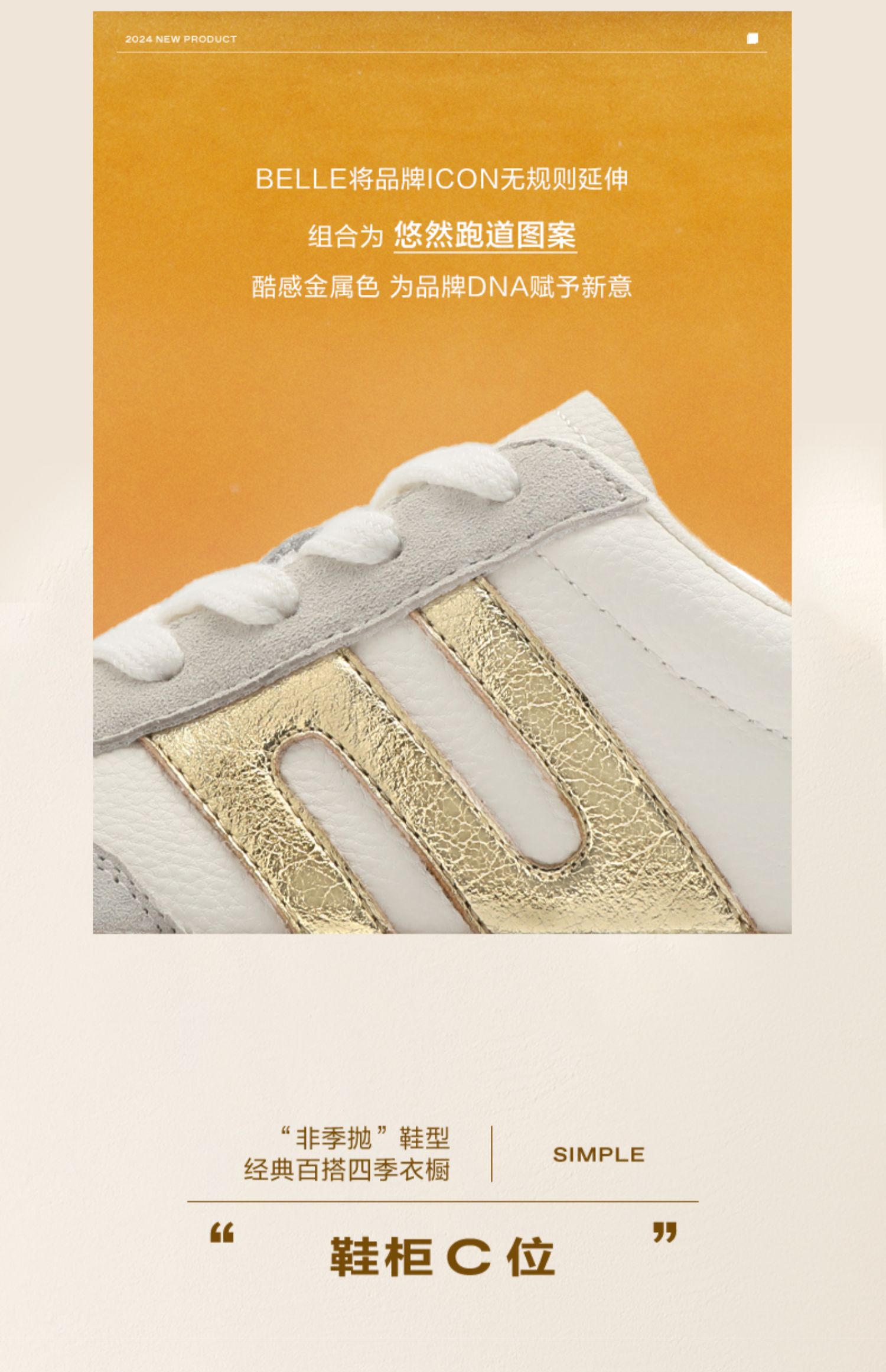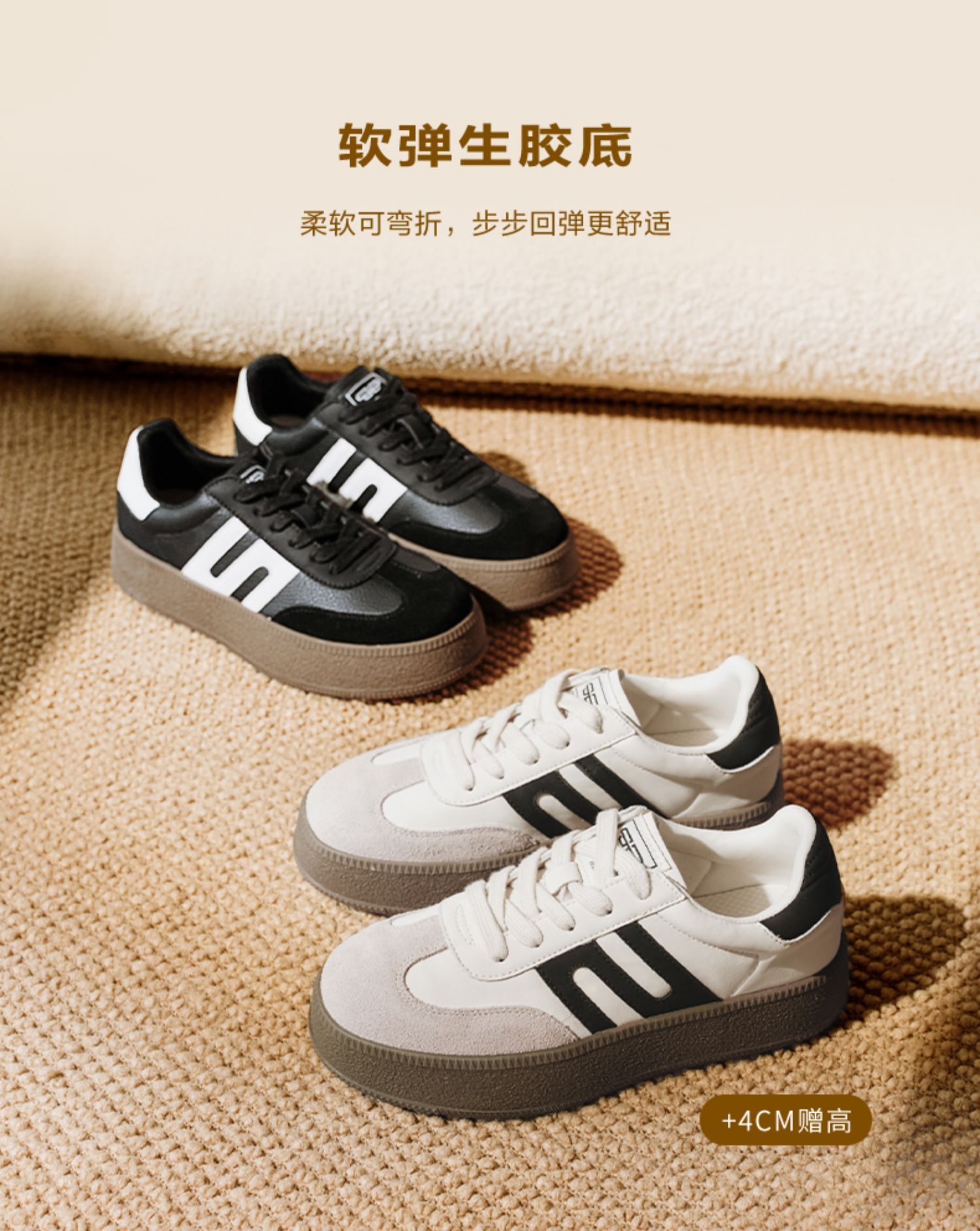 周雨彤君妍同款百丽板栗复古德训鞋女运动休闲小白板鞋