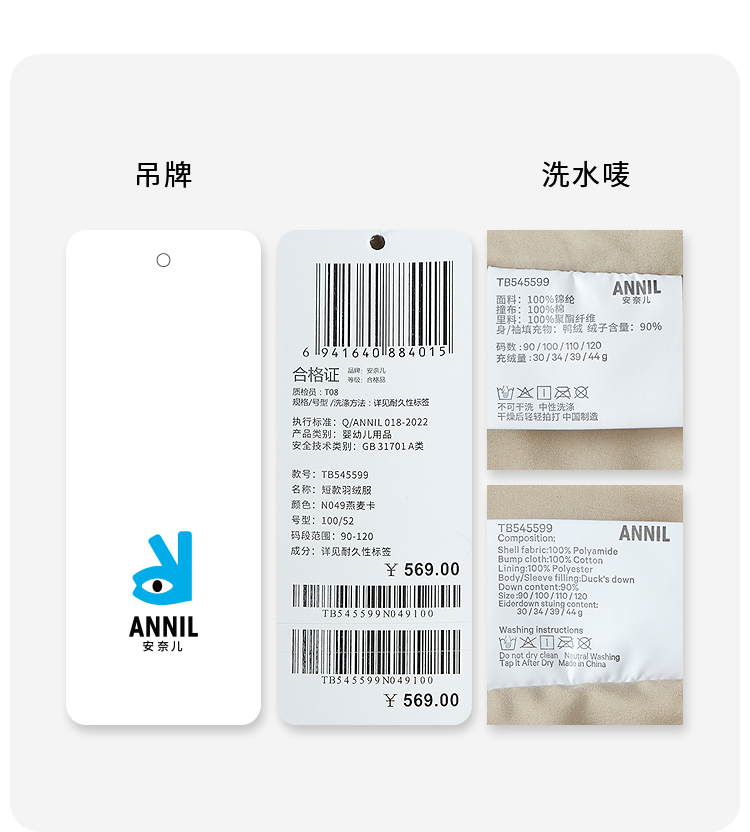 【实体店同款】男童短款羽绒服冬季新款安奈儿童装TB545599