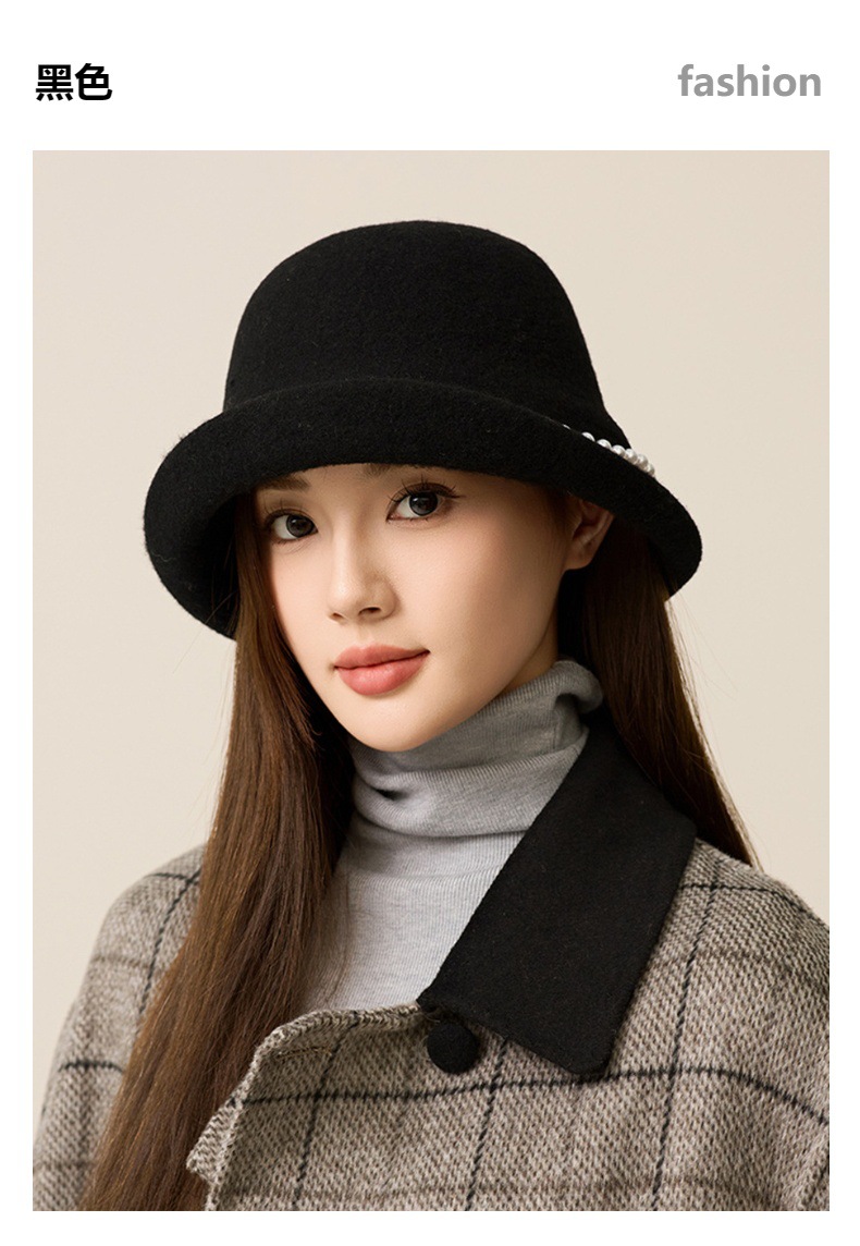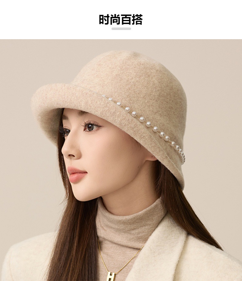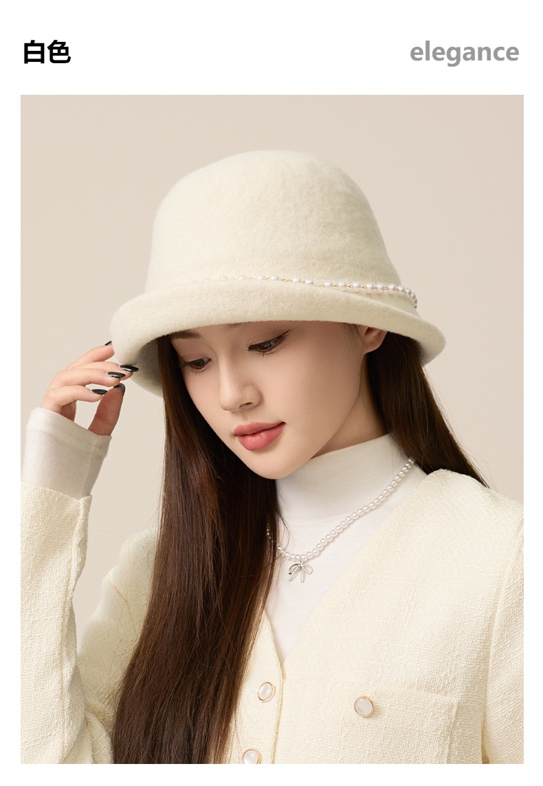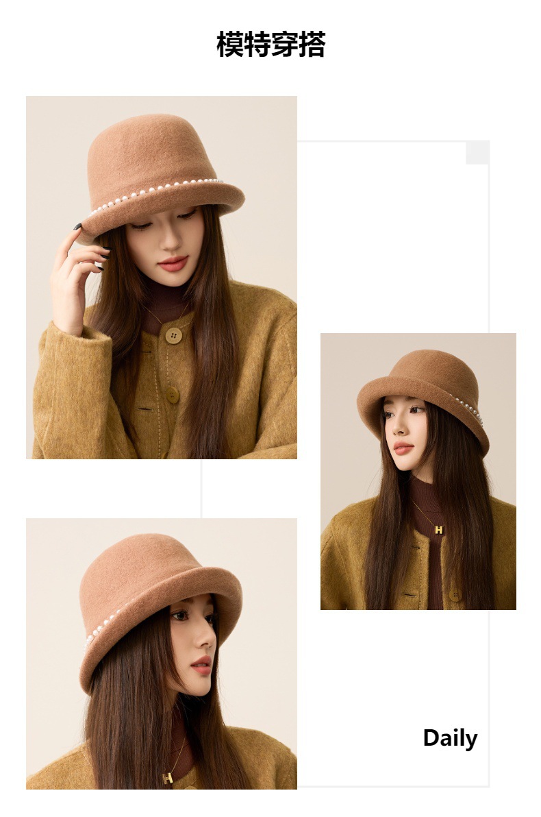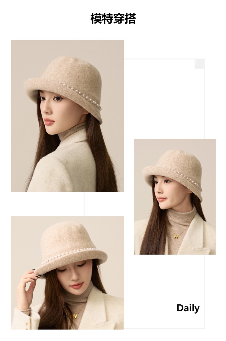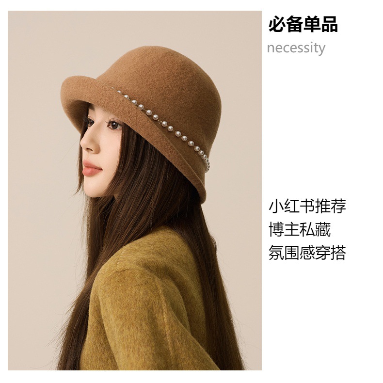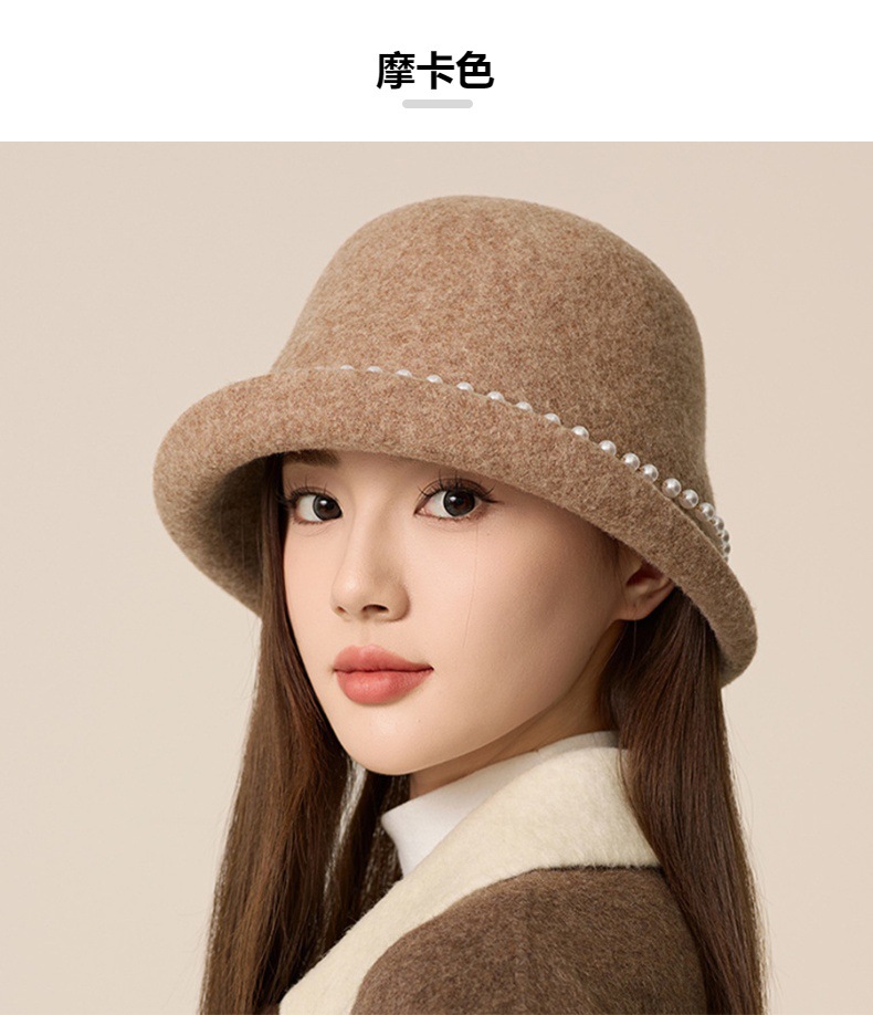 丁摩 名媛小香风珍珠羊毛礼帽法式气质盆帽秋冬天保暖帽子5ZF-M3240