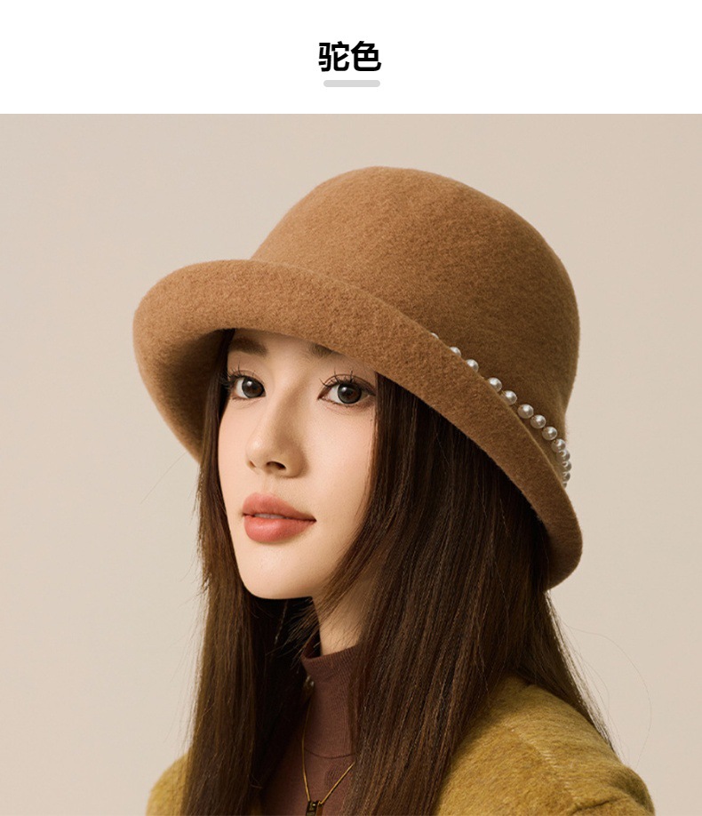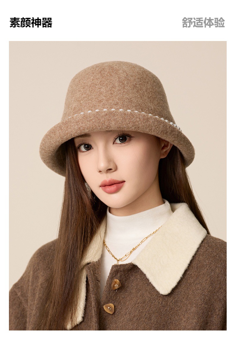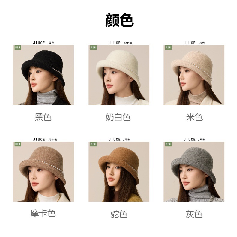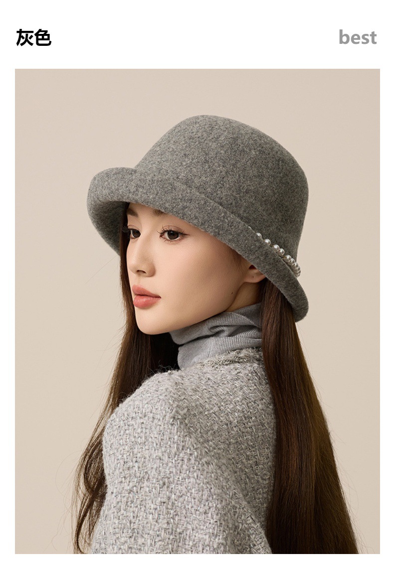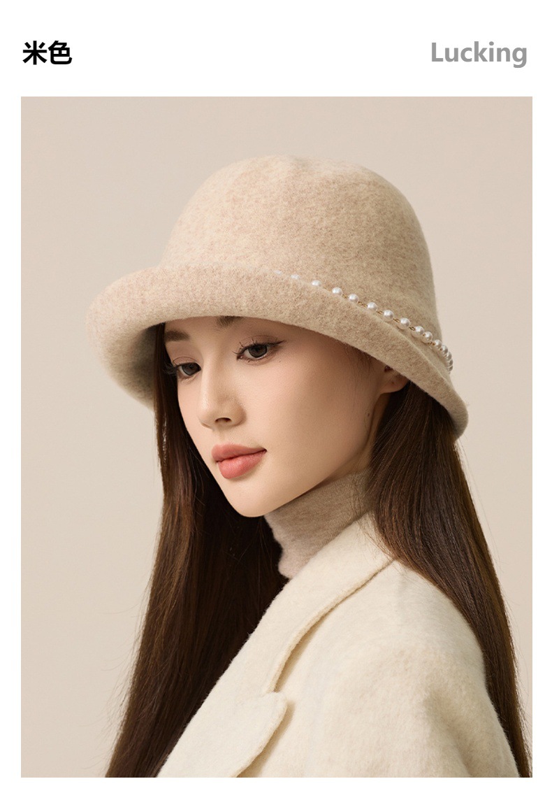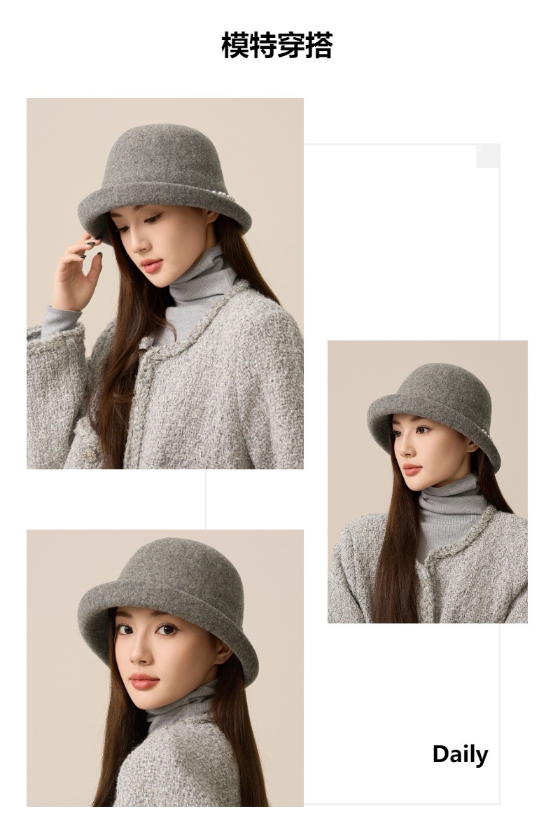 丁摩 名媛小香风珍珠羊毛礼帽法式气质盆帽秋冬天保暖帽子5ZF-M3240