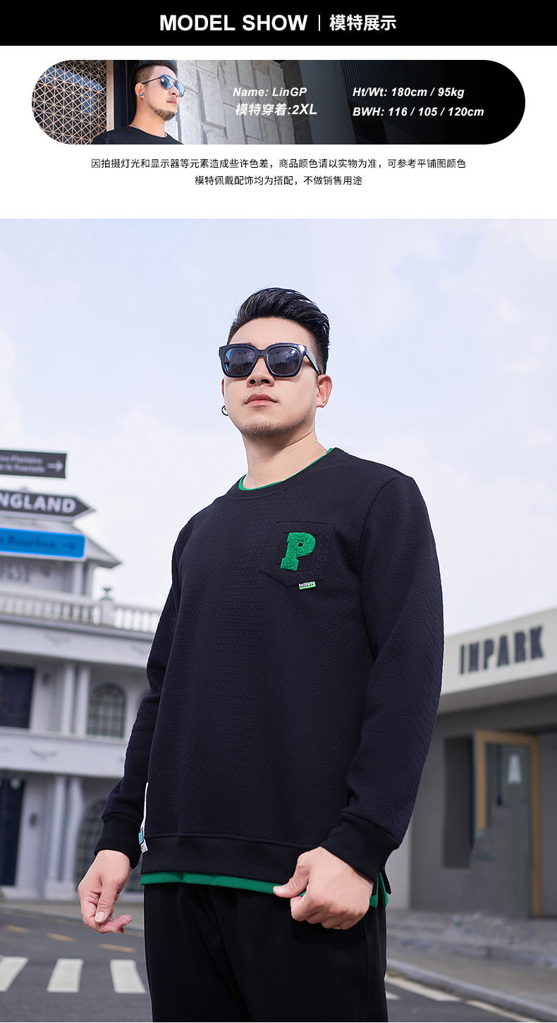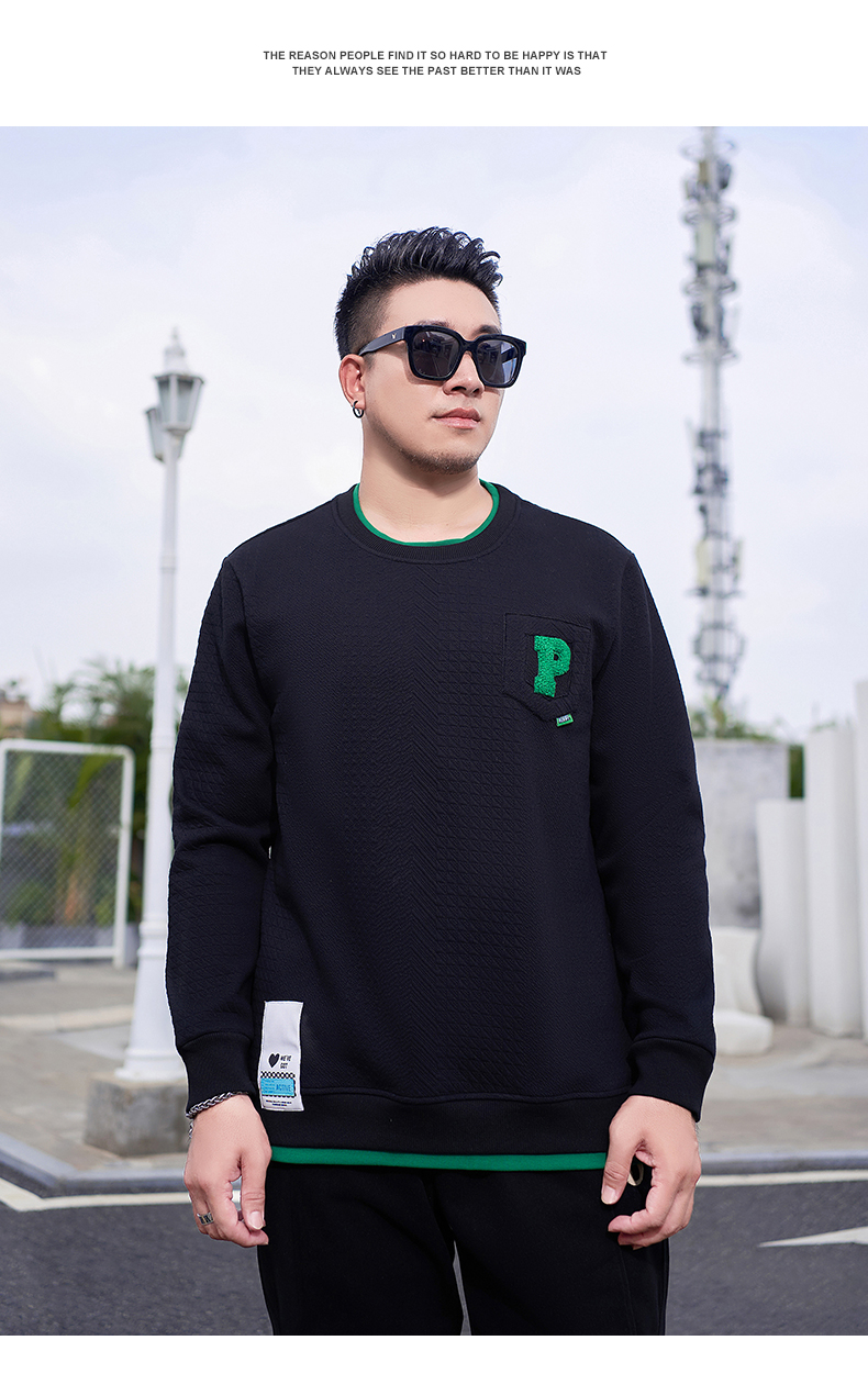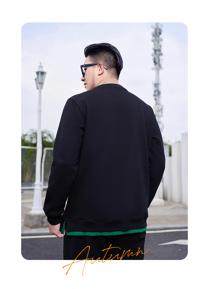 【新款DMH】大依优型大码加绒卫衣圆领弹力加肥加大胖子长袖上衣男士T恤肥佬男装潮款