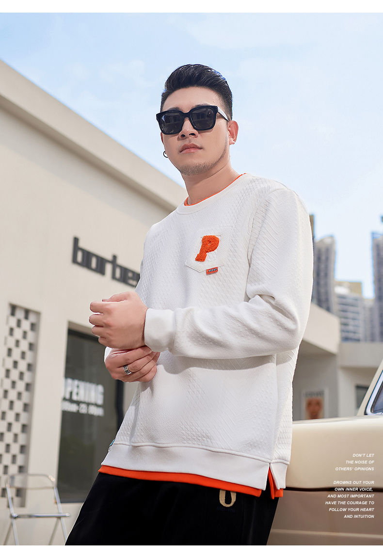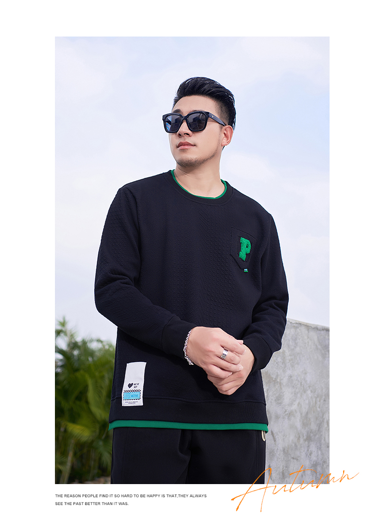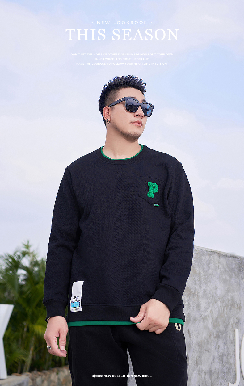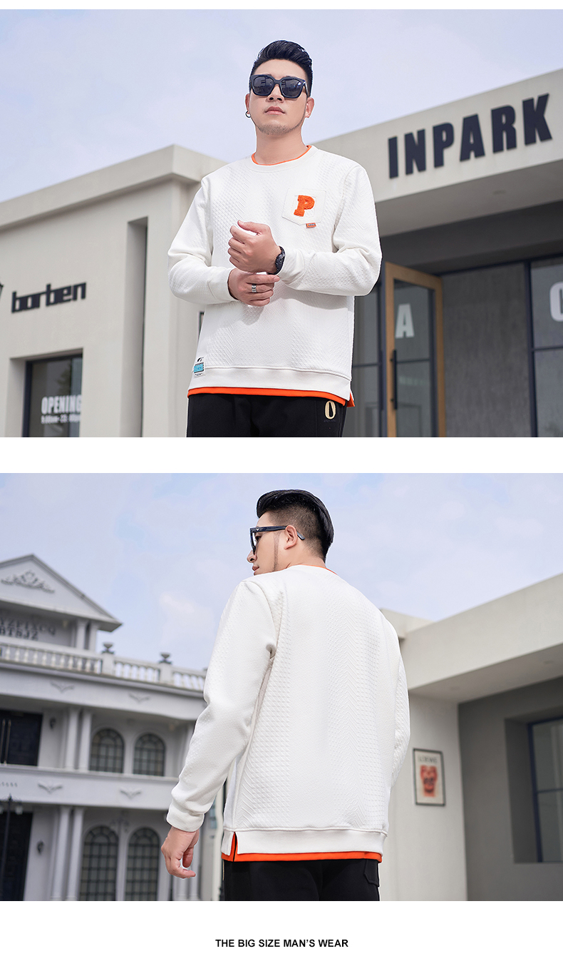 【新款DMH】大依优型大码加绒卫衣圆领弹力加肥加大胖子长袖上衣男士T恤肥佬男装潮款