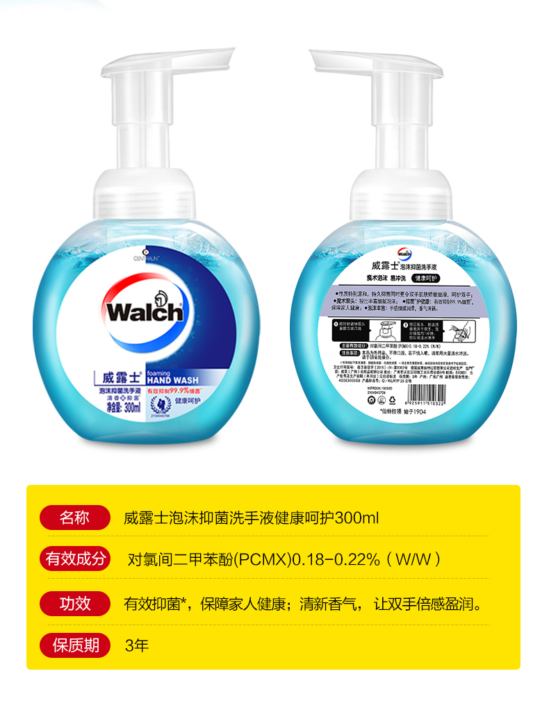 威露士泡沫抑菌健康呵护洗手液300ml(蓝瓶)