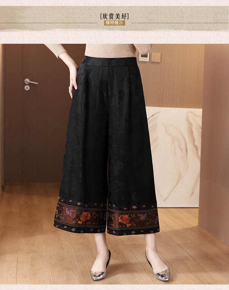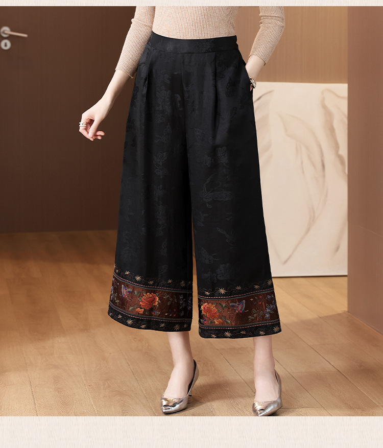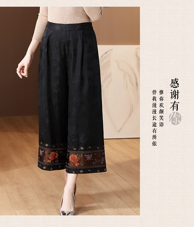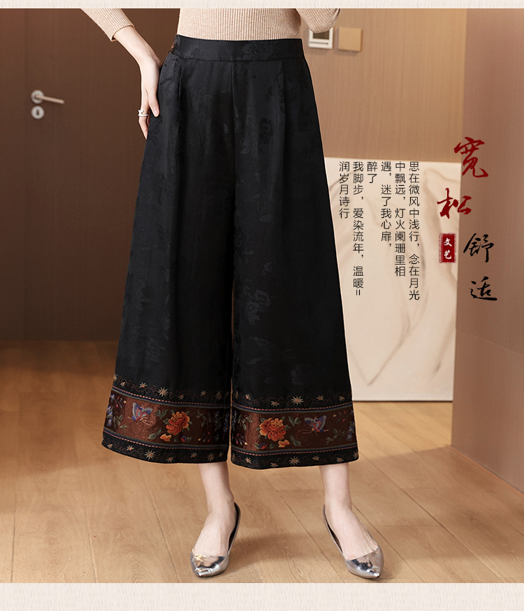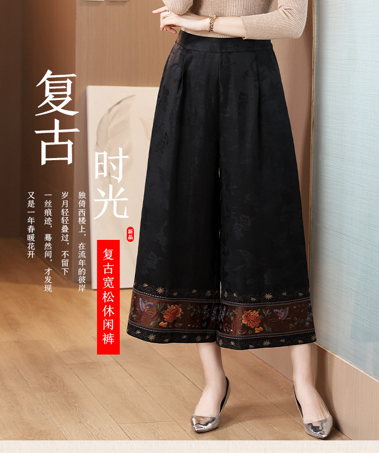 AHM yqwl6652中国风松紧腰阔腿裤显瘦暗纹提花复古休闲裤 商品图1