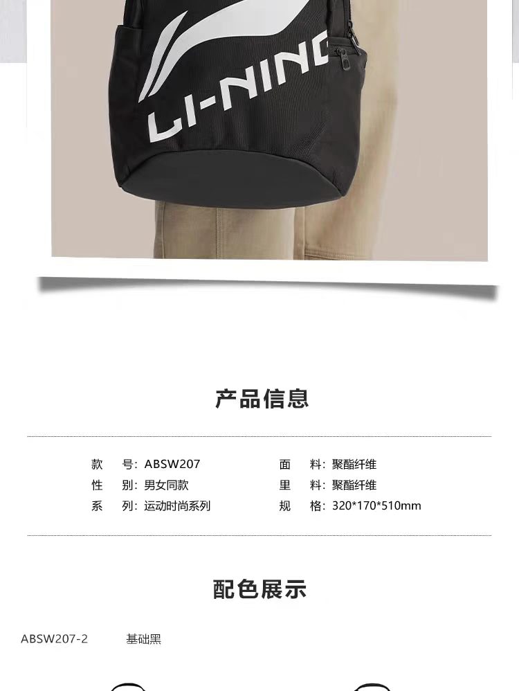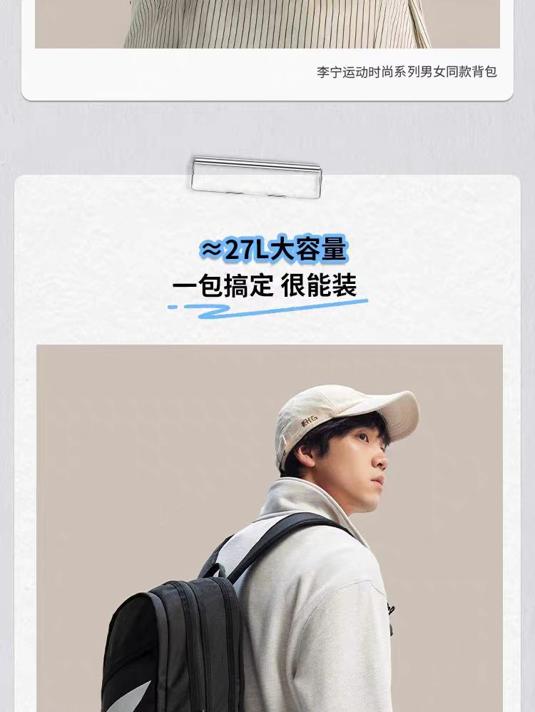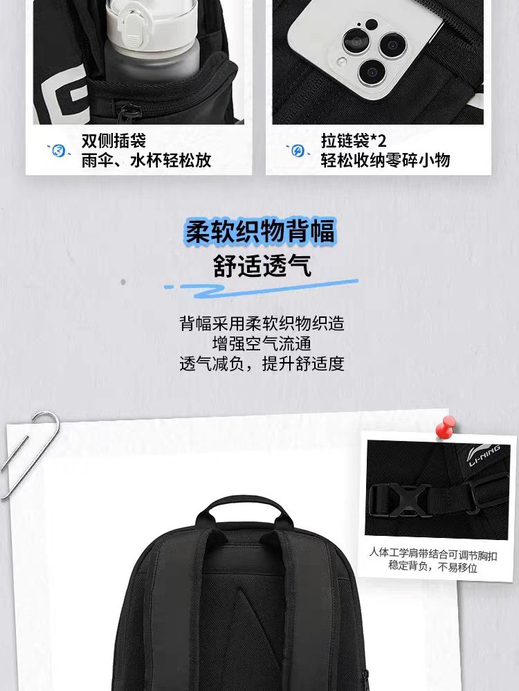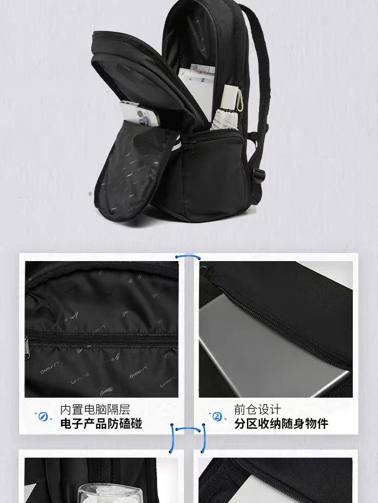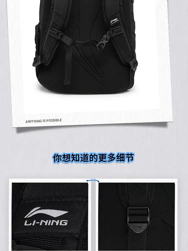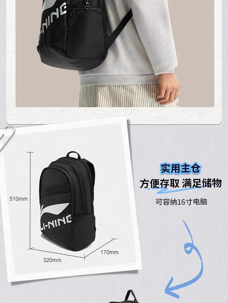 李宁双肩包2026新款徒步大学生旅行包轻便背包男女通勤运动书包ABSW207 DS