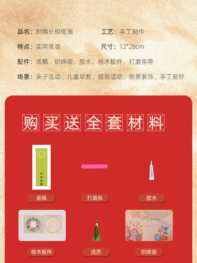【织锦流苏DIY相框摆台画】非遗仿宋锦手工材料包新中式相框画沙龙暖场活动礼