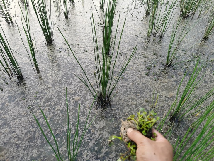 把马蹄种子催芽排种至旱地里,苗长齐后种下水田让它们分蘖。