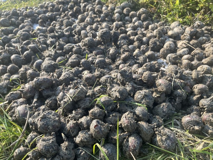 挖马蹄是件体力活,马蹄个小,又都分散长在泥土里,只能依赖人力一锄头一锄头挖起来,接着再捡起来堆在一边。挖起来的马蹄浑身都是泥巴,还要再经过多次的挑拣、去泥,才能运到家里。
