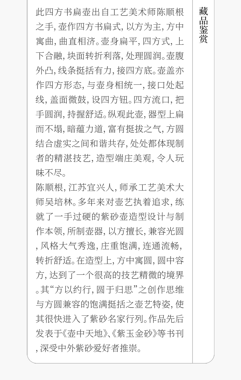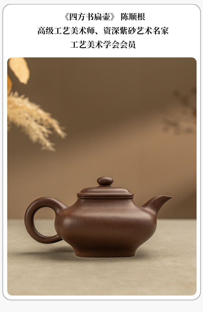 《四方书扁壶》 陈顺根 高级工艺美术师、资深紫砂艺术名家、工艺美术学会会员
