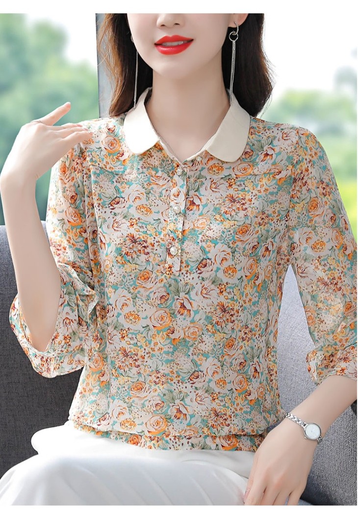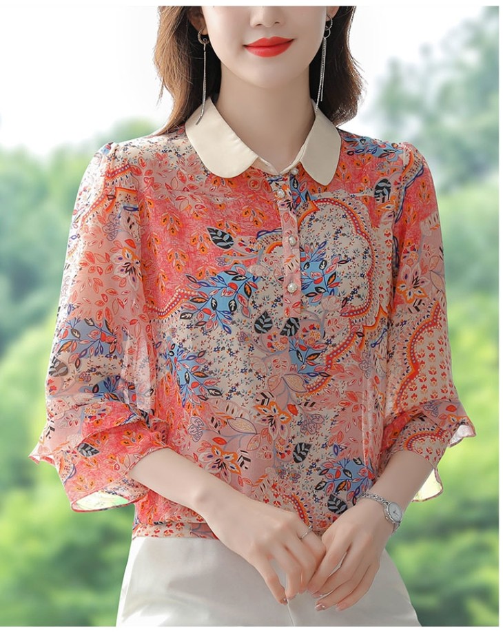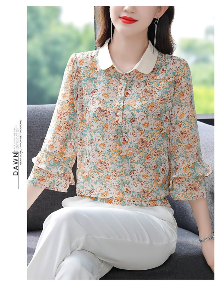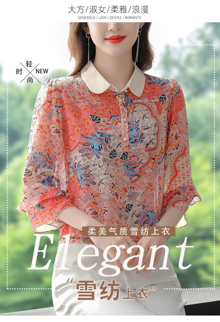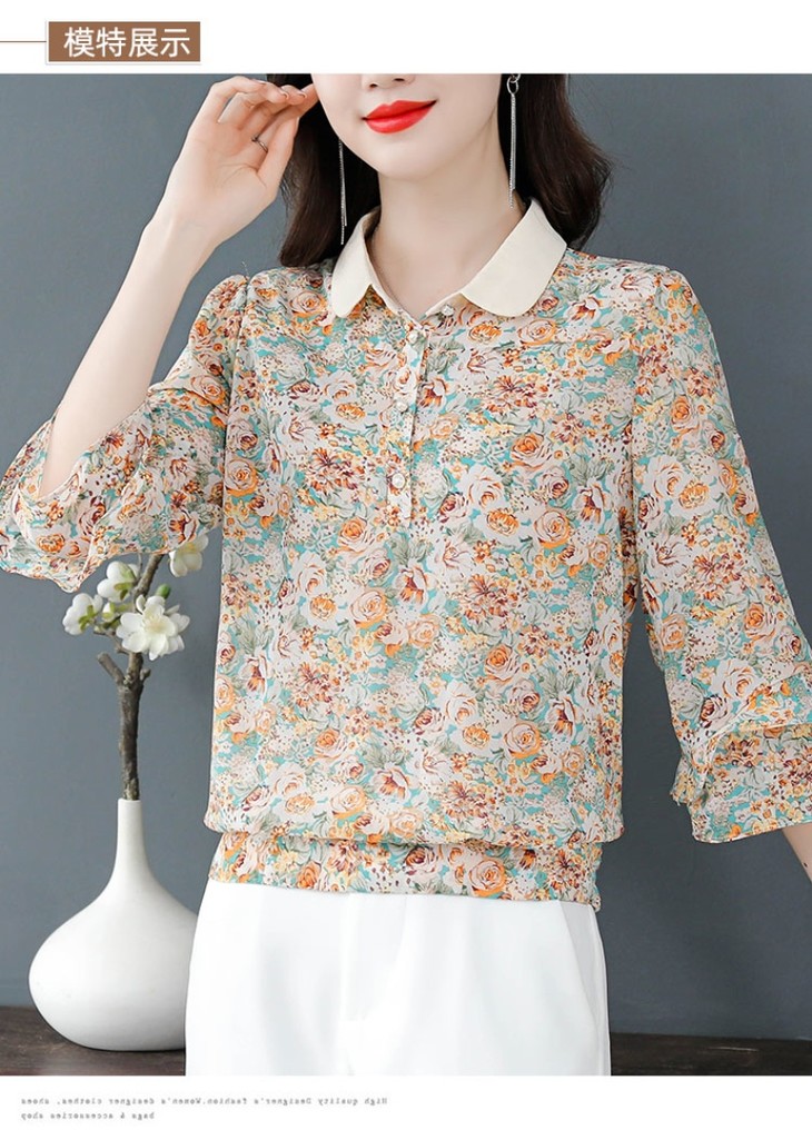 MZ801095 漂亮减龄洋气小衫时尚碎花贵夫人雪纺上衣女七分袖夏装2022年新款
