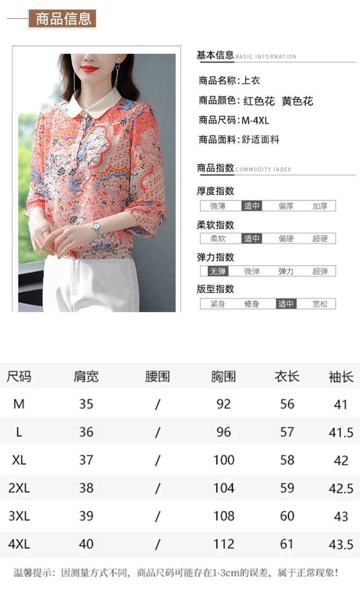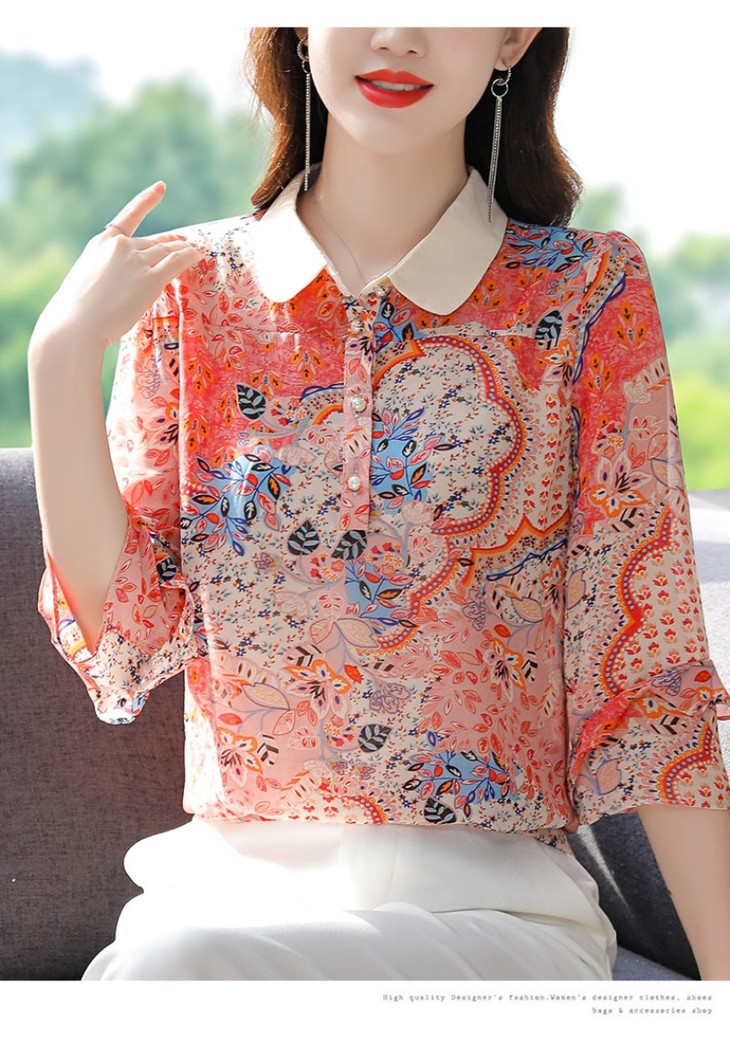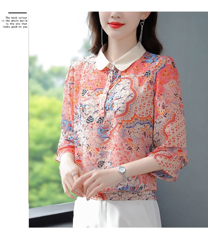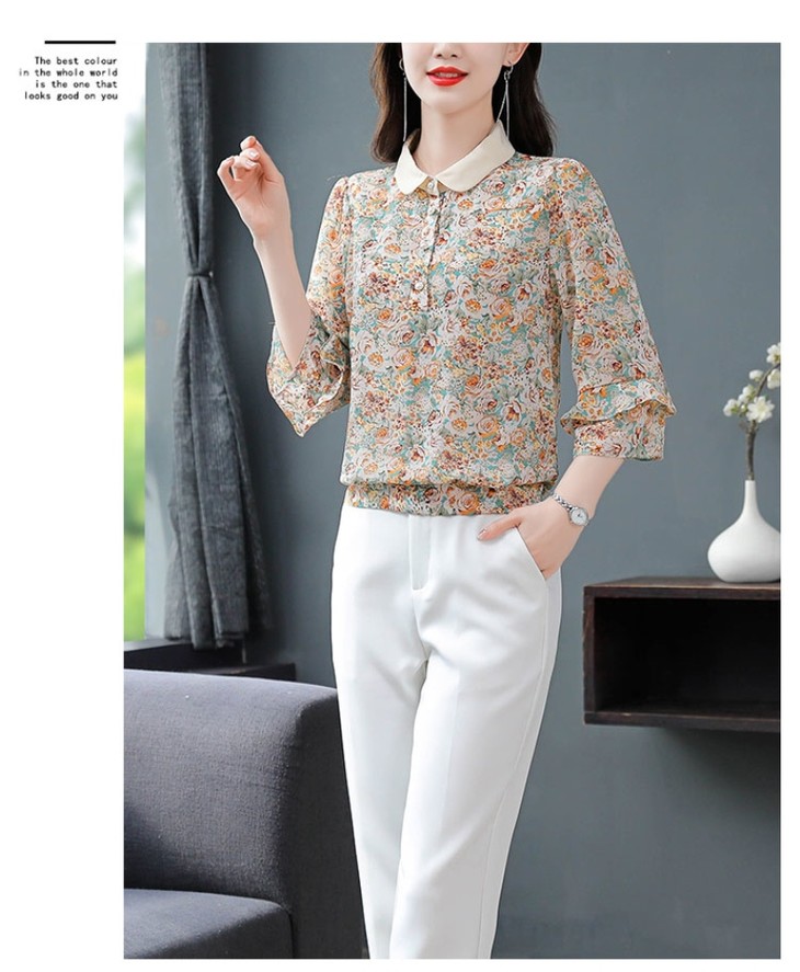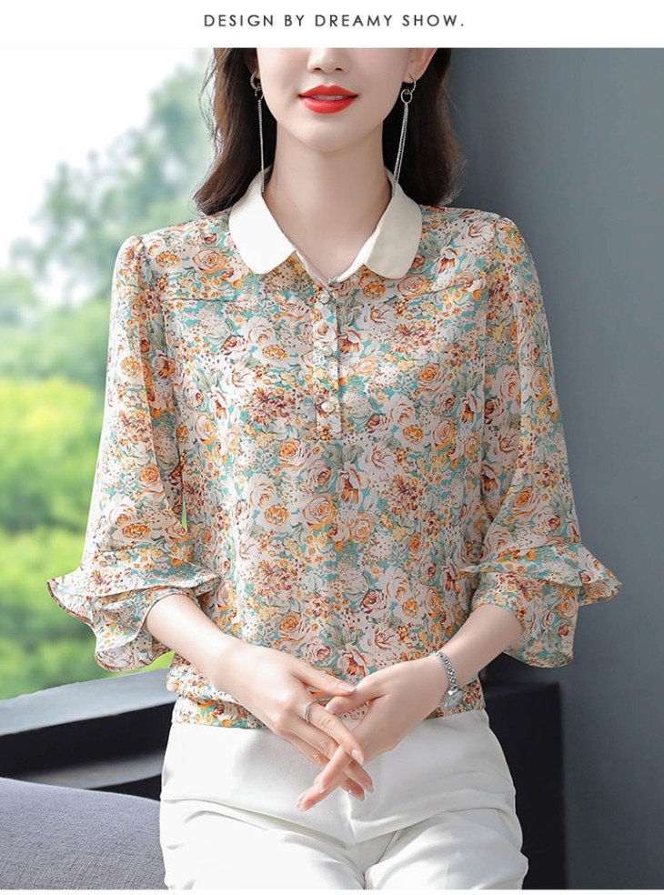 MZ801095 漂亮减龄洋气小衫时尚碎花贵夫人雪纺上衣女七分袖夏装2022年新款