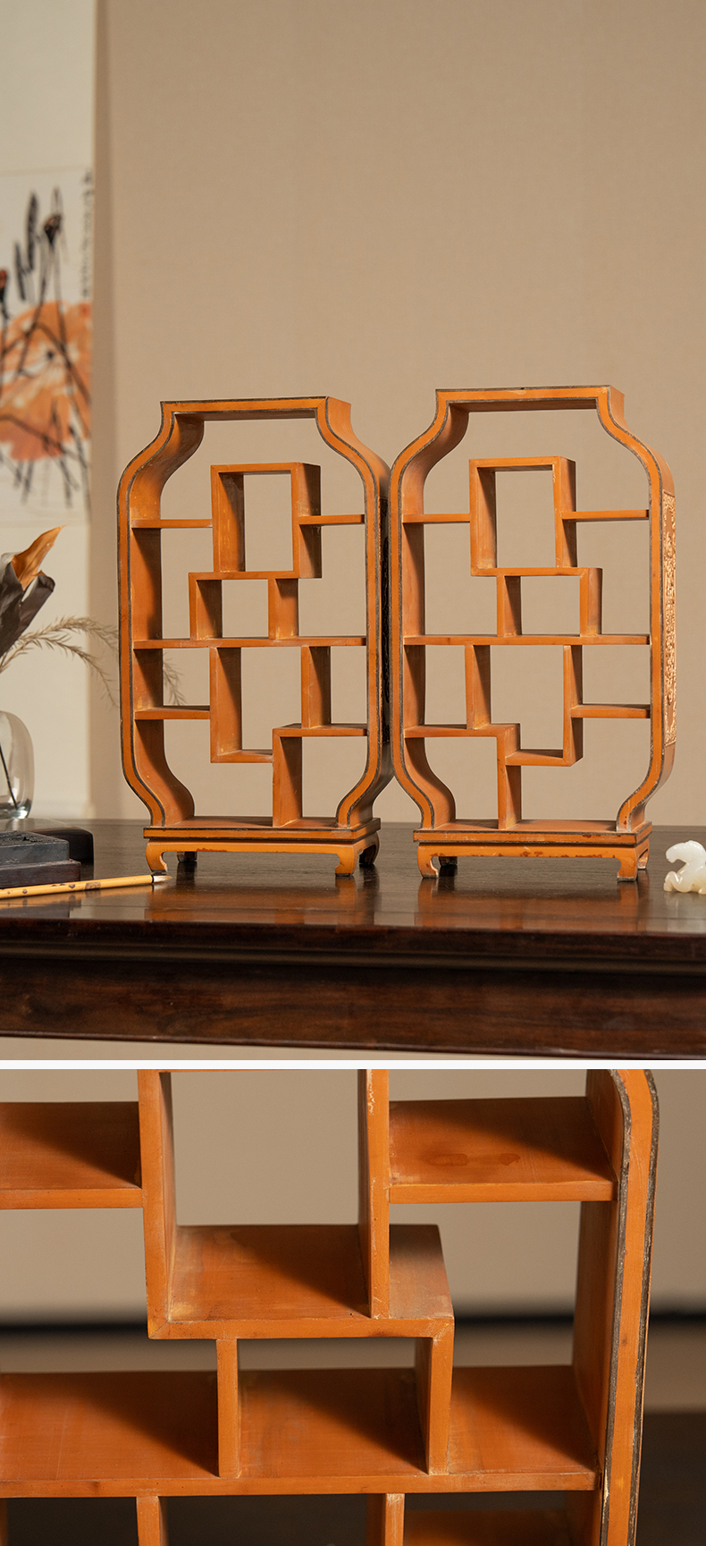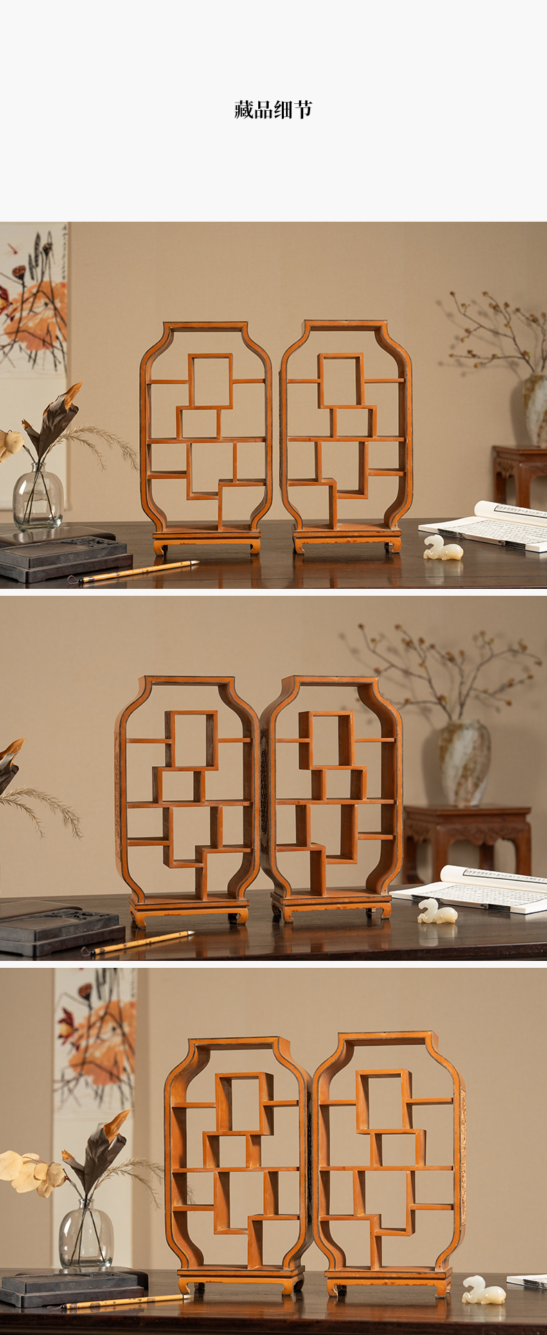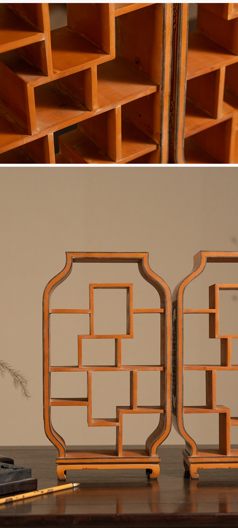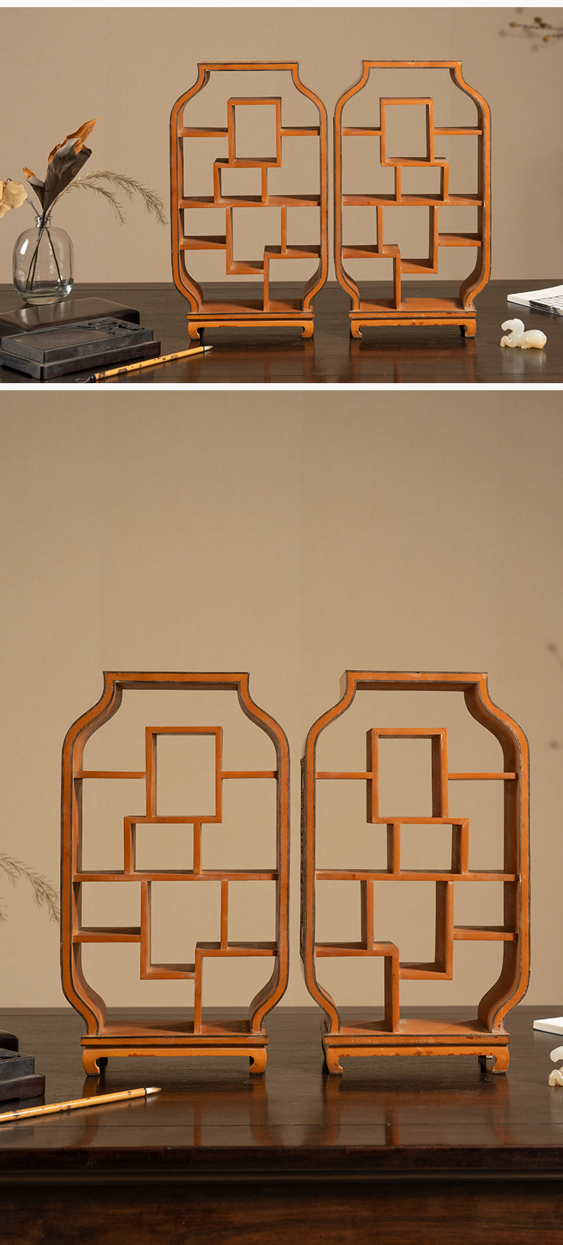 清 竹簧多宝格摆件(一对)
