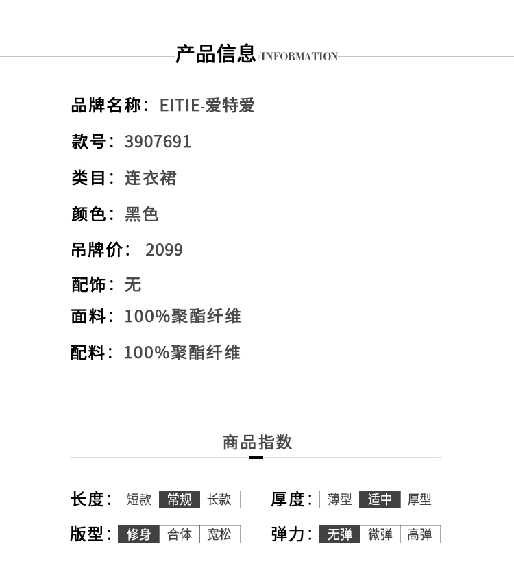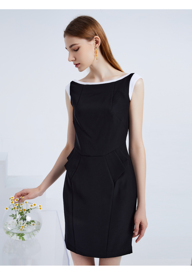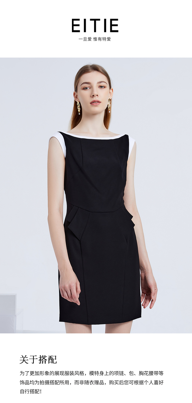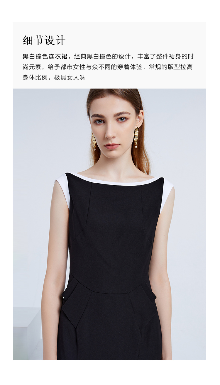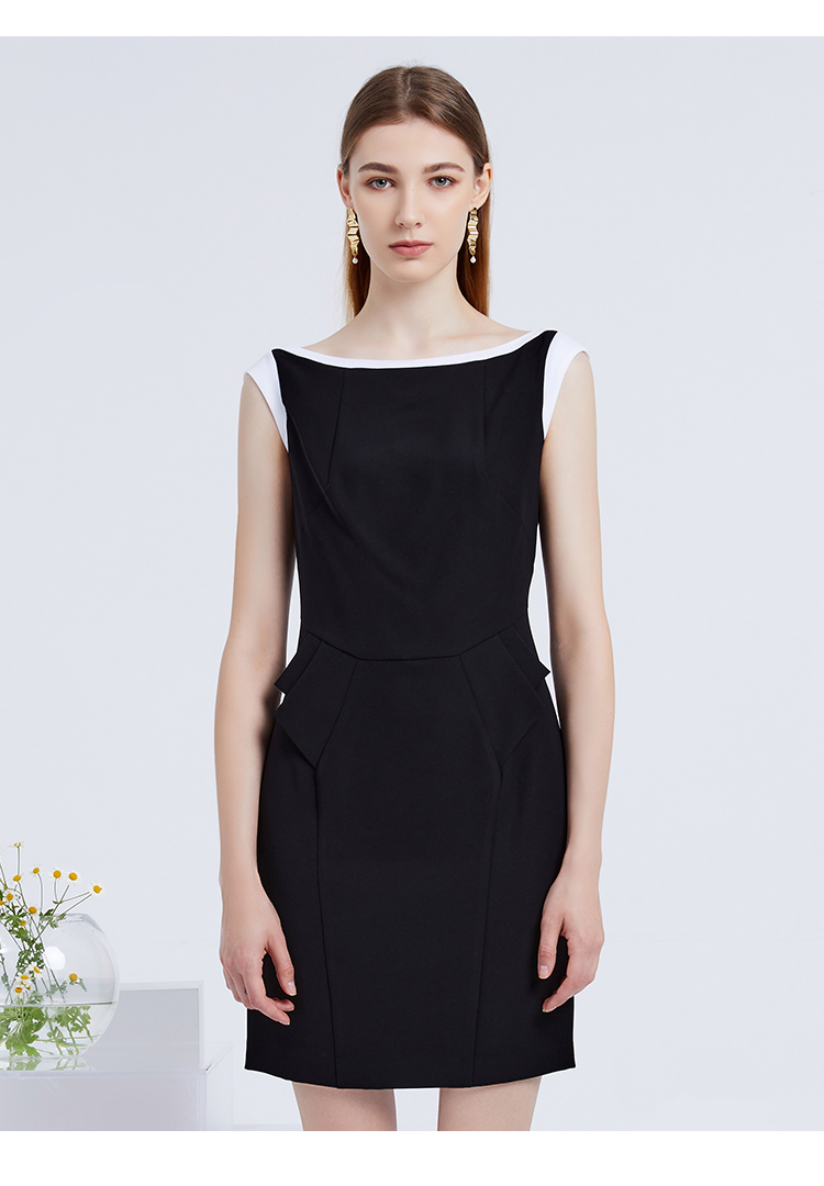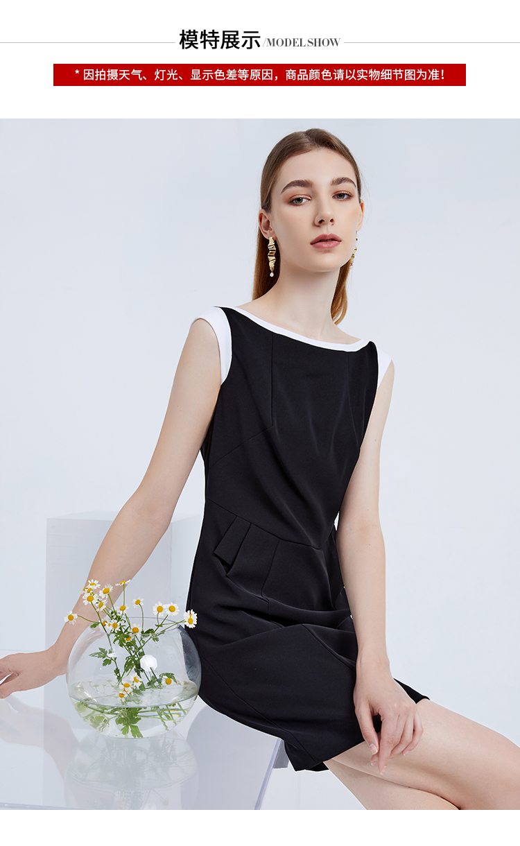 EITIE爱特爱夏季女装纯色时尚收腰修身显瘦假两件连衣裙无袖淑女包臀裙3907691