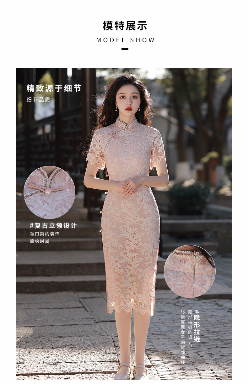 仙女系蕾丝旗袍连衣裙,复古优雅旗袍YG- 2019