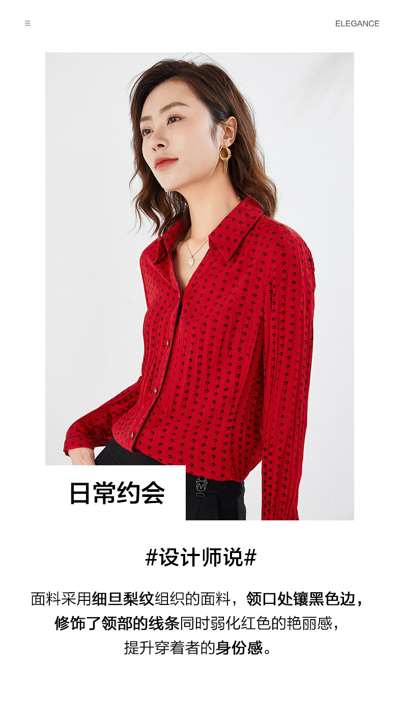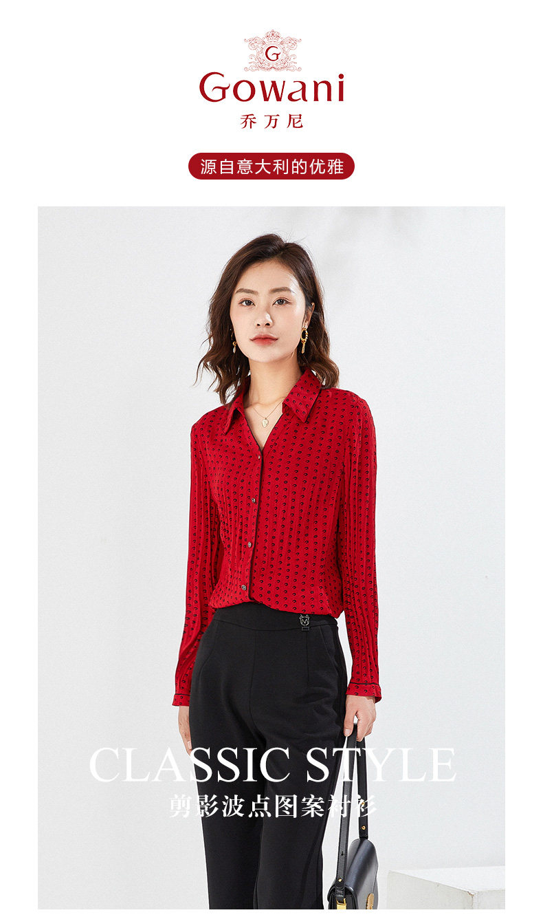 乔万尼衬衫新品压褶爽滑质感翻领气质显瘦EI3C125